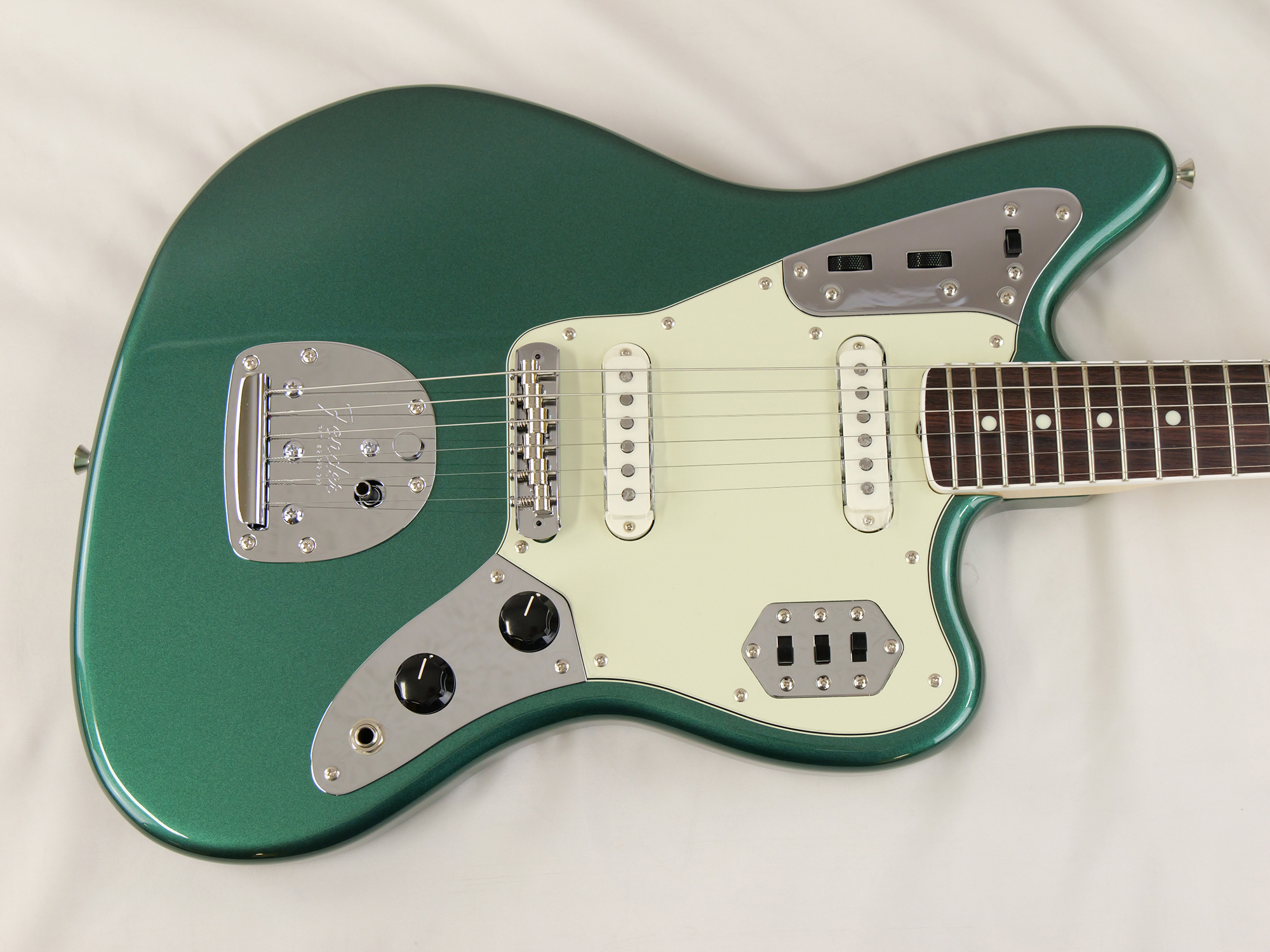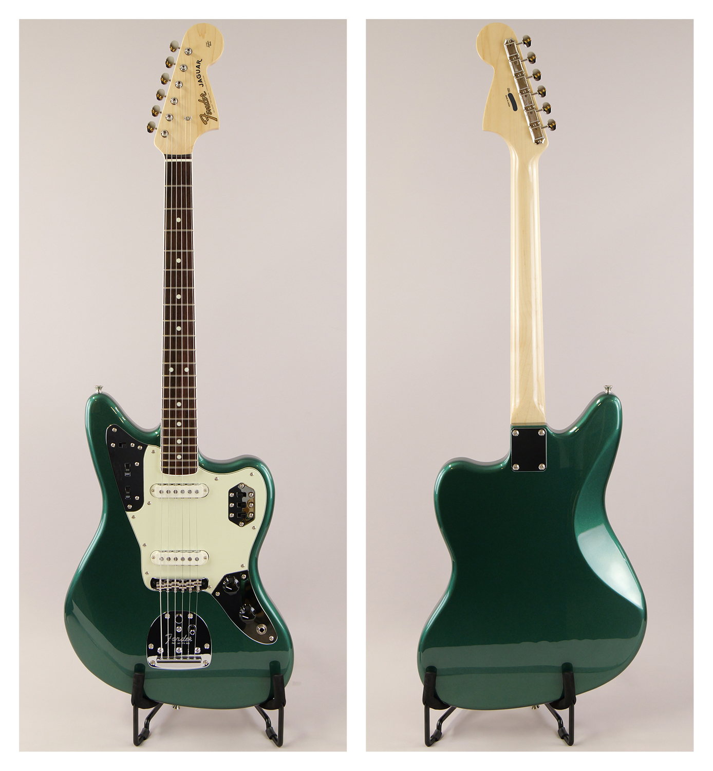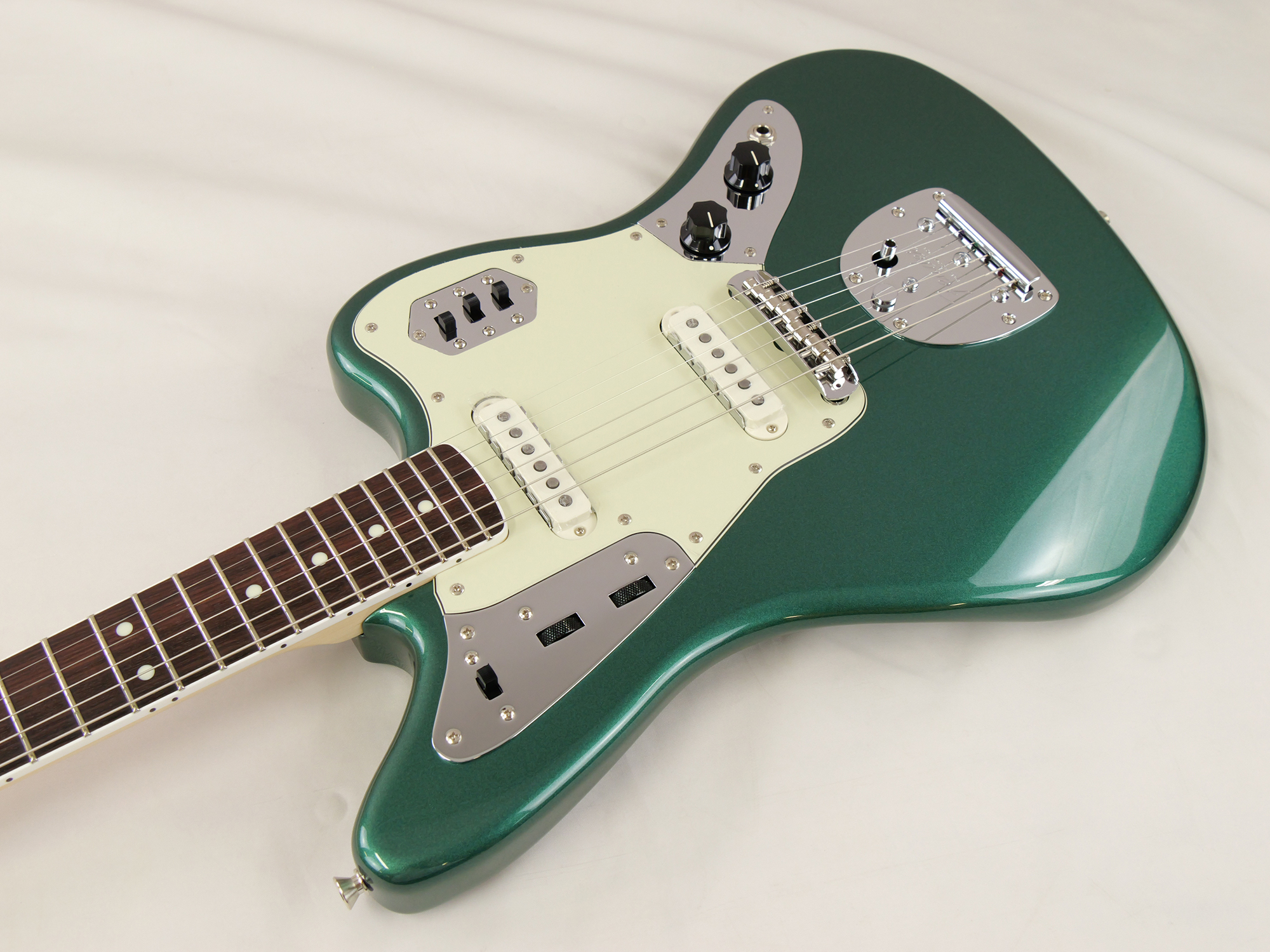 Made in Japan Traditional 60s Jaguar を基に、ボディ材をアルダーに、ピックアップをPure Vintage '65 Single-Coil Jaguarにアップグレード、ネックシェイプをMid '60s "C"、指板Rをヴィンテージ同様に7.25Radius、フレットをミディアム・ジャンボ・サイズ変更、ブリッジ・サドルを弦ズレの少ないムスタング・タイプに変更。