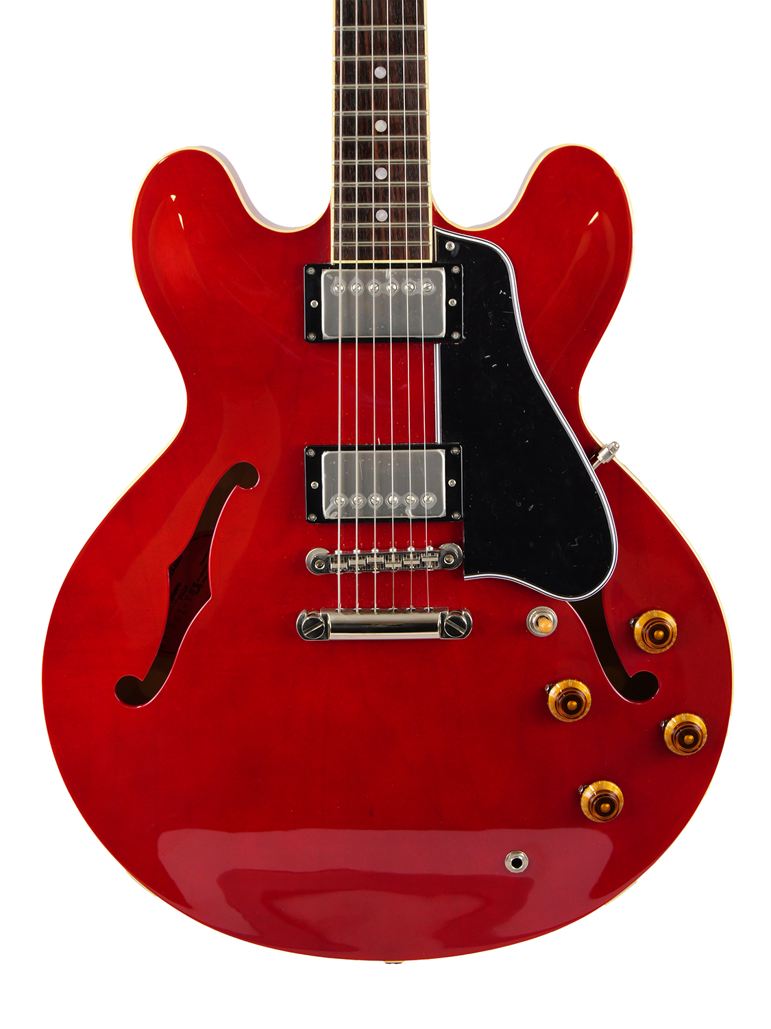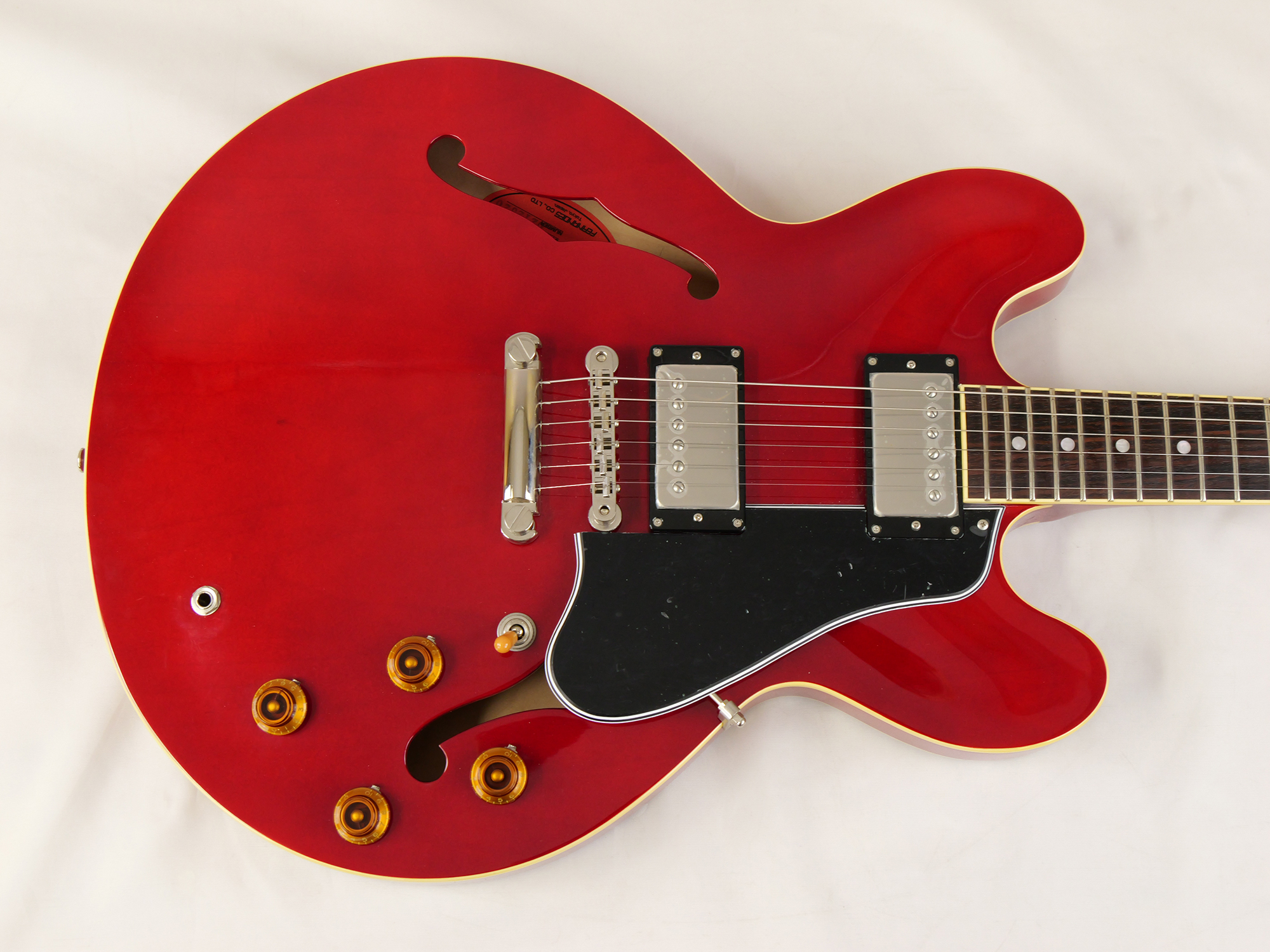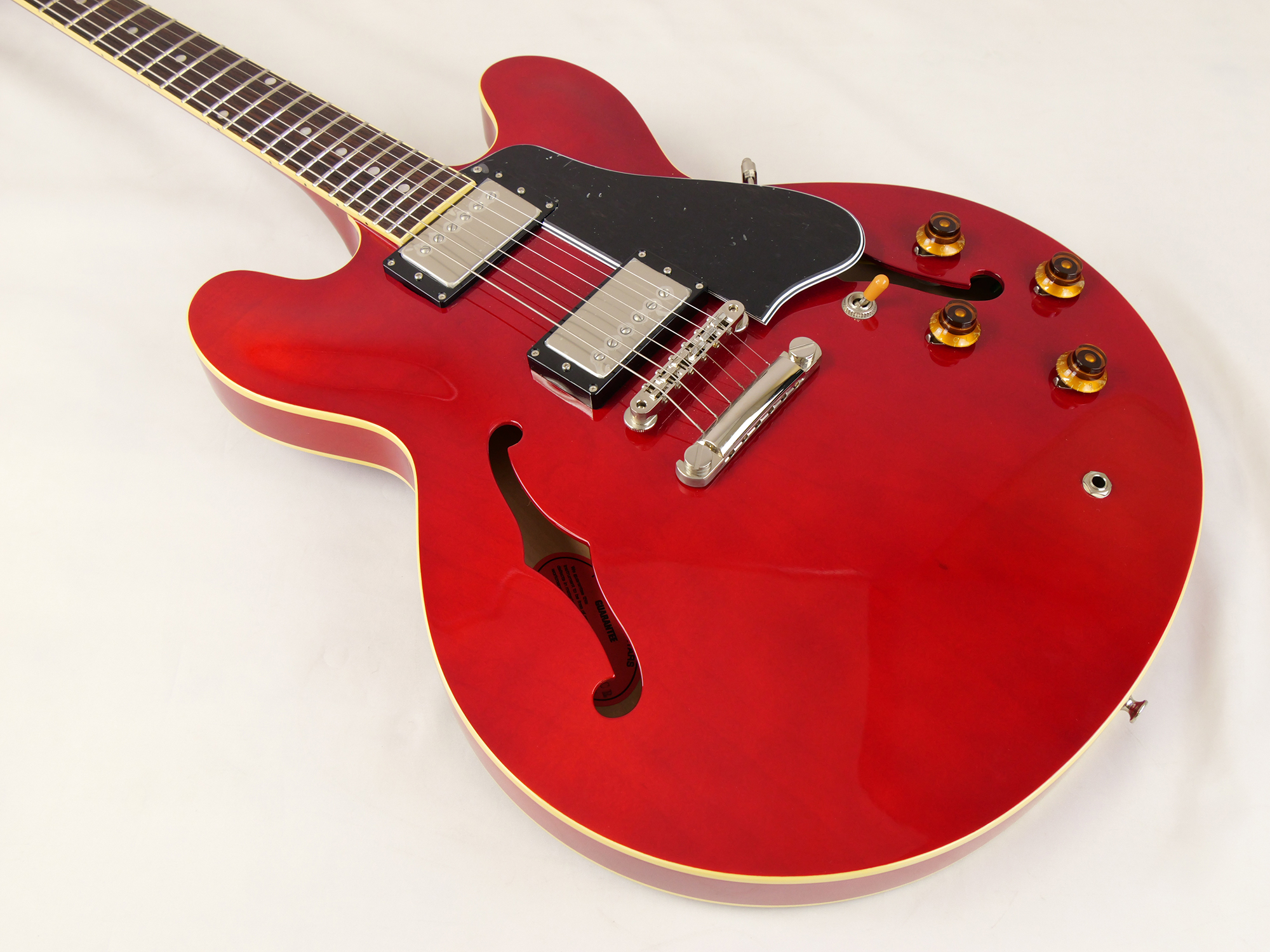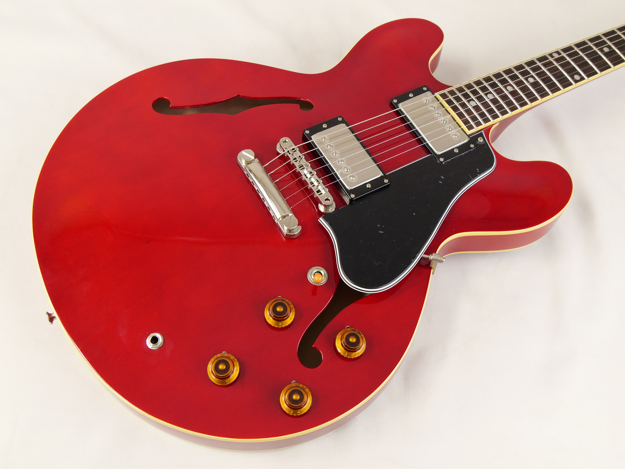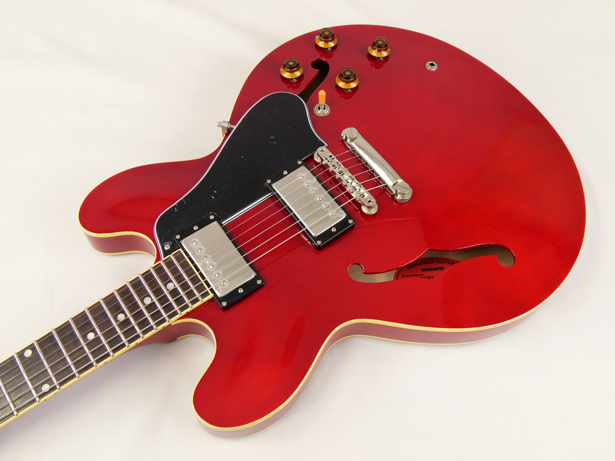 メイドインジャパンのBurnny RSA-100、鮮やかなチェリーレッドのセミアコモデルが入荷しました。豊かな鳴りと美しいルックスで、ジャンルを問わず活躍する一本です。