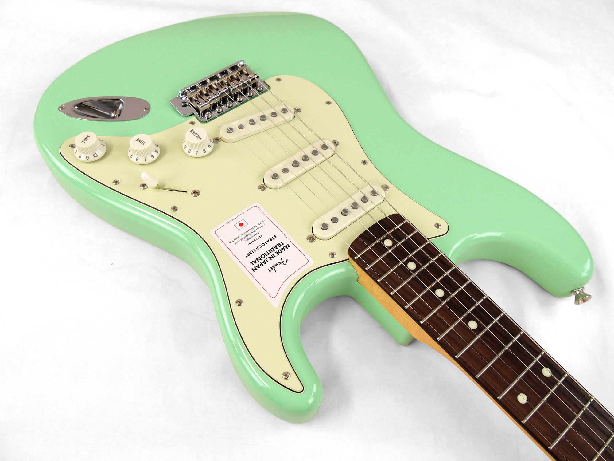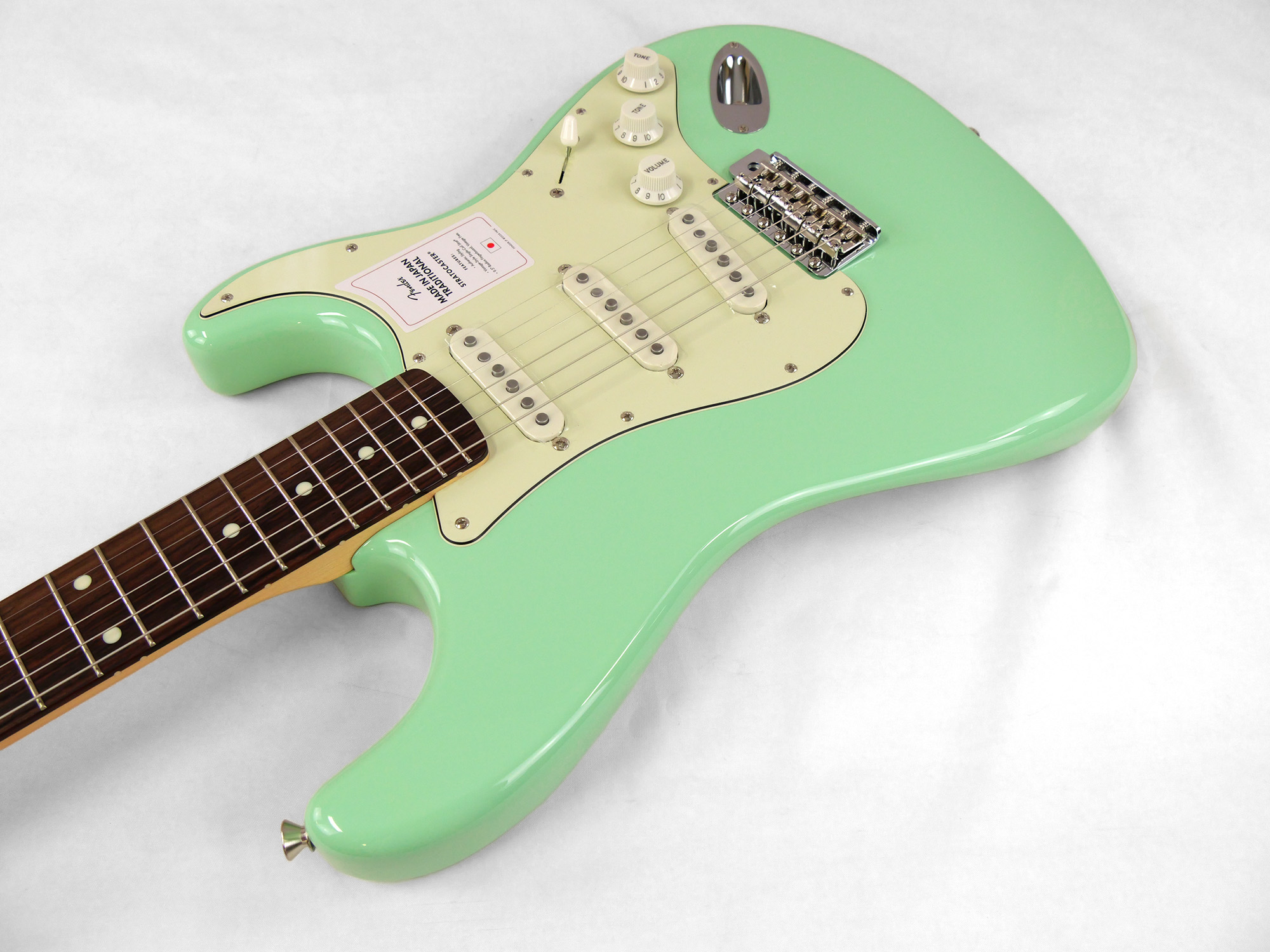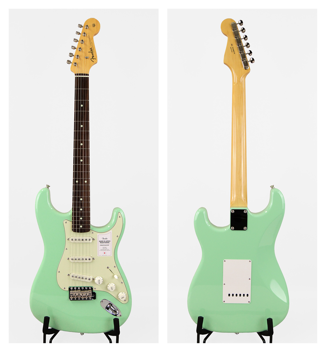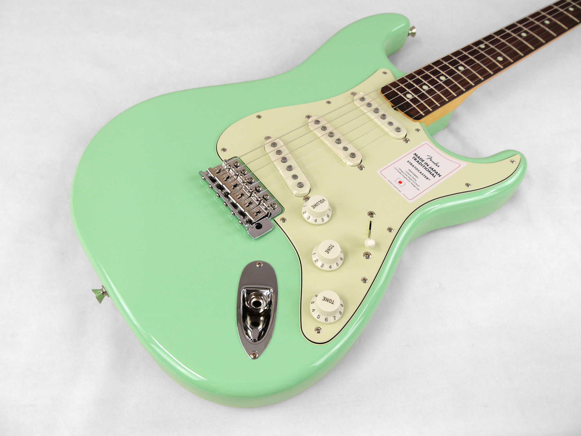 Made in Japan Traditional 60s Stratocaster®はグロスフィニッシュのバスウッドボディを採用。21本のヴィンテージスタイルフレットを装備した9.5インチラジアスの”U” シェイプメイプルネックがTraditionalシリーズならではのクラシカルな演奏製を提供します。6サドル式ヴィンテージスタイルSynchronized Tremoloブリッジ、そしてTraditionalシリーズのために選定されたオリジナルピックアップはリアルで音楽的なヴィンテージトーンを奏でます。細めに設計されたナット幅は日本のプレイヤーにも弾きやすい仕様となっています。堅実なギタークラフトマンシップと、プレイヤーのニーズに柔軟に対応する答えが、本シリーズに反映されています。