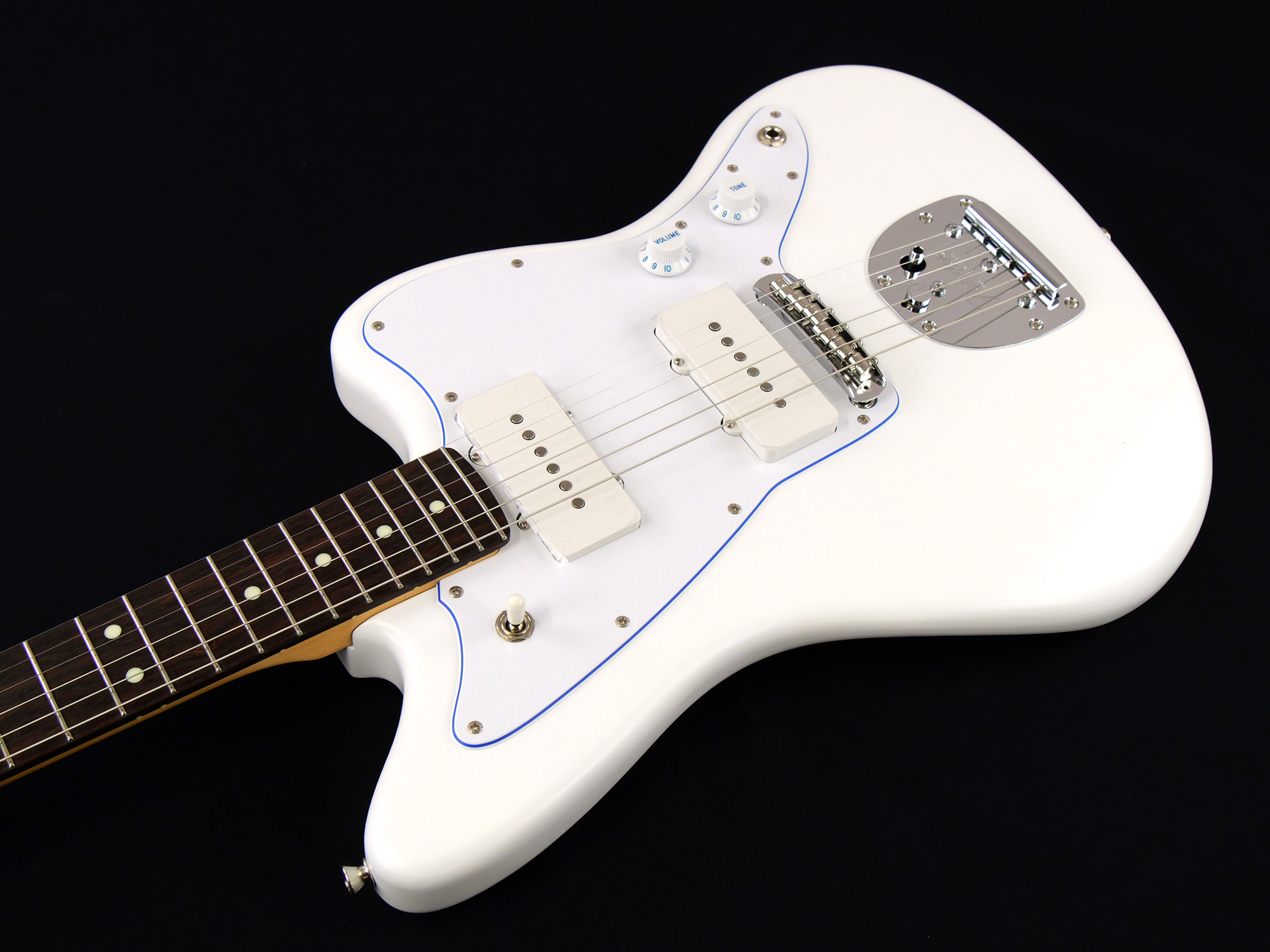 Made in Japan Limited Hybrid II Jazzmaster®, Blancは、フランス語で白を表す"Blanc"をモデル名に採用した、白と青を基調とした純白で爽やかなルックスの製品です。