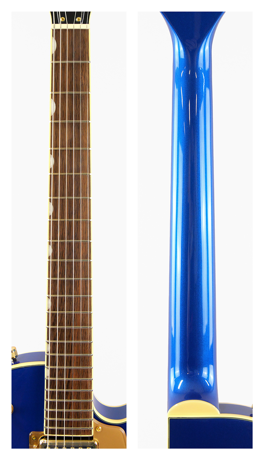 優れた演奏性を提供するラジアス12インチ(304.8ミリ)のローレル指板には、22個のミディアム・ジャンボフレットと、NeoClassic™サムネイルインレイが装備されています。
