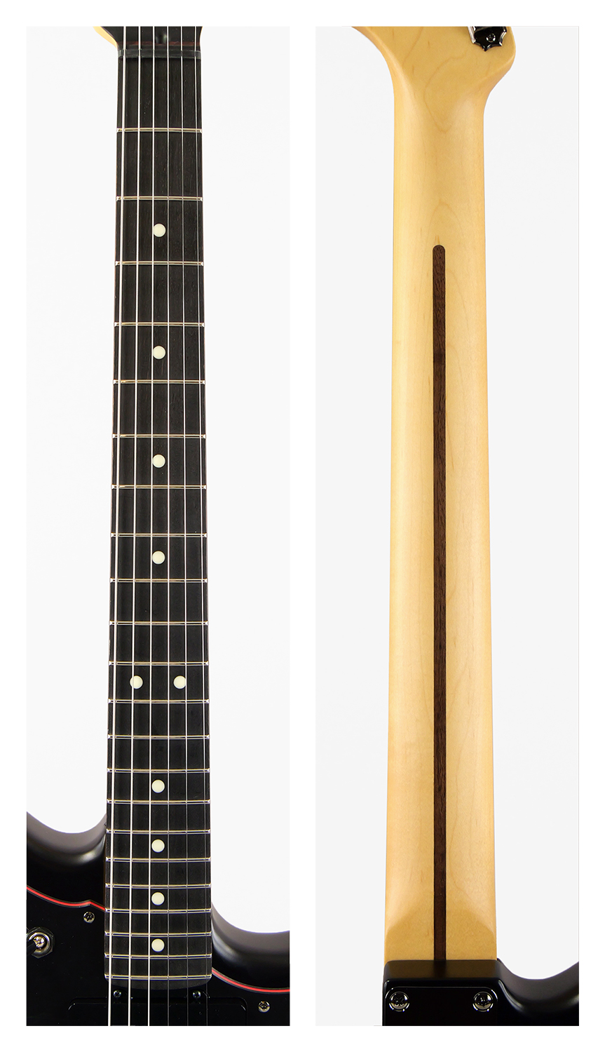 Made in Japan Limited Hybrid II Stratocaster®, Noirは、フランス語で黒を表す""Noir""をモデル名に採用した、黒と赤を基調とした力強いルックスの製品です。