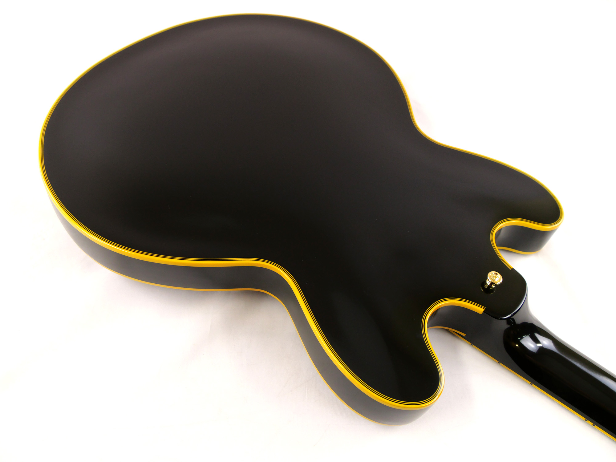 セミアコースティックギターでは、一般的にプレス加工で成型されるトップとバック材を、フルアコースティックギターのように無垢なハードメイプルから削り出して成型しています。