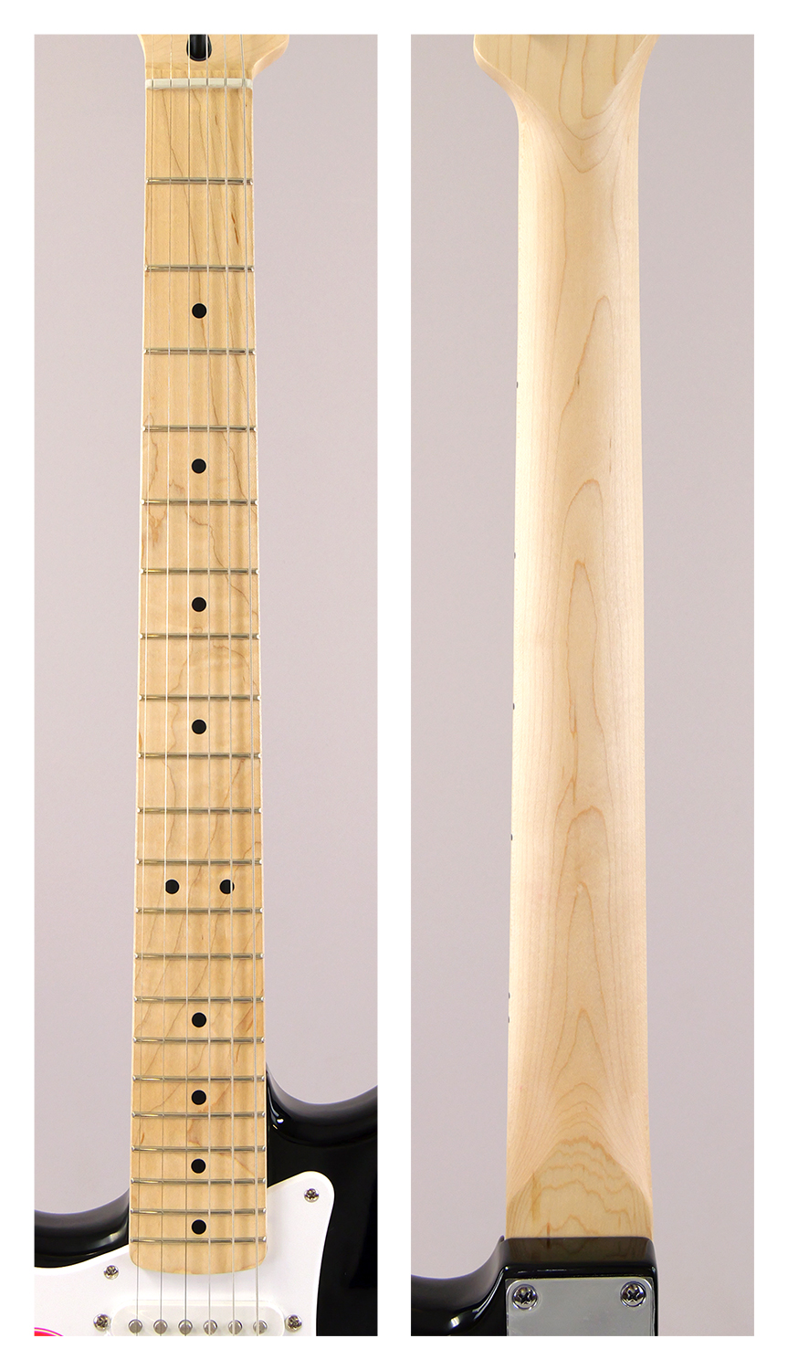 この Strat® は、薄く軽量なボディに、スリムで魅力的な「C」シェイプネックが相まって、快適な演奏性をもたらします。3基のSquier® シングルコイルピックアップはクリスタルのようにクリアで多彩なトーンを奏でます。