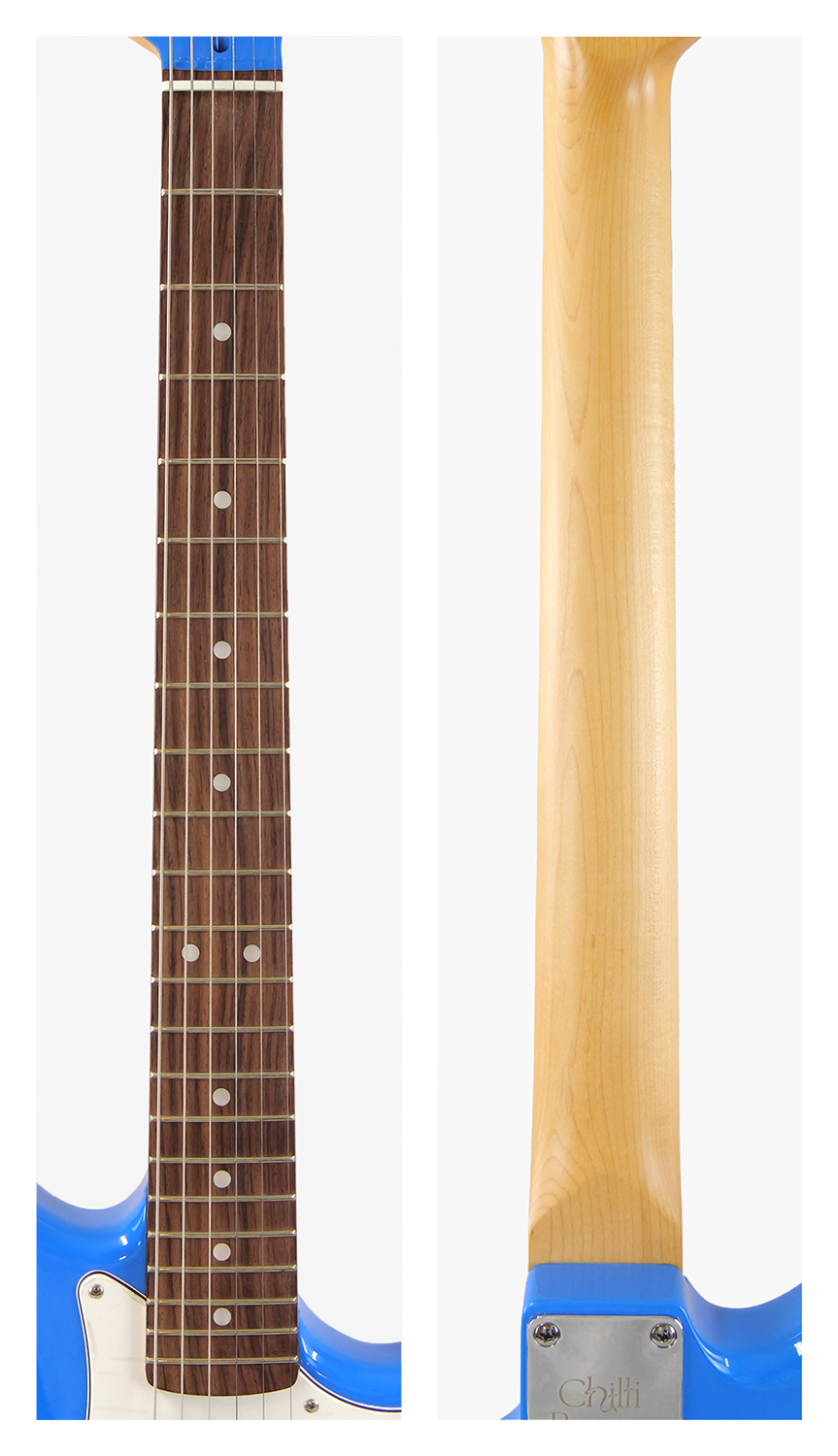 ・マッチングヘッドのブルーカラーにパーチメントピックガードを採用
