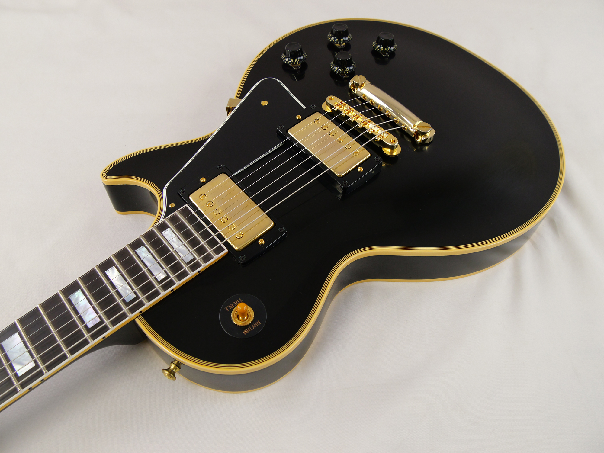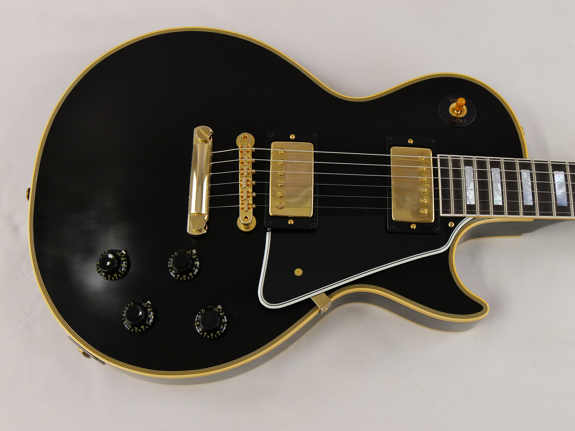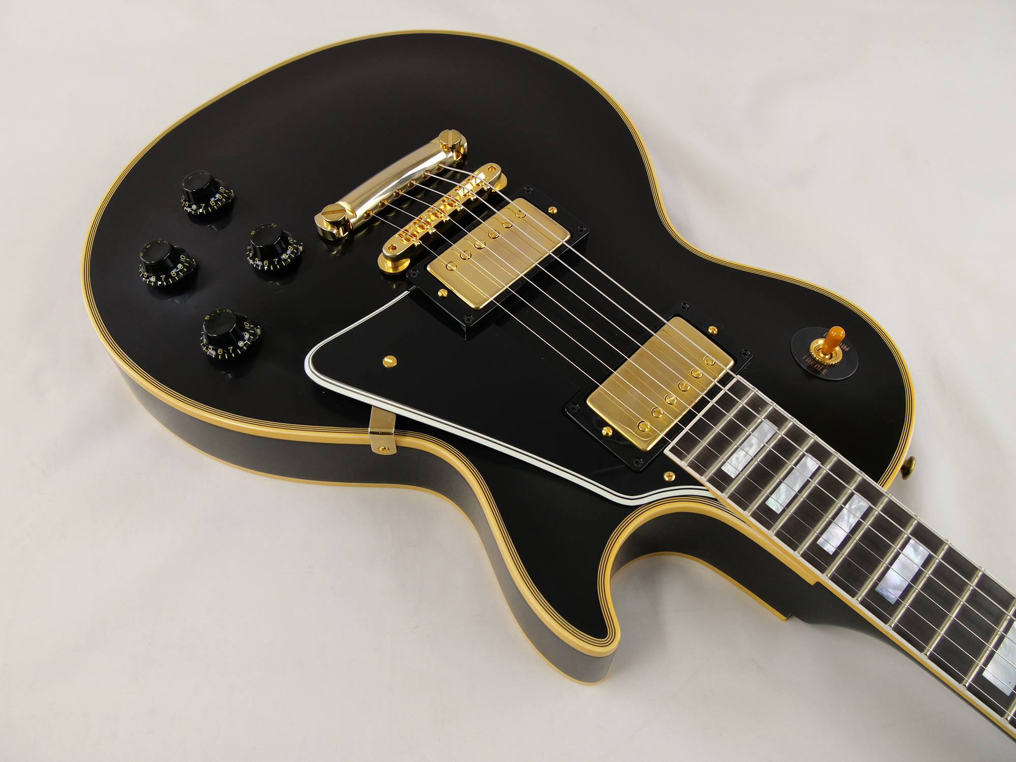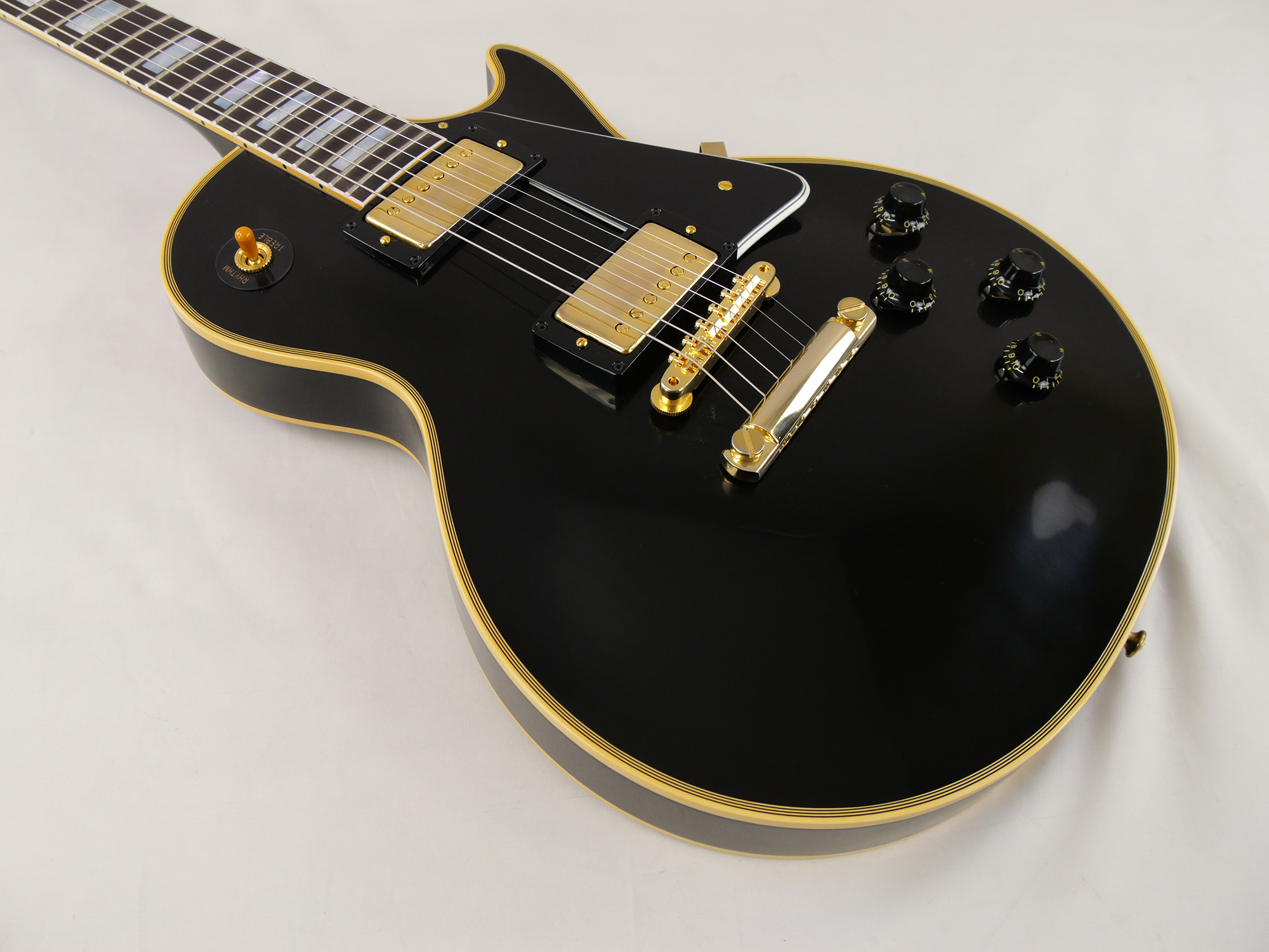 オールマホガニーボディ(ノン・ウェイトリリーフ)による重厚なダークミッドレンジと、エボニー指板のブライトなアタック感が織りなす極上のトーンを核に、ヴィンテージPAFの再現である Custombucker Alnico III (Unpotted) ピックアップ、エネルギーをダイレクトに伝える50s Rounded Medium C ネックプロファイルを採用。長年の時を経たような落ち着いた輝きを放つVOSフィニッシュとゴールド・ハードウェア、そしてKluson WafflebackチューナーやPaper-in-Oilコンデンサといったヒストリック・パーツの忠実な再現により、ルックス、サウンド、プレイアビリティの全てにおいて最高峰と称されるオリジナル「1957 Les Paul Custom」の魅力を完全に復刻。