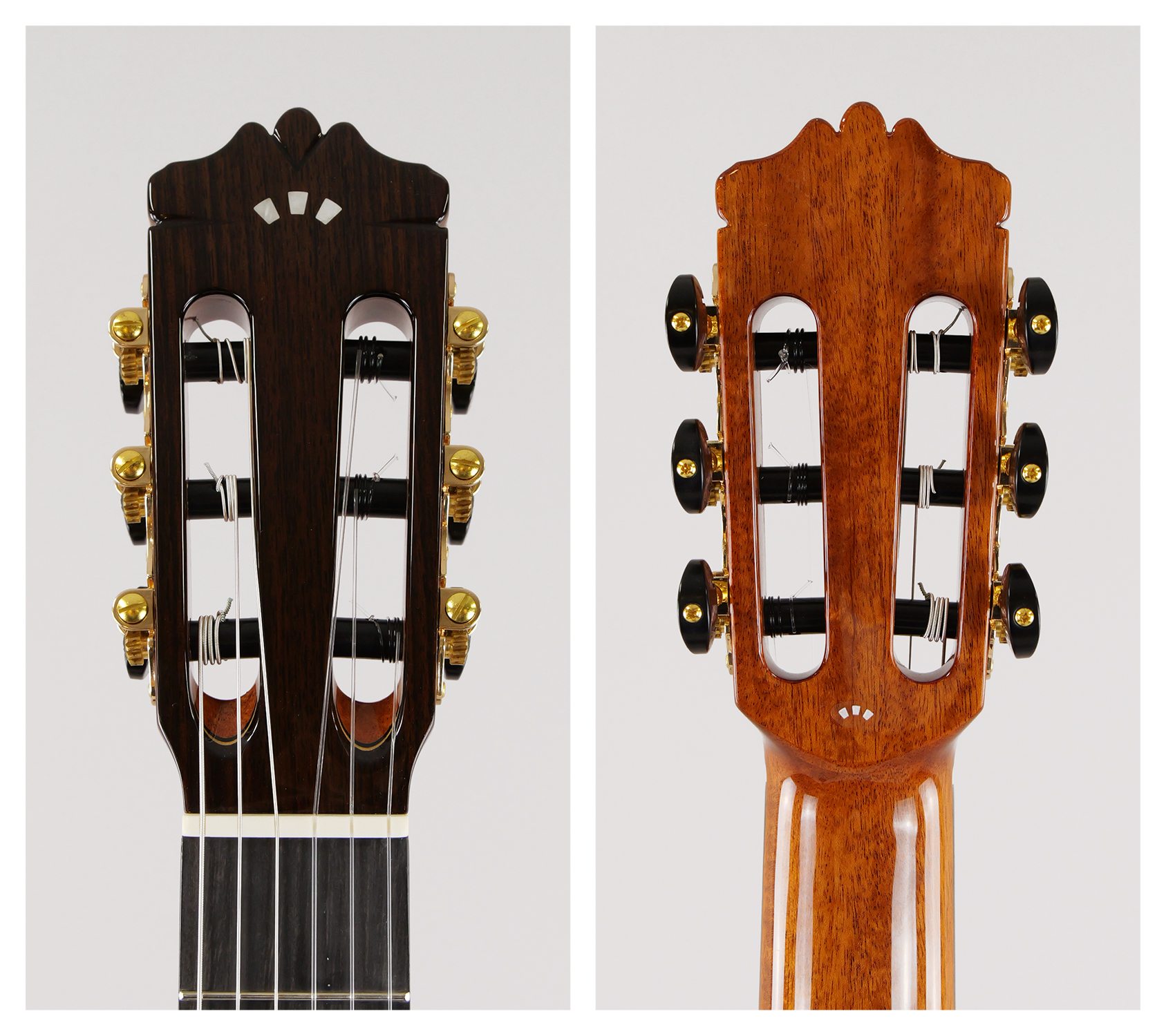 カナディアン・シダーをトップに、インディアン・ローズウッドをバック&サイドに使用したオール単板・スパニッシュ・スタイルのギターです。