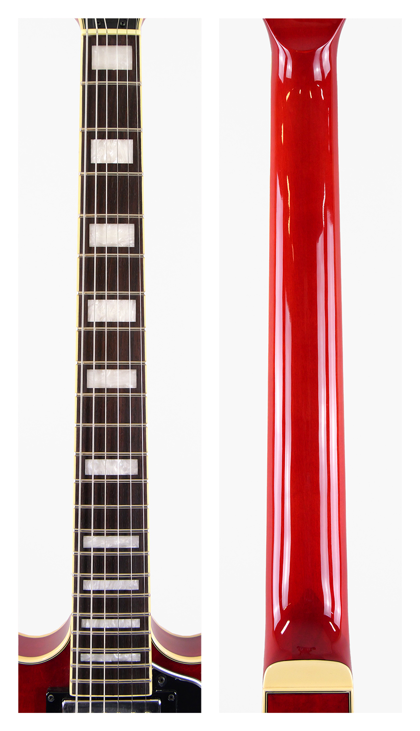 搭載されたClassic Eliteハムバッカーが、セミアコらしい、ふくよかで温かい響きを生み出します。ジャズ、ブルースはもちろん、ロックやポップスにも気持ちよく馴染んでくれるサウンドです。