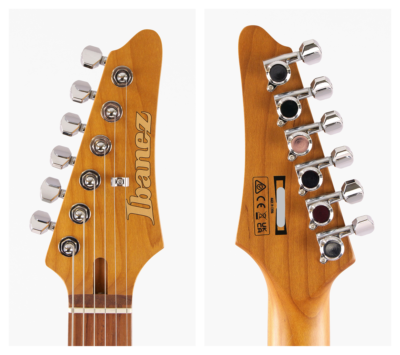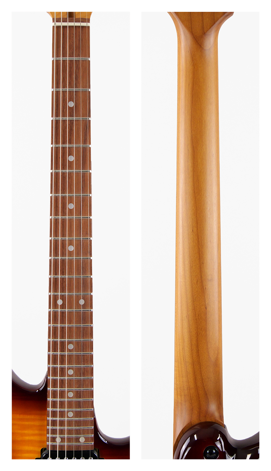 ローステッド・メイプルネックを採用。加熱処理により、反りに対する耐久性や安定性が向上しており、長く安心して使えます。ジャンボ・ステンレス・フレットは、軽いタッチで押弦でき、メンテナンス性も優秀。速いパッセージやスムーズなチョーキングをサポートします。