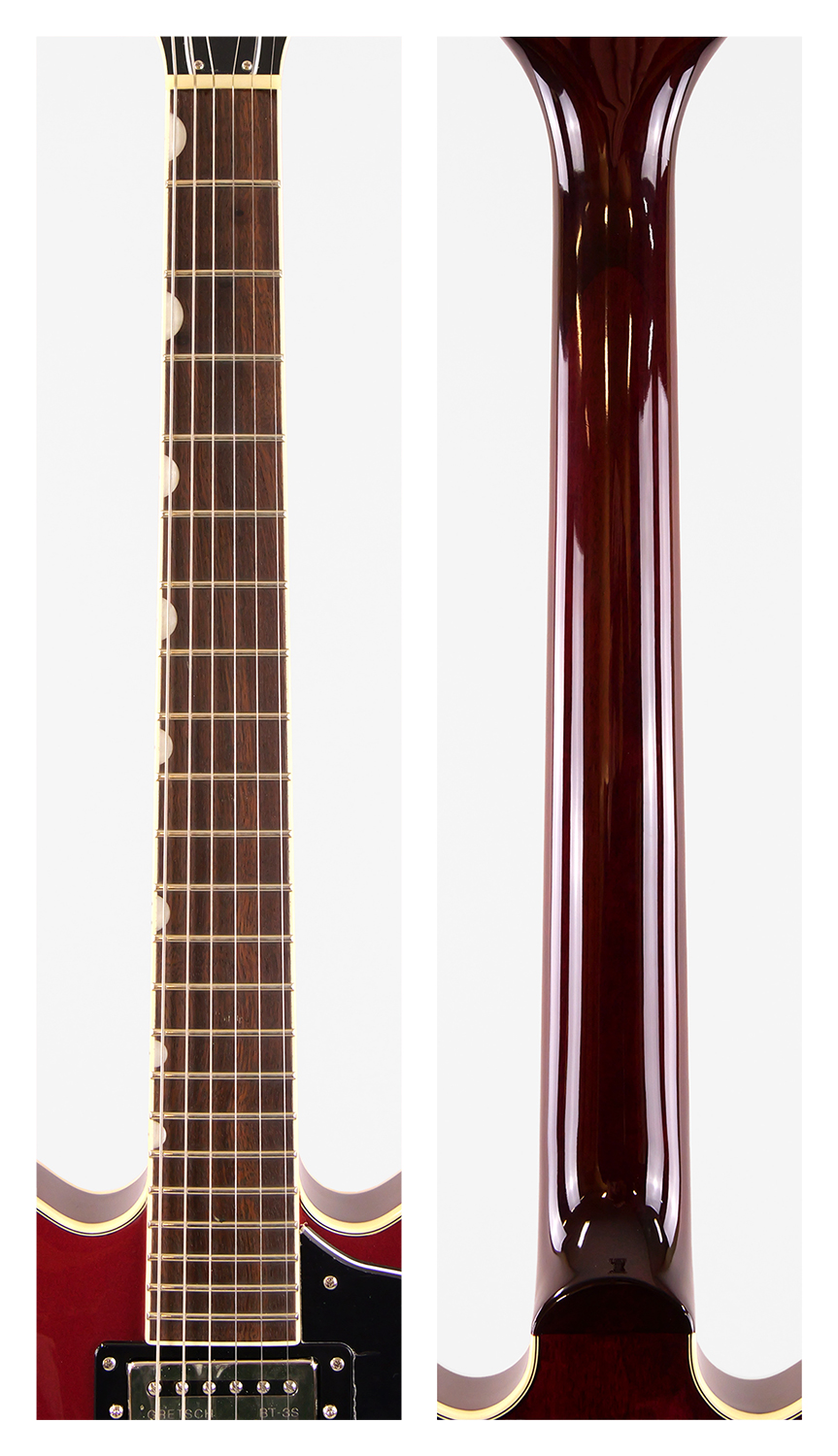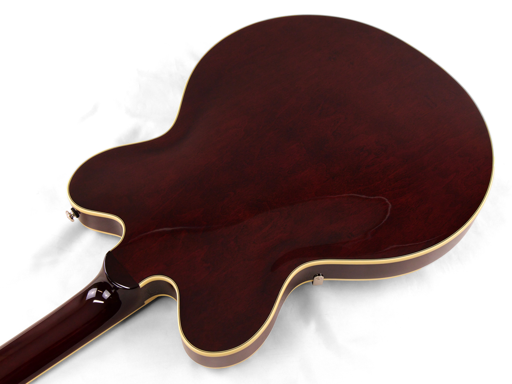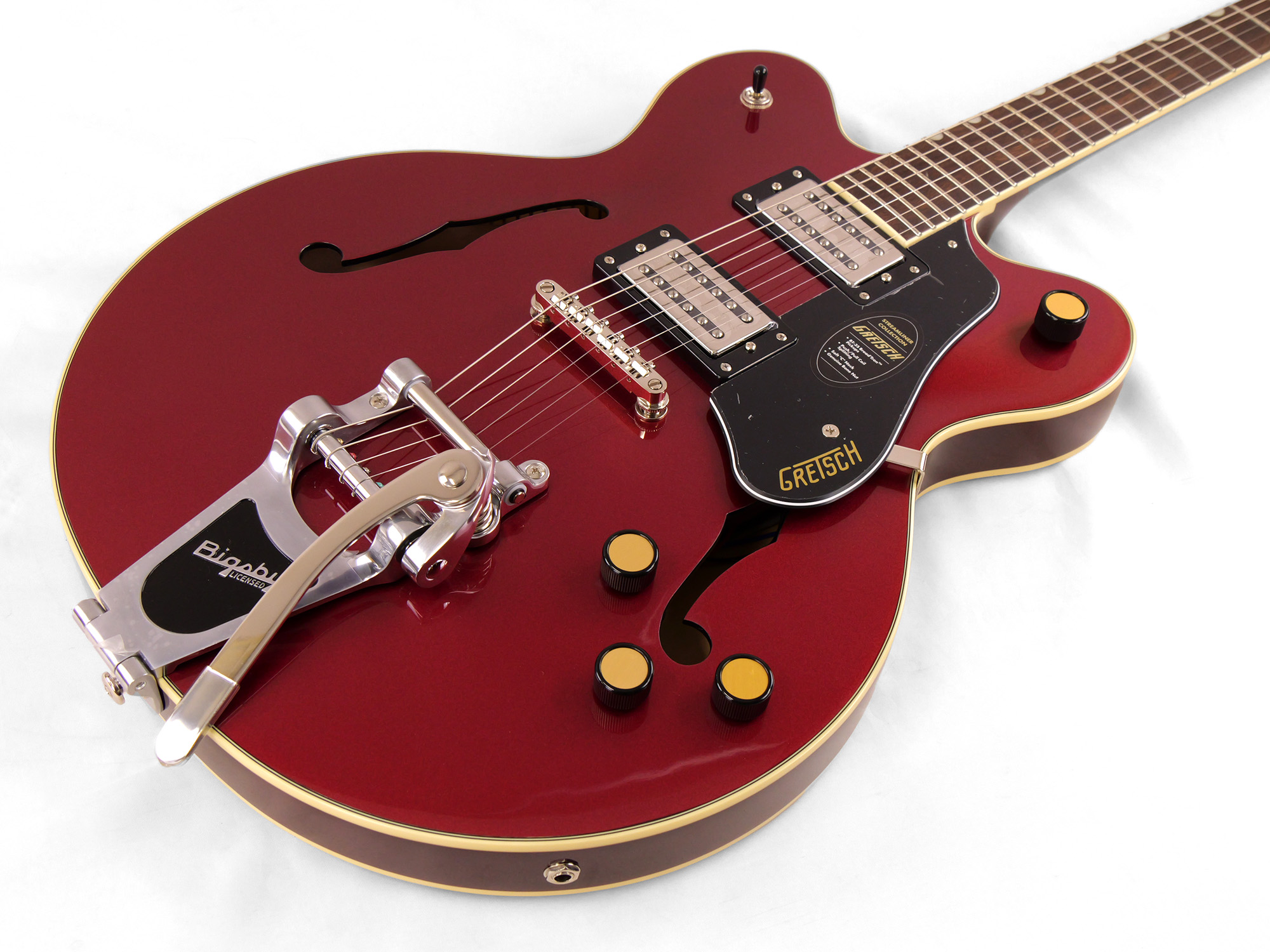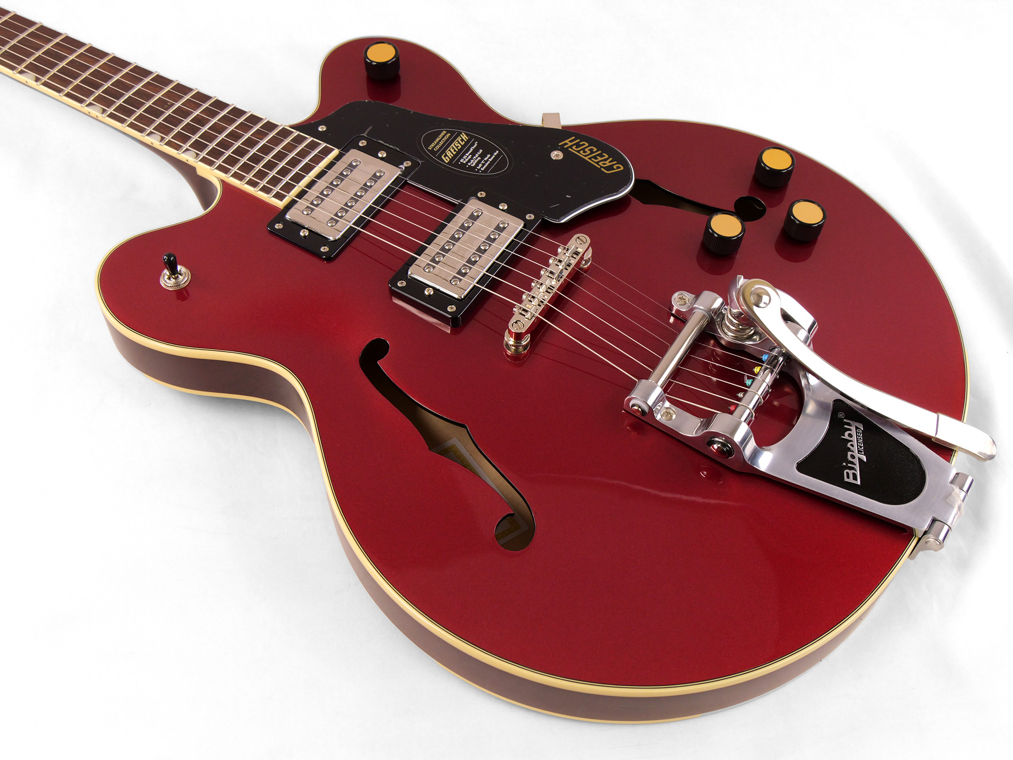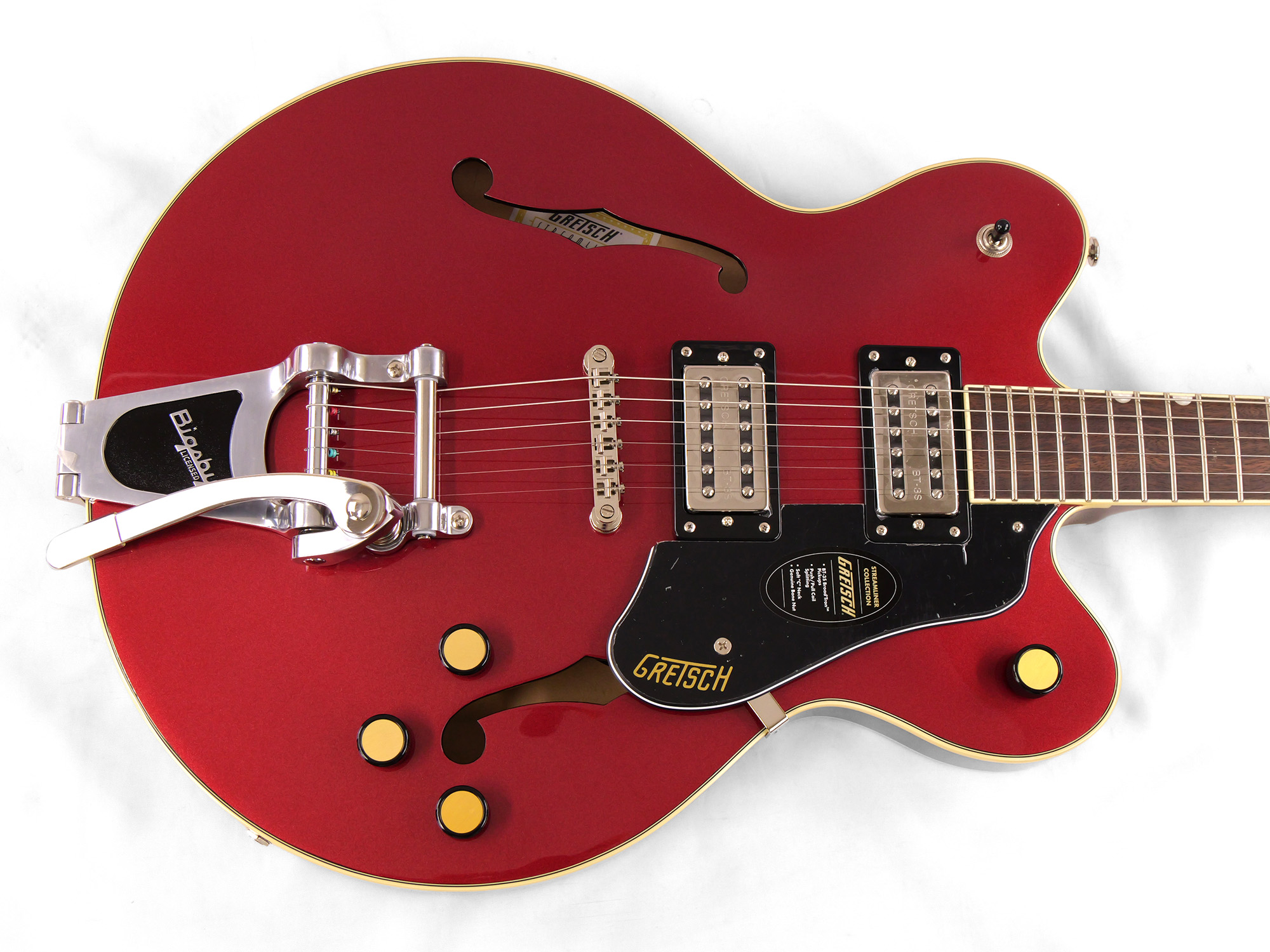 G2622 Center Blockは、アーチドメイプルボディに、新しいセンターブロックデザインを採用しています。この新しいセンターブロックは、軽量で快適な演奏性と存在感のあるフルでリッチなサウンドを両立するように設計されており、アタックとサスティンを向上させ、優れたフィードバック抑制効果を、重さを感じさせない快適なギターにまとめ上げています。