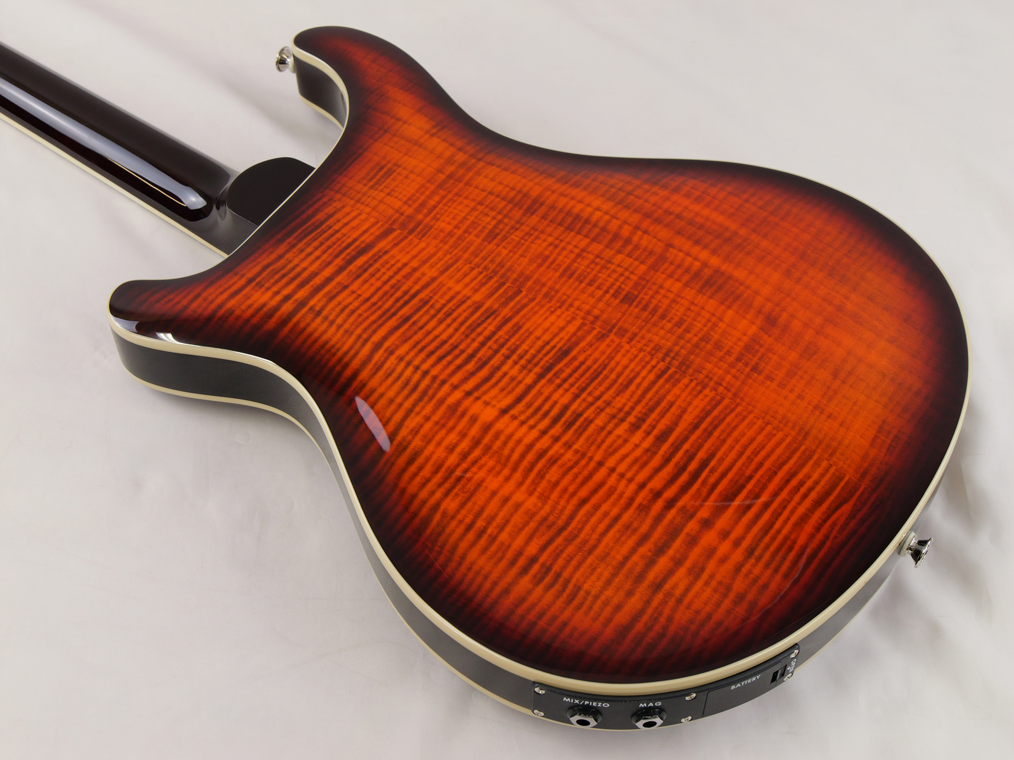 なお、マグネット・ピックアップの出力ジャックのみを使用した場合、ピエゾ・システム用のバッテリーは完全にバイパスされるため、バッテリーの残量がなくなった場合でもマグネット・ピックアップは通常どおり使用することができます。