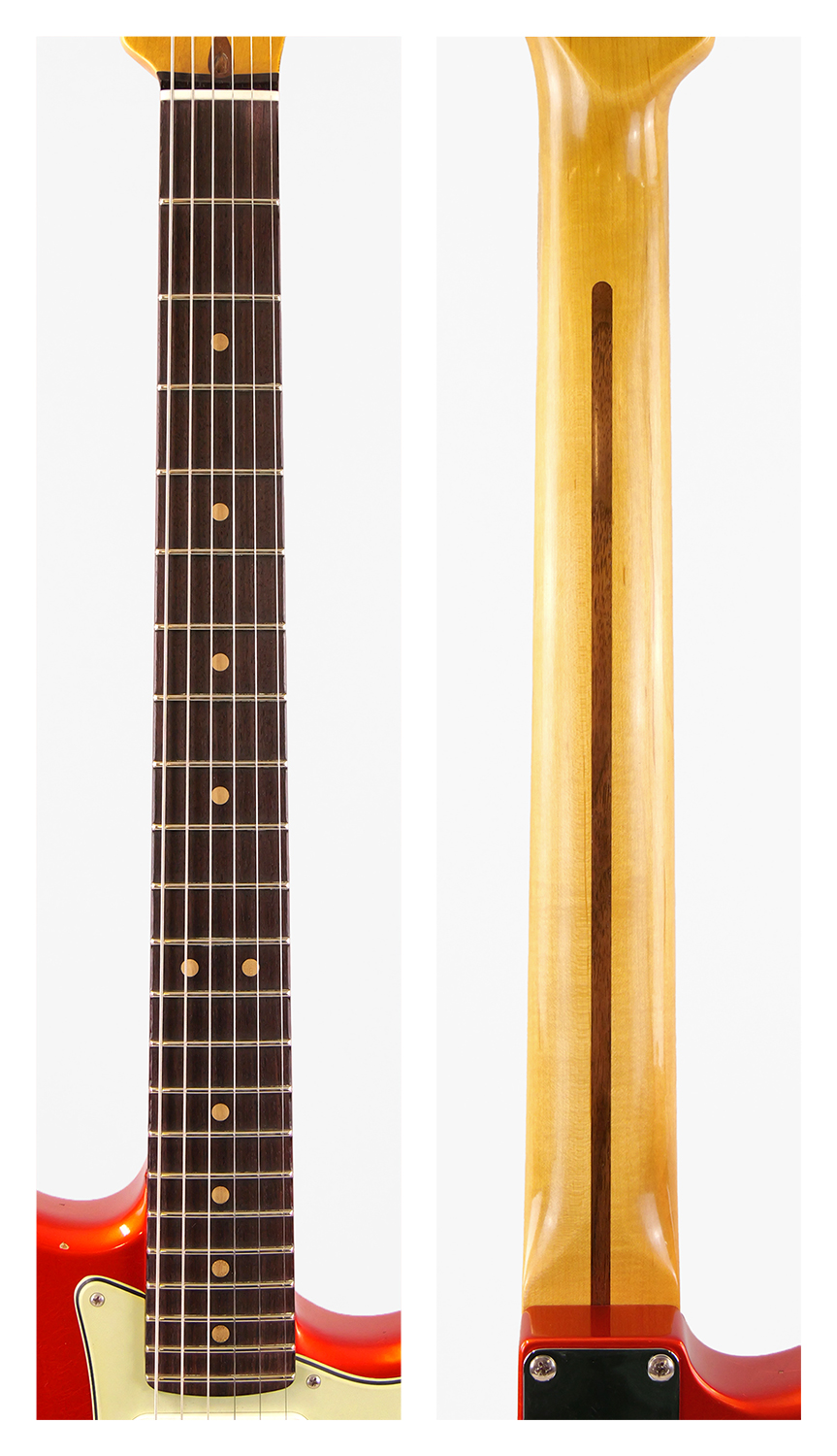 指板ラジアスは、チョーキング時の音詰まりを心配せず、快適な速弾きやベンディングを可能にするモダンな9.50インチ。そこに、Narrow Tall #6105フレットを組み合わせることで、伝統的なトーンを保ちつつ、高い実用性を実現しています。まさに、ヴィンテージとモダンの「良いとこ取り」の仕様です。