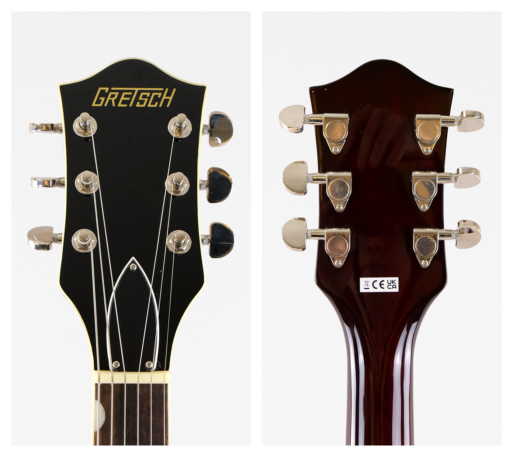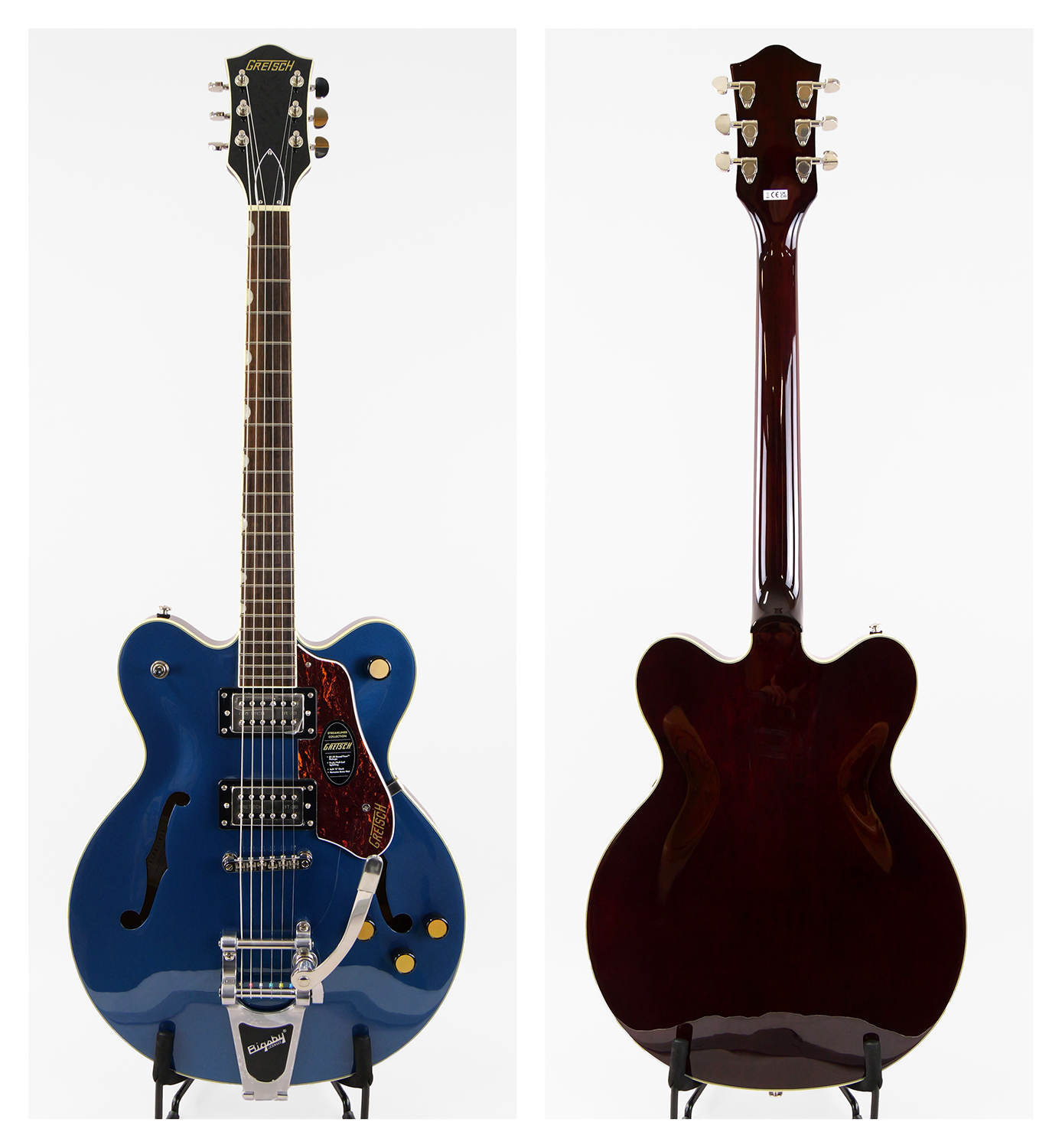 G2622 Center Blockは、アーチドメイプルボディに、新しいセンターブロックデザインを採用しています。この新しいセンターブロックは、軽量で快適な演奏性と存在感のあるフルでリッチなサウンドを両立するように設計されており、アタックとサスティンを向上させ、優れたフィードバック抑制効果を、重さを感じさせない快適なギターにまとめ上げています。