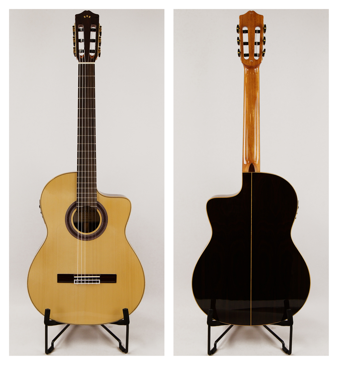 - ブレイシング : Spanish fan bracing, Flamenco style build, cutaway electric