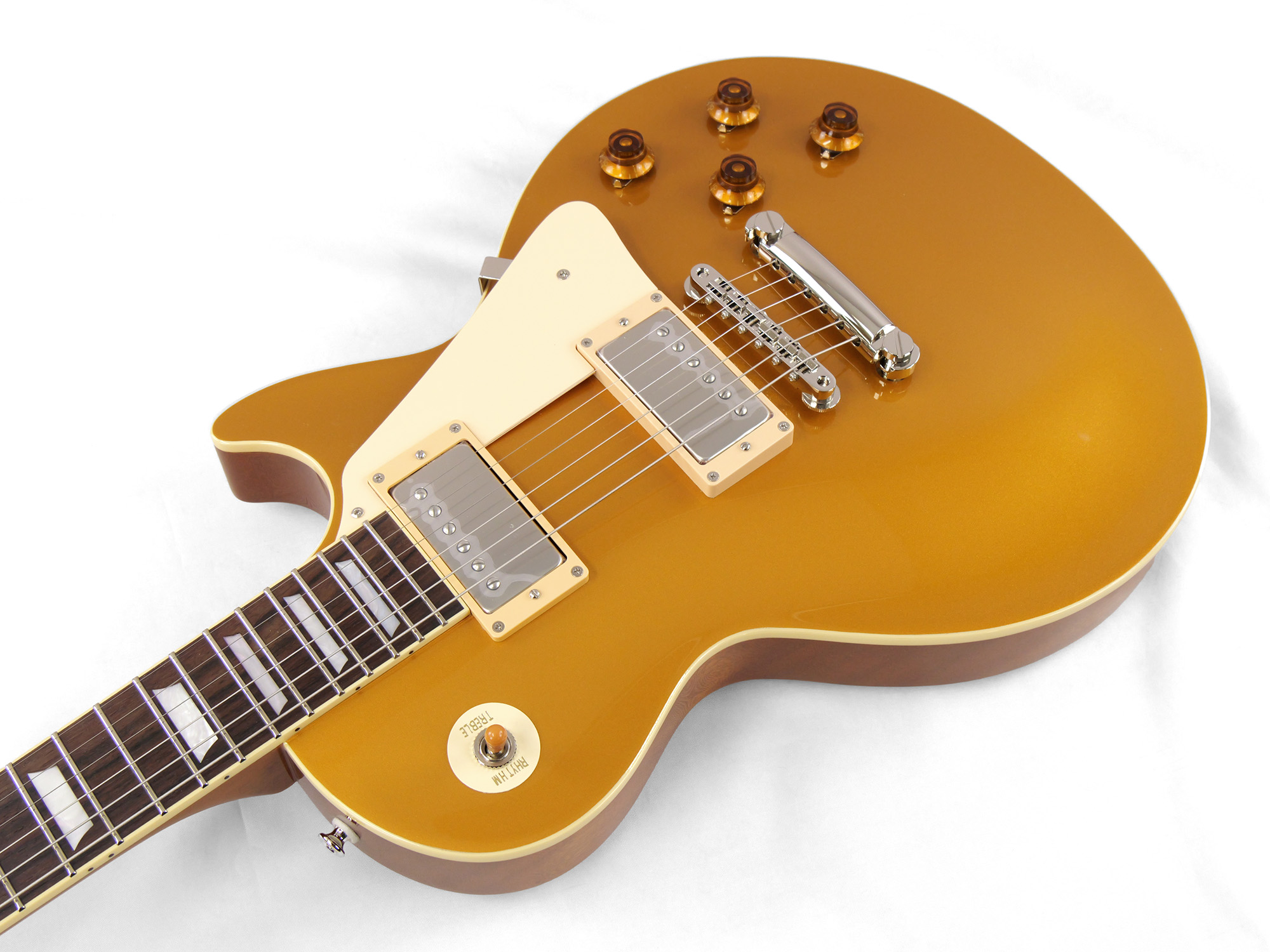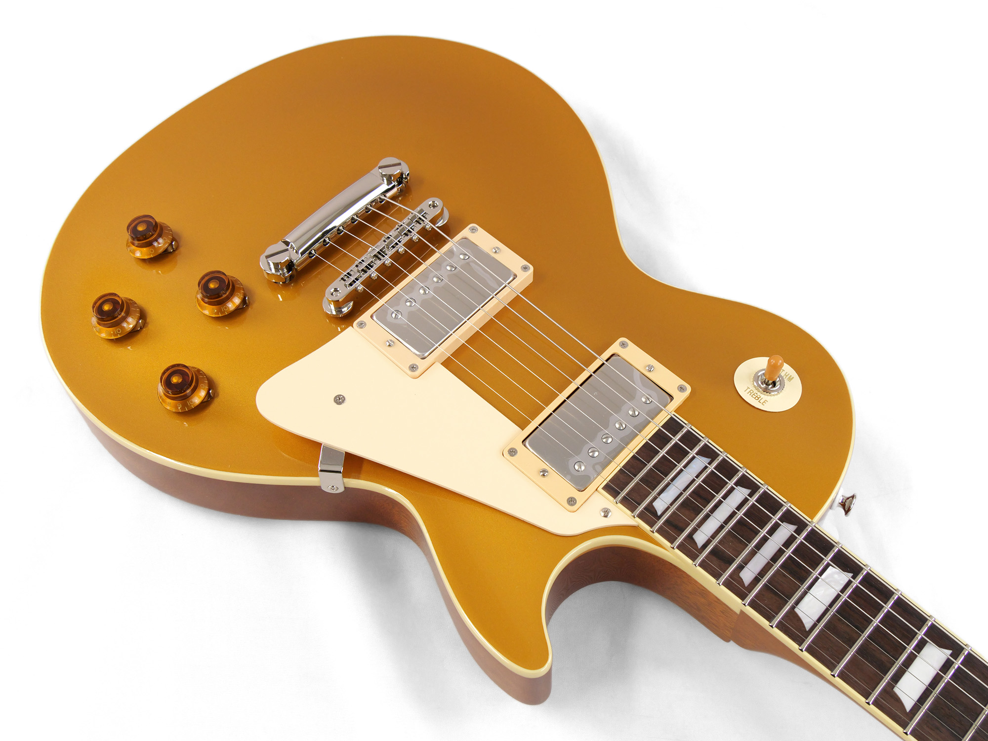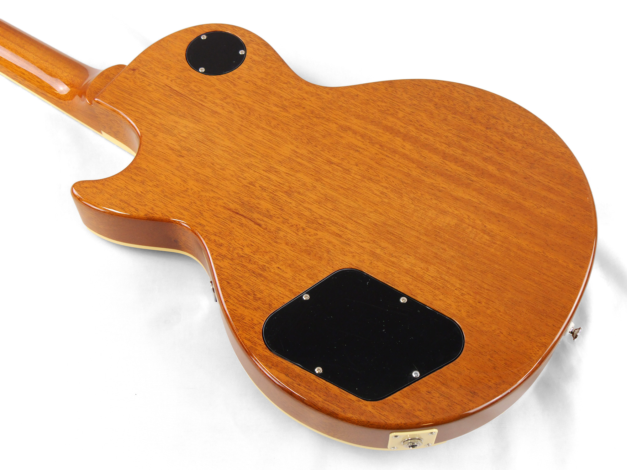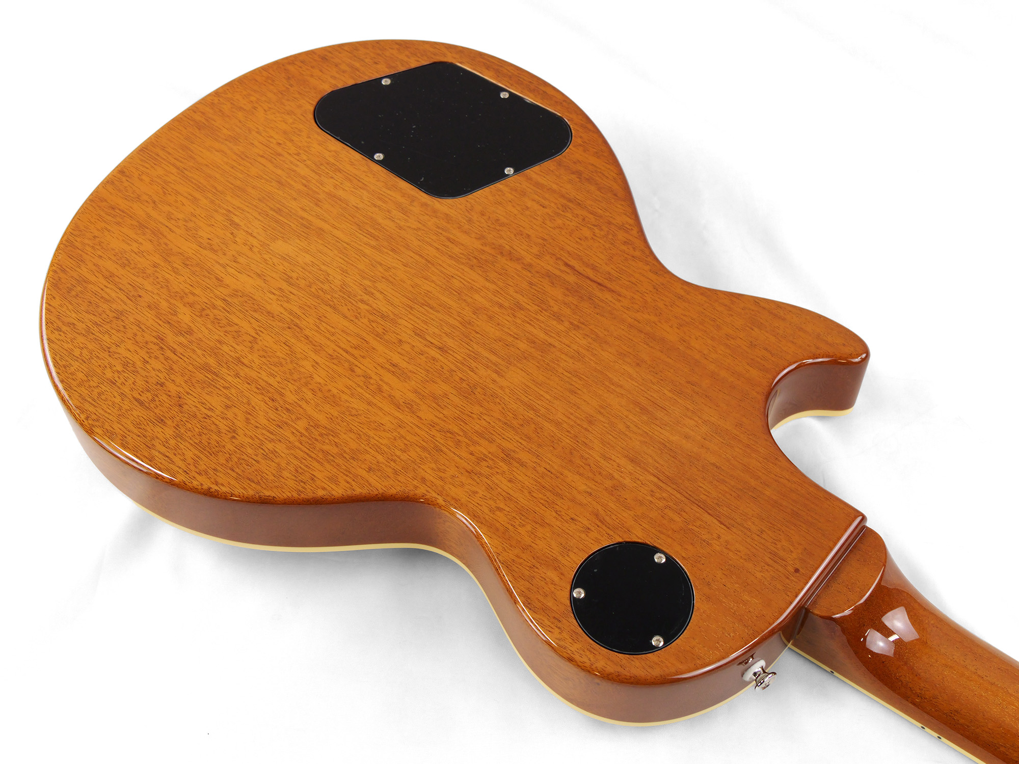 メイプルをトップにラミネートした王道のレスポール・スタンダード・スタイル。ネックとボディの接合には伝統的なニカワ接着が採用されており、セットネックならではの響きの一体感がしっかりと感じられます。