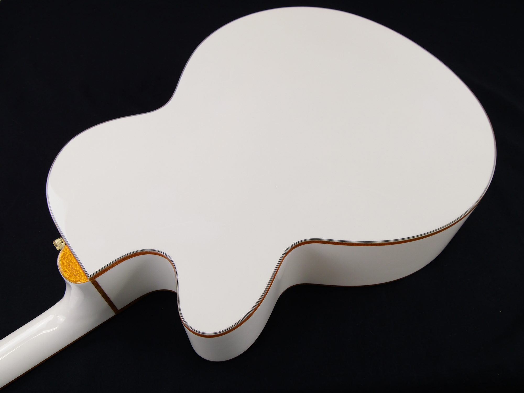 ジャンボカッタウェイを装備したボディを採用し、ボディ・トップ&バック、サウンドホール、指板、ヘッドストックに、光り輝くゴールドスパークルのバインディングが施されています。