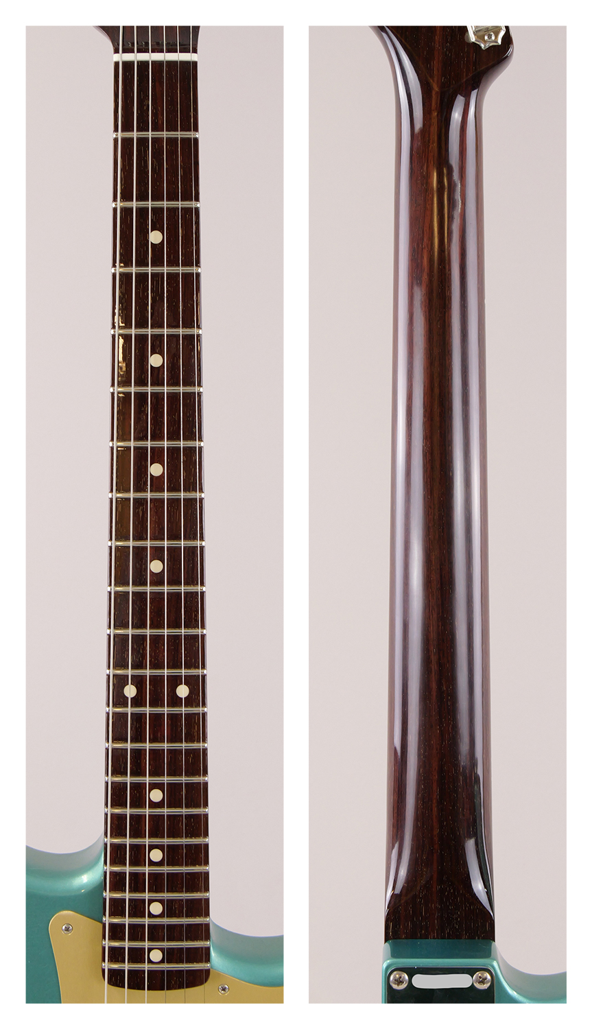 ・ネック : ネックフィニッシュも同様に、わずかながら経年変化が見られる程度で、演奏には全く支障のない、スムーズな状態が保たれております。