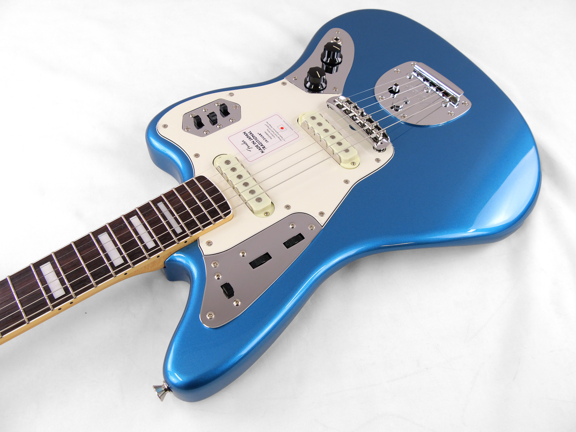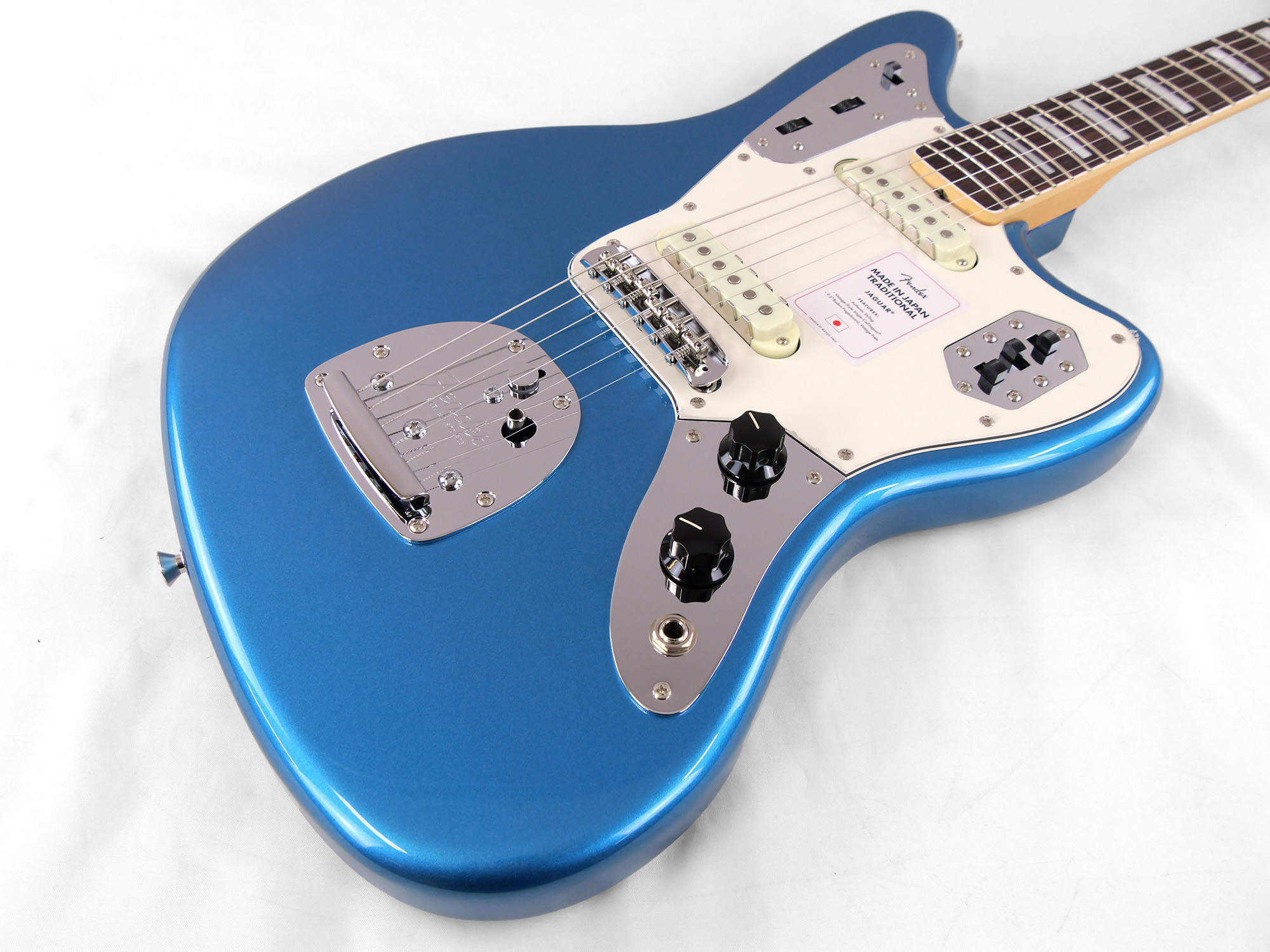 Made in Japan Traditional Late '60s Jaguar®はグロスフィニッシュのバスウッドボディに、ヴィンテージスタイルの22フレットを採用し、9.5インチラジアスの”U” シェイプメイプルネックがTraditionalシリーズならではのクラシカルな演奏製を提供します。フローティングトレモロテイルピース付きの6サドル式ヴィンテージスタイルブリッジ、そしてTraditionalシリーズのために選定されたオリジナルピックアップはリアルで音楽的なヴィンテージトーンを奏でます。 本製品は、60年代の後期から採用されていた、ネックにバインディングが施されブロックのポジションインレイを採用した製品のリイシューです。 堅実なギタークラフトマンシップと、プレイヤーのニーズに柔軟に対応する答えが、本シリーズに反映されています。