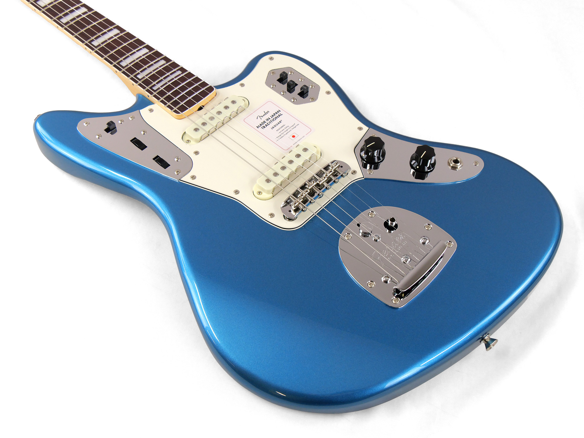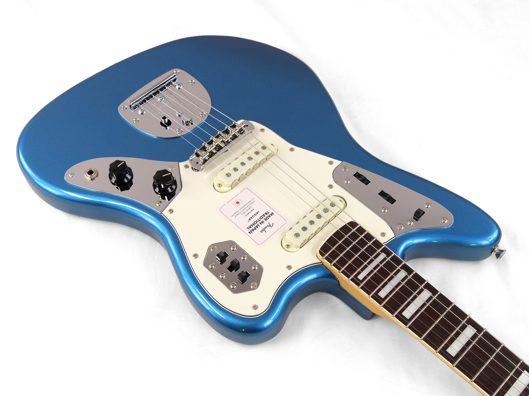 Made in Japan Traditional Late '60s Jaguar®はグロスフィニッシュのバスウッドボディに、ヴィンテージスタイルの22フレットを採用し、9.5インチラジアスの”U” シェイプメイプルネックがTraditionalシリーズならではのクラシカルな演奏製を提供します。フローティングトレモロテイルピース付きの6サドル式ヴィンテージスタイルブリッジ、そしてTraditionalシリーズのために選定されたオリジナルピックアップはリアルで音楽的なヴィンテージトーンを奏でます。 本製品は、60年代の後期から採用されていた、ネックにバインディングが施されブロックのポジションインレイを採用した製品のリイシューです。 堅実なギタークラフトマンシップと、プレイヤーのニーズに柔軟に対応する答えが、本シリーズに反映されています。