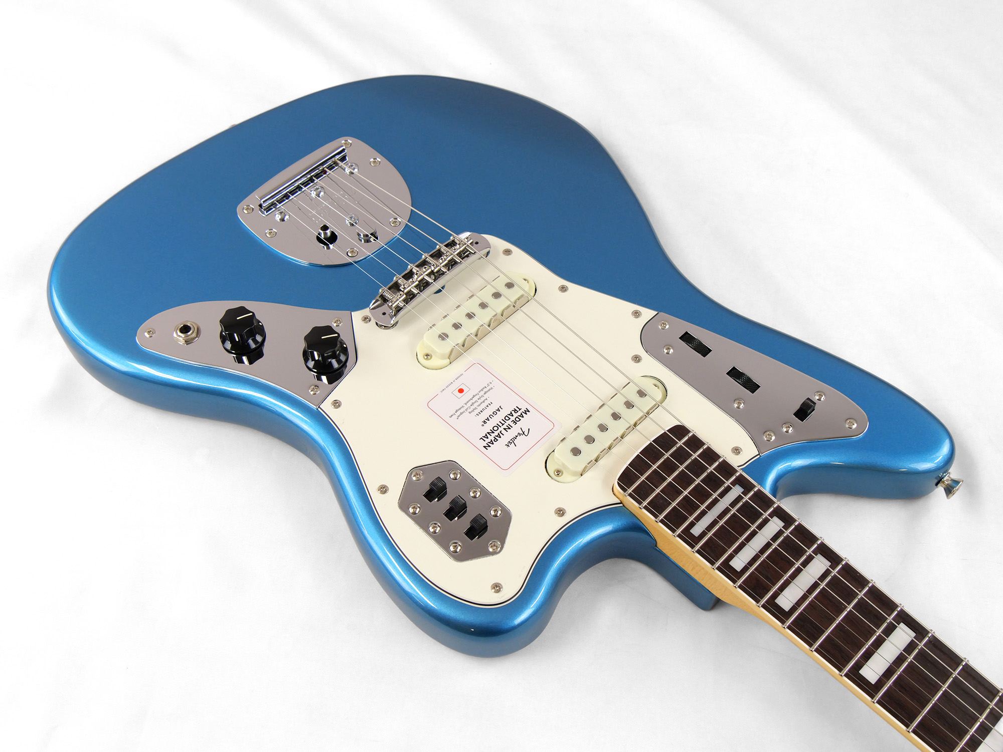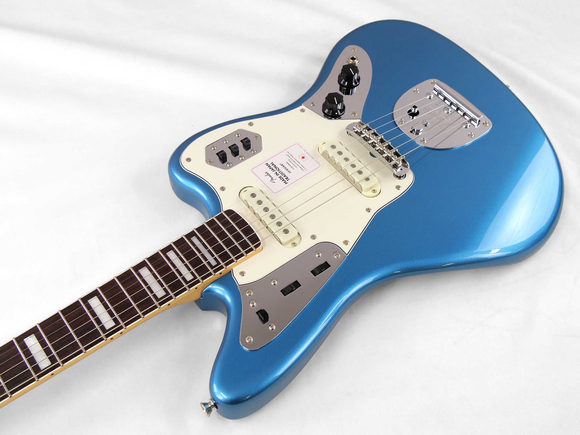 Made in Japan Traditional Late '60s Jaguar®はグロスフィニッシュのバスウッドボディに、ヴィンテージスタイルの22フレットを採用し、9.5インチラジアスの”U” シェイプメイプルネックがTraditionalシリーズならではのクラシカルな演奏製を提供します。フローティングトレモロテイルピース付きの6サドル式ヴィンテージスタイルブリッジ、そしてTraditionalシリーズのために選定されたオリジナルピックアップはリアルで音楽的なヴィンテージトーンを奏でます。 本製品は、60年代の後期から採用されていた、ネックにバインディングが施されブロックのポジションインレイを採用した製品のリイシューです。 堅実なギタークラフトマンシップと、プレイヤーのニーズに柔軟に対応する答えが、本シリーズに反映されています。