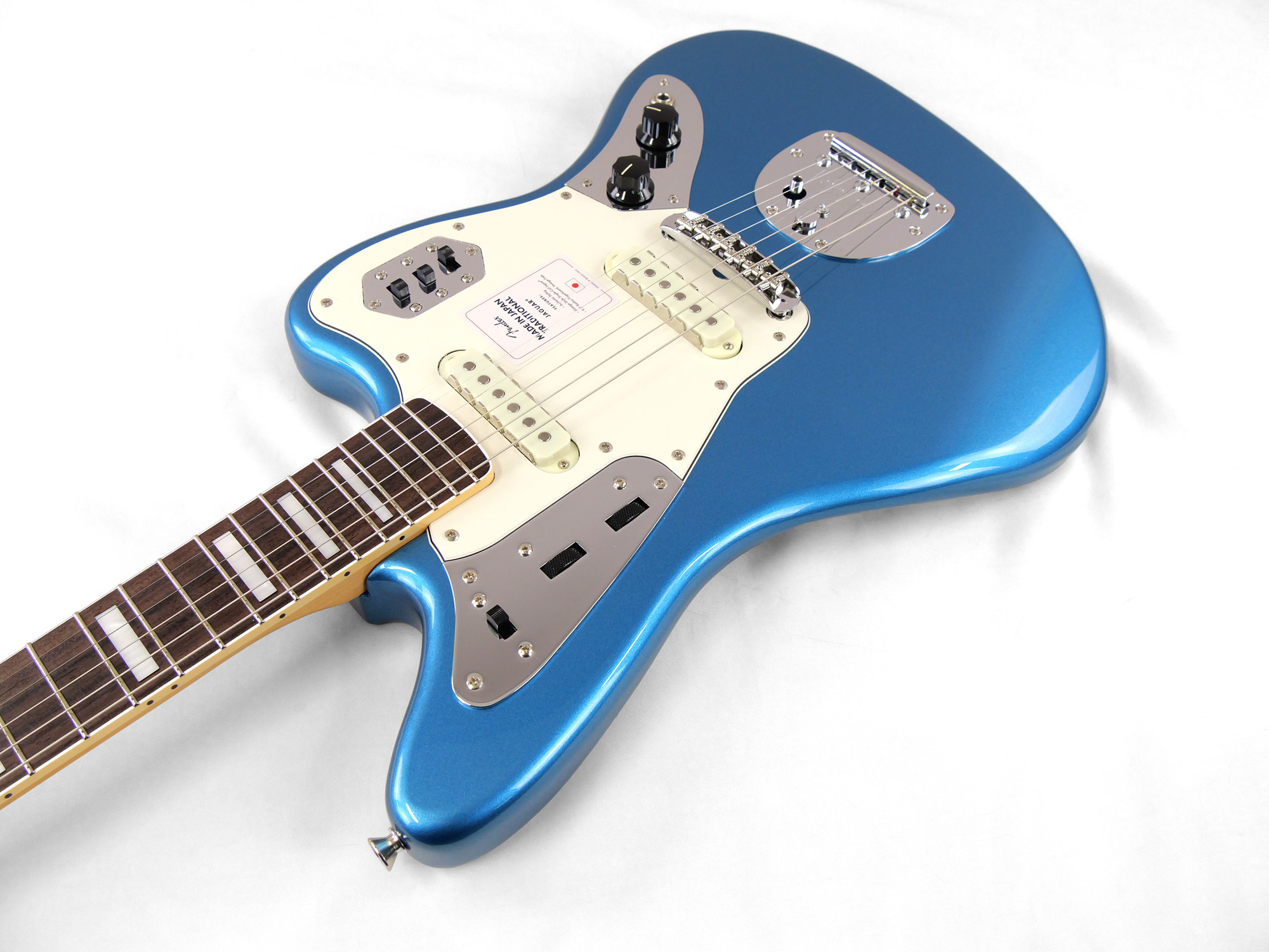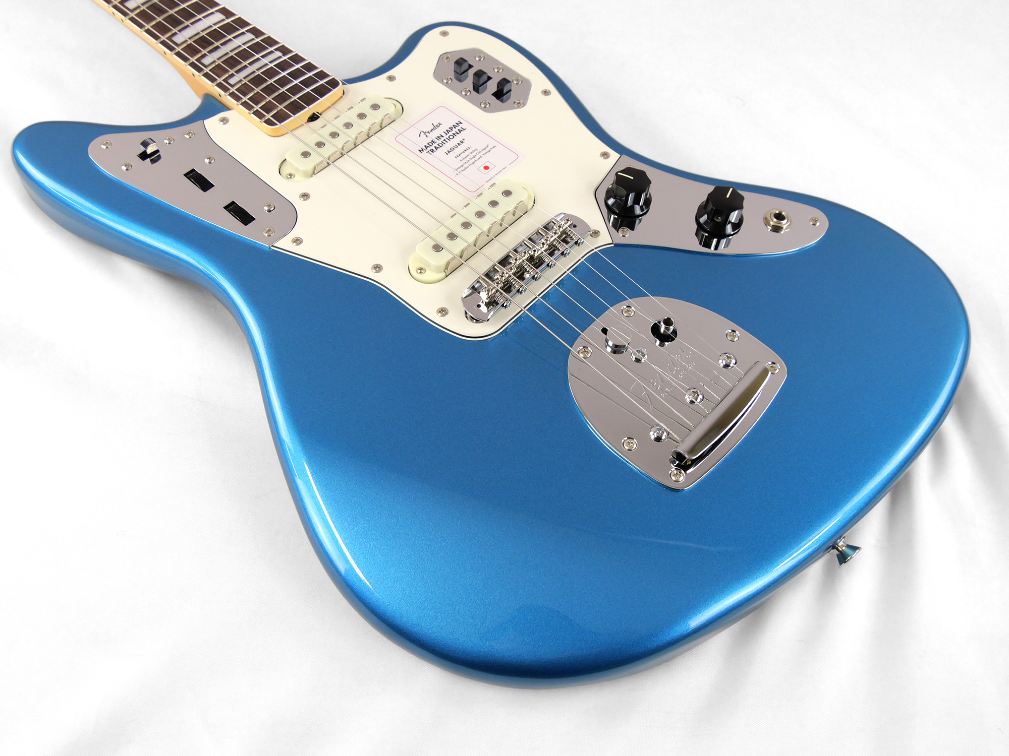 Made in Japan Traditional Late '60s Jaguar®はグロスフィニッシュのバスウッドボディに、ヴィンテージスタイルの22フレットを採用し、9.5インチラジアスの”U” シェイプメイプルネックがTraditionalシリーズならではのクラシカルな演奏製を提供します。フローティングトレモロテイルピース付きの6サドル式ヴィンテージスタイルブリッジ、そしてTraditionalシリーズのために選定されたオリジナルピックアップはリアルで音楽的なヴィンテージトーンを奏でます。 本製品は、60年代の後期から採用されていた、ネックにバインディングが施されブロックのポジションインレイを採用した製品のリイシューです。 堅実なギタークラフトマンシップと、プレイヤーのニーズに柔軟に対応する答えが、本シリーズに反映されています。