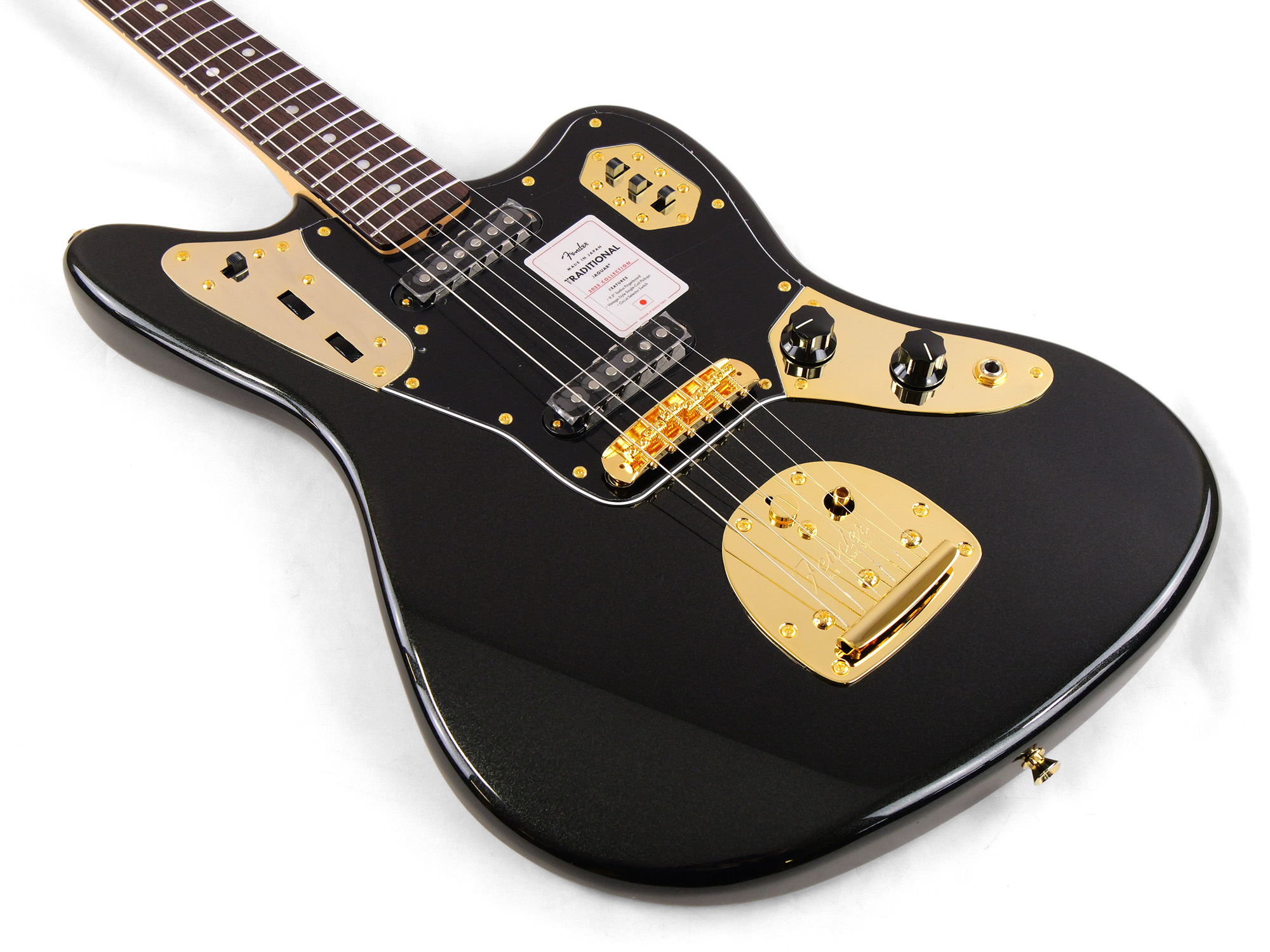Made in Japan Traditional 2025 Collection, 60s Jaguar®は、Made in Japan Traditional 60s Jaguar®をベースに2025年限定のルックスを纏った特別なモデルです。 "Black Pearl"と"White Pearl"は、ボディとヘッドストックにこれらの製品だけの特殊なパール塗装を施しており、ゴールドに統一されたハードウェアと相まって、より一層、優雅で上品な高級感を得ることができます。 "Competition Black / 3-Color Sunburst"と"Competition 3-Color Sunburst / Aged Natural"は、従来の有彩色なコンペティションラインをあしらった製品ではなく、フェンダーの代表的なカラーである3-Color Sunburstをボディデザインに溶け込ませることで、3本ラインの中から、違った角度のフェンダーらしさを感じることができる製品です。