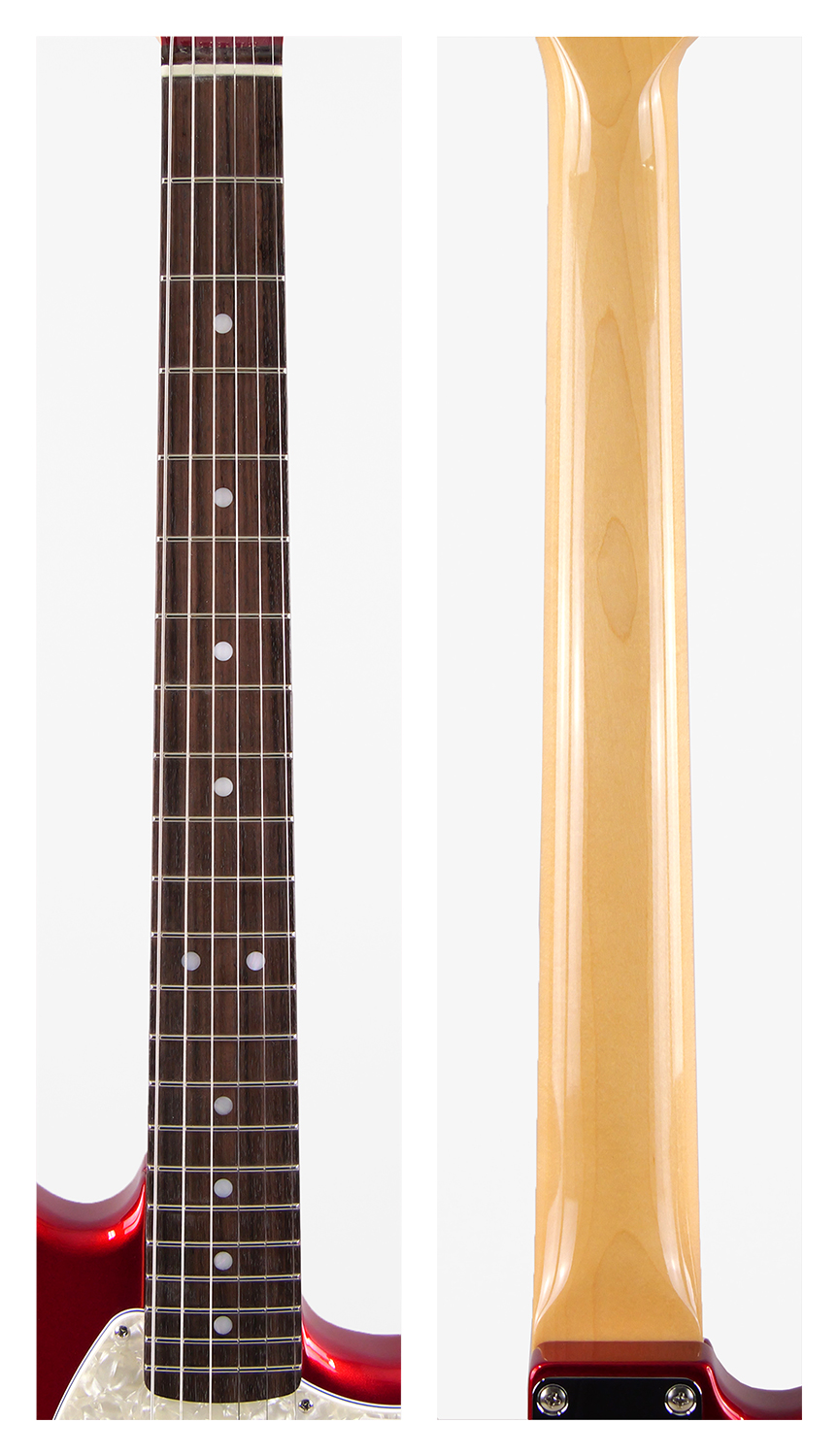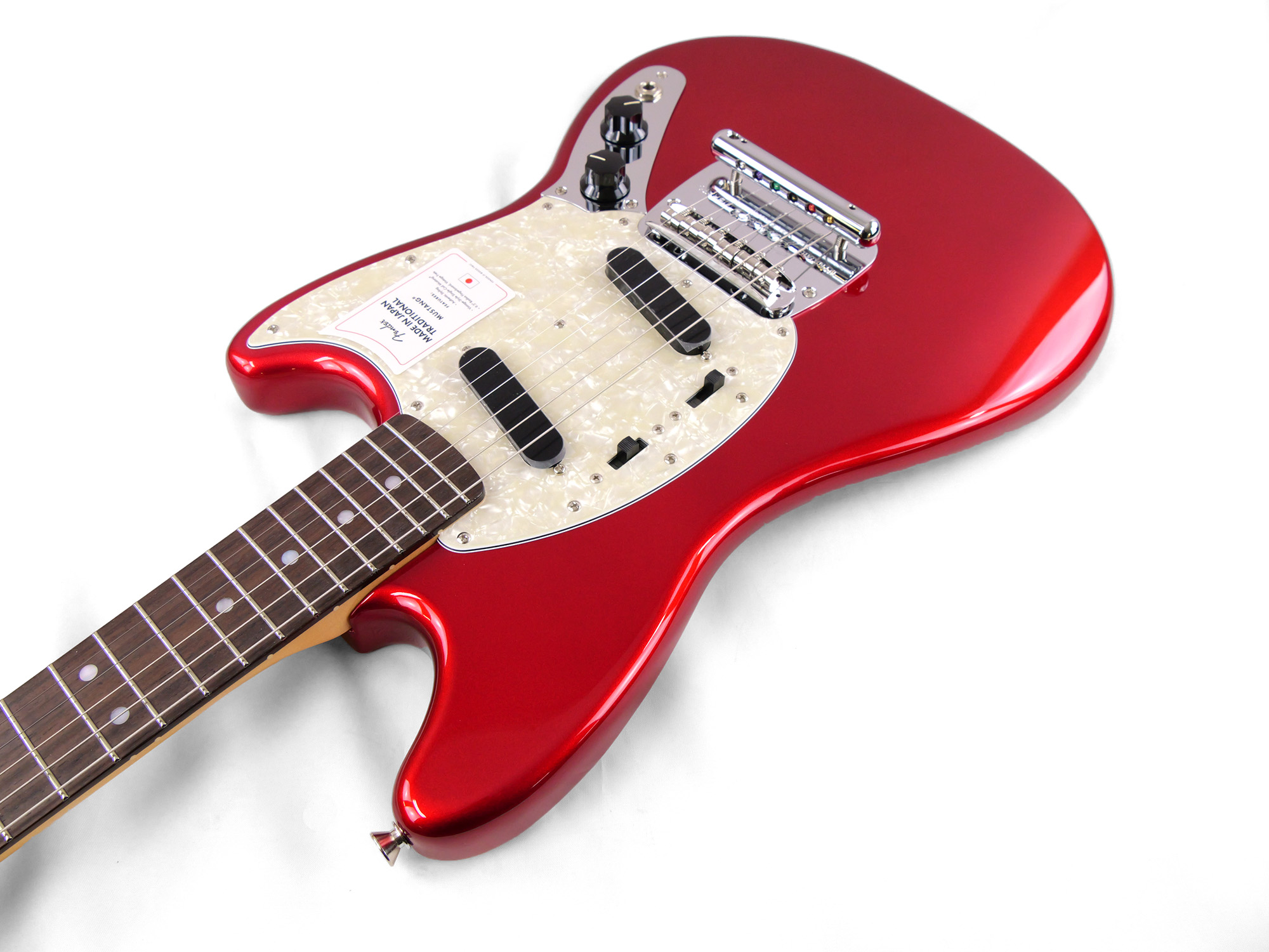 Made in Japan Traditional 70s Mustang®はグロスフィニッシュのバスウッドボディを採用。22本のヴィンテージスタイルフレットを装備した9.5インチラジアスの”U” シェイプメイプルネックがTraditionalシリーズならではのクラシカルな演奏製を提供します。ダイナミックヴィブラートテイルピース付きのフローティングブリッジ、そしてTraditionalシリーズのために選定されたオリジナルピックアップはリアルで音楽的なヴィンテージトーンを奏でます。堅実なギタークラフトマンシップと、プレイヤーのニーズに柔軟に対応する答えが、本シリーズに反映されています。