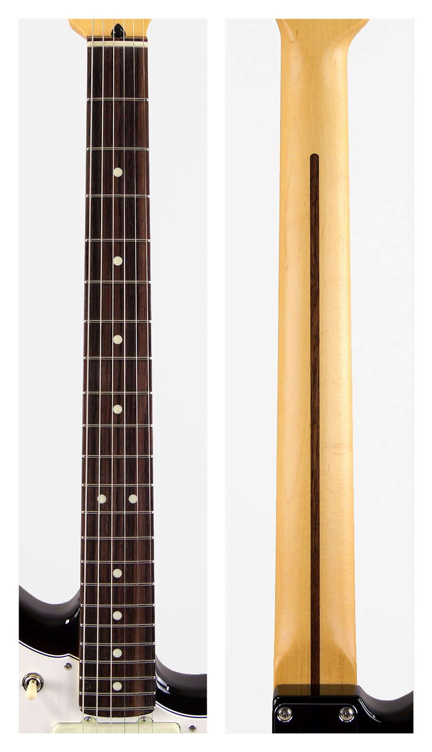 ヴィンテージロッキングチューナー、サテンフィニッシュのネック、Modern "C"シェイプに9.5インチラジアスの指板とナロートールフレットがスムーズなプレイヤビリティを提供します。