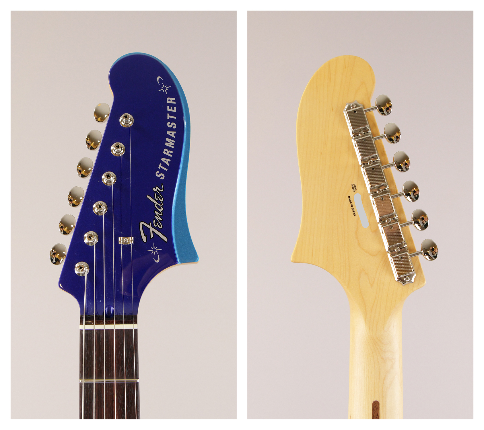 Made in Japan Limited Starmasterは、フェンダーが今まで築いてきた数々のネックシェイプとボディシェイプの中から、70年代に登場した、オフセットシェイプでセミホロウ仕様のボディが特徴なStarcaster®がもつ独特なヘッドシェイプと、昨今さらに人気が高まっているJazzmaster®のボディを融合させた、新しいデザインのモデルです。