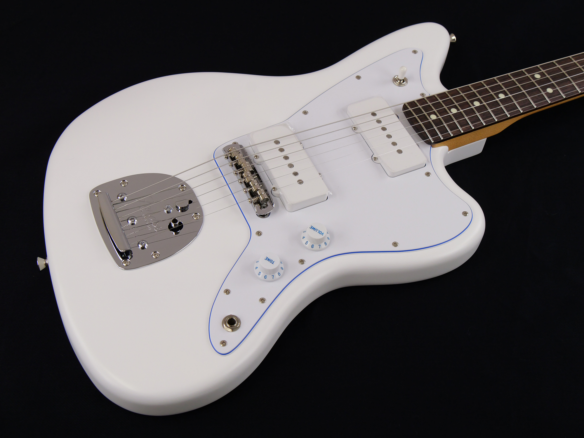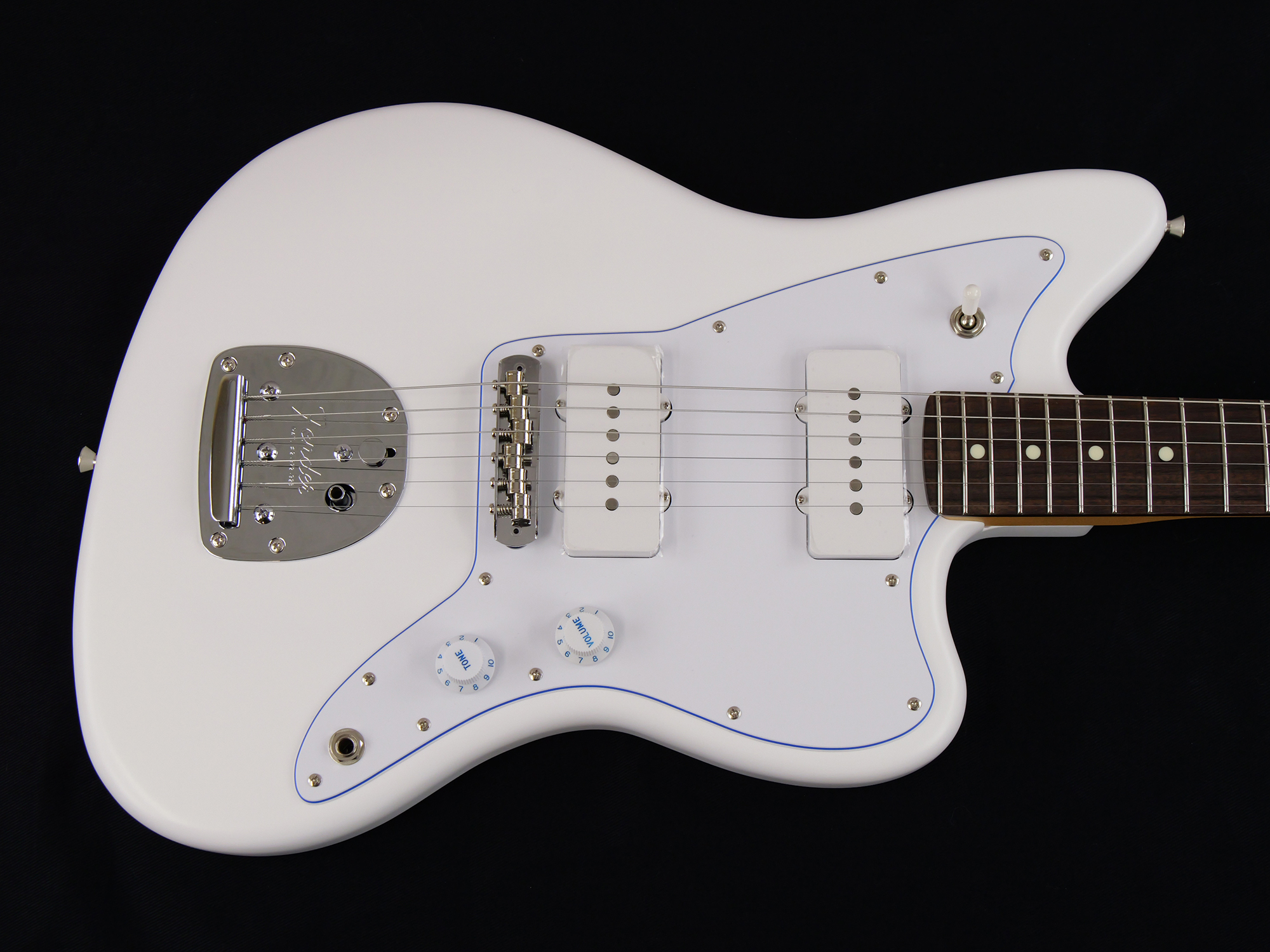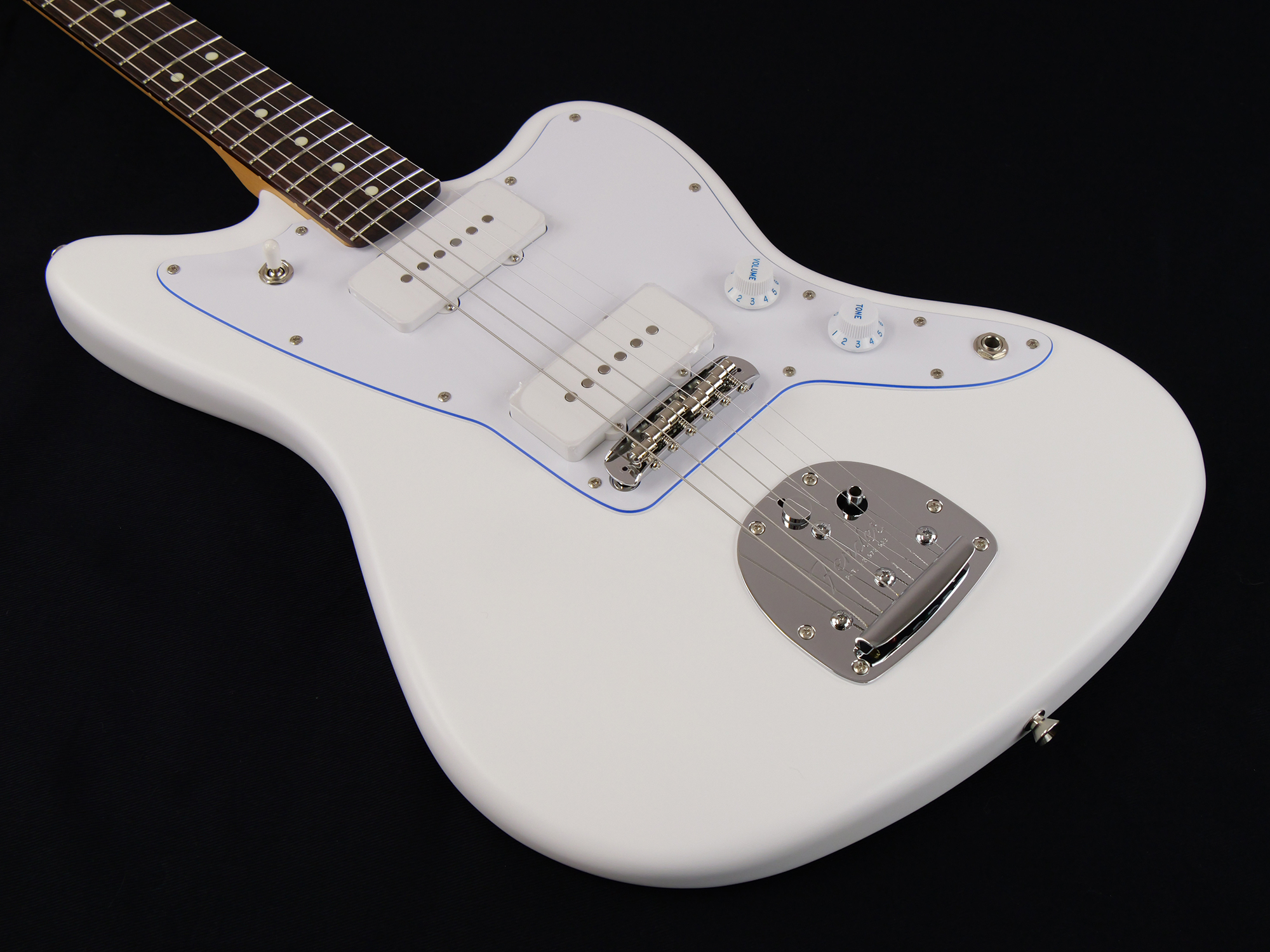 Made in Japan Limited Hybrid II Jazzmaster®, Blancは、フランス語で白を表す"Blanc"をモデル名に採用した、白と青を基調とした純白で爽やかなルックスの製品です。