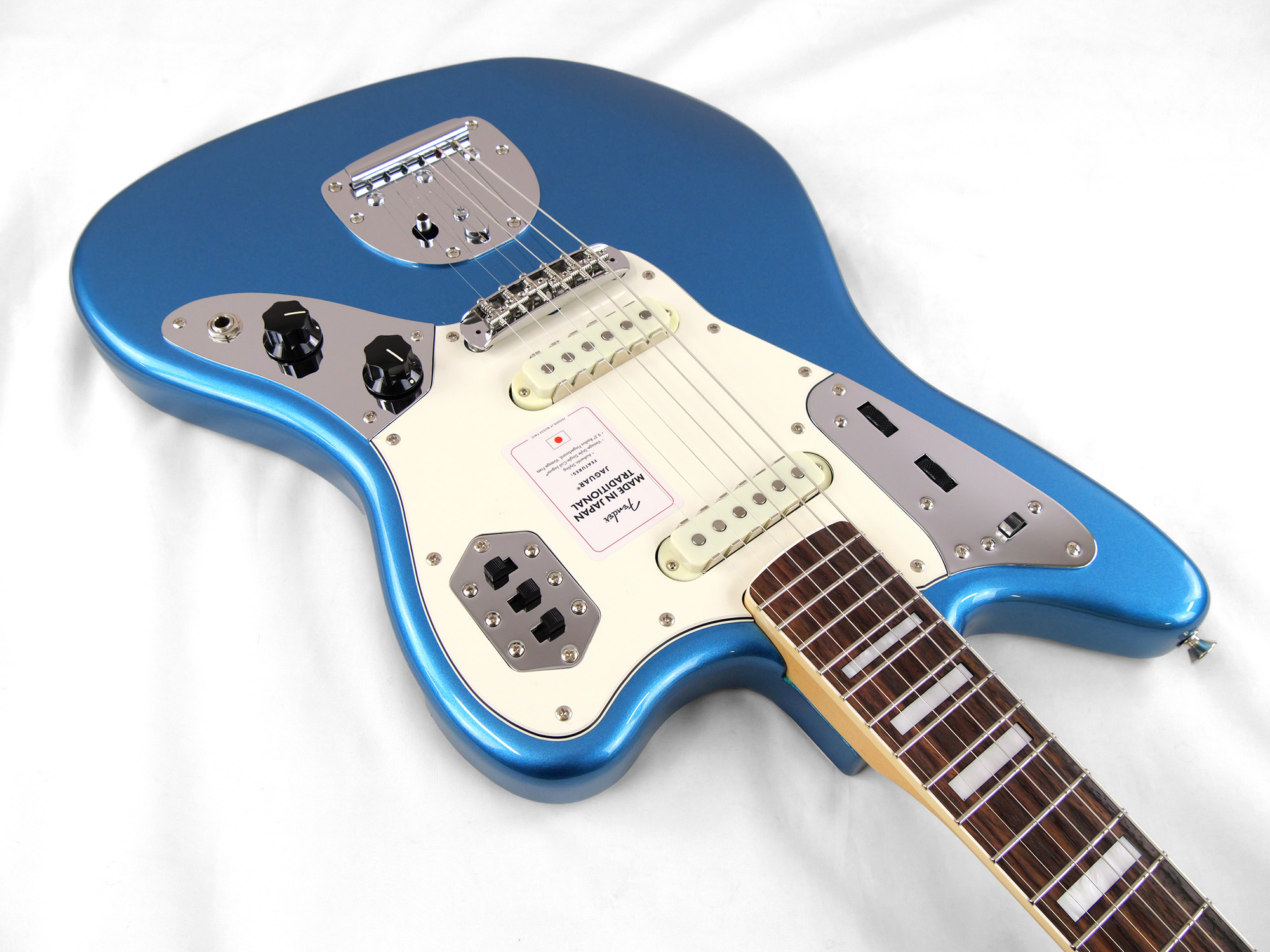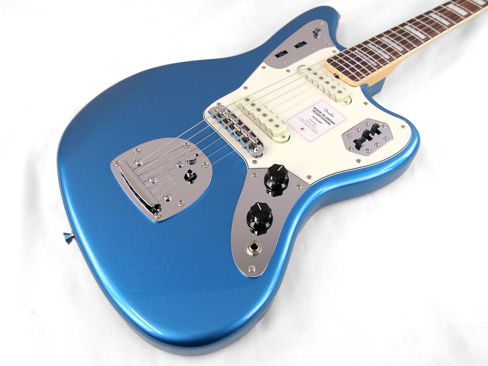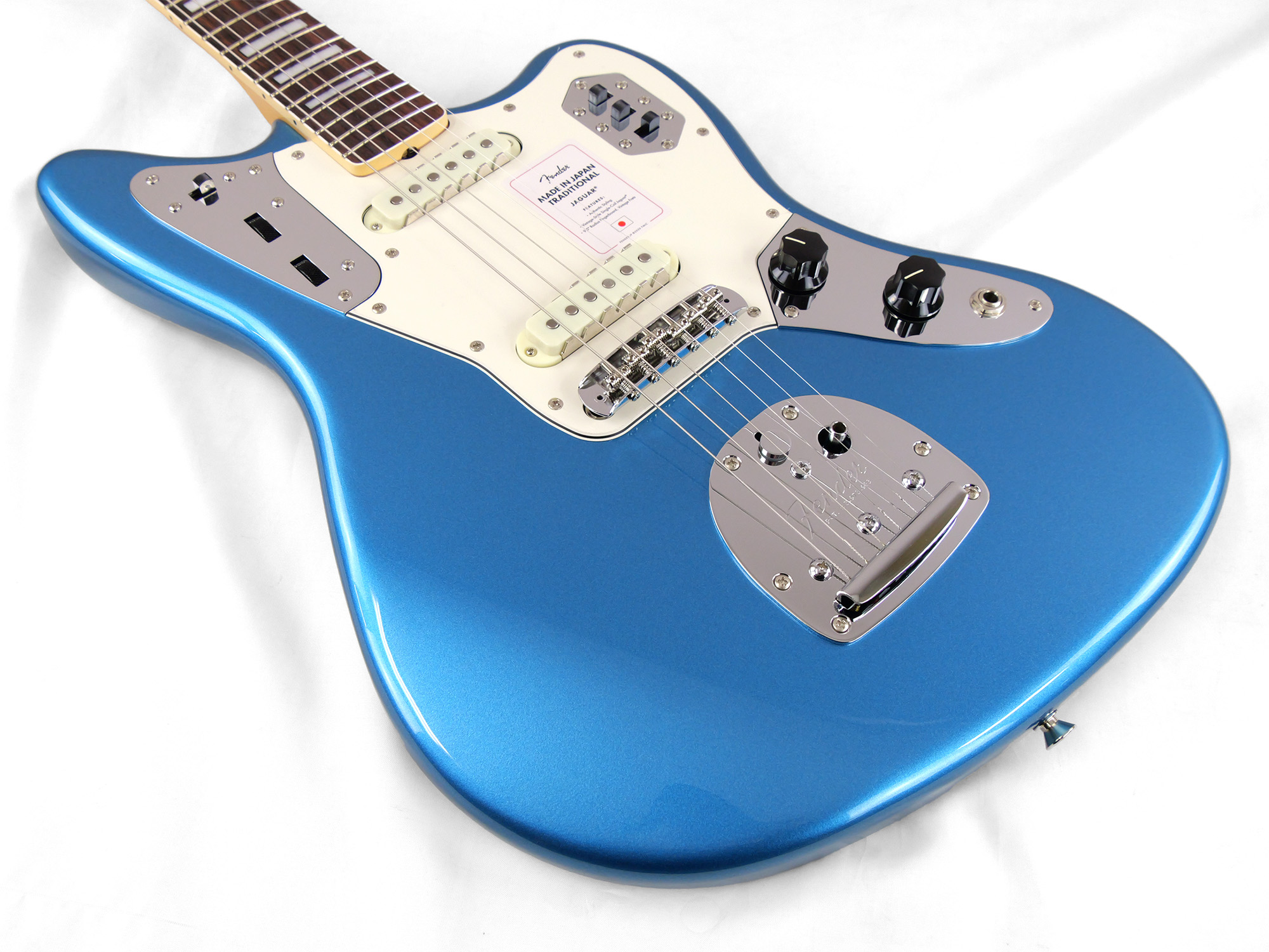 Made in Japan Traditional Late '60s Jaguar®はグロスフィニッシュのバスウッドボディに、ヴィンテージスタイルの22フレットを採用し、9.5インチラジアスの”U” シェイプメイプルネックがTraditionalシリーズならではのクラシカルな演奏製を提供します。フローティングトレモロテイルピース付きの6サドル式ヴィンテージスタイルブリッジ、そしてTraditionalシリーズのために選定されたオリジナルピックアップはリアルで音楽的なヴィンテージトーンを奏でます。 本製品は、60年代の後期から採用されていた、ネックにバインディングが施されブロックのポジションインレイを採用した製品のリイシューです。 堅実なギタークラフトマンシップと、プレイヤーのニーズに柔軟に対応する答えが、本シリーズに反映されています。