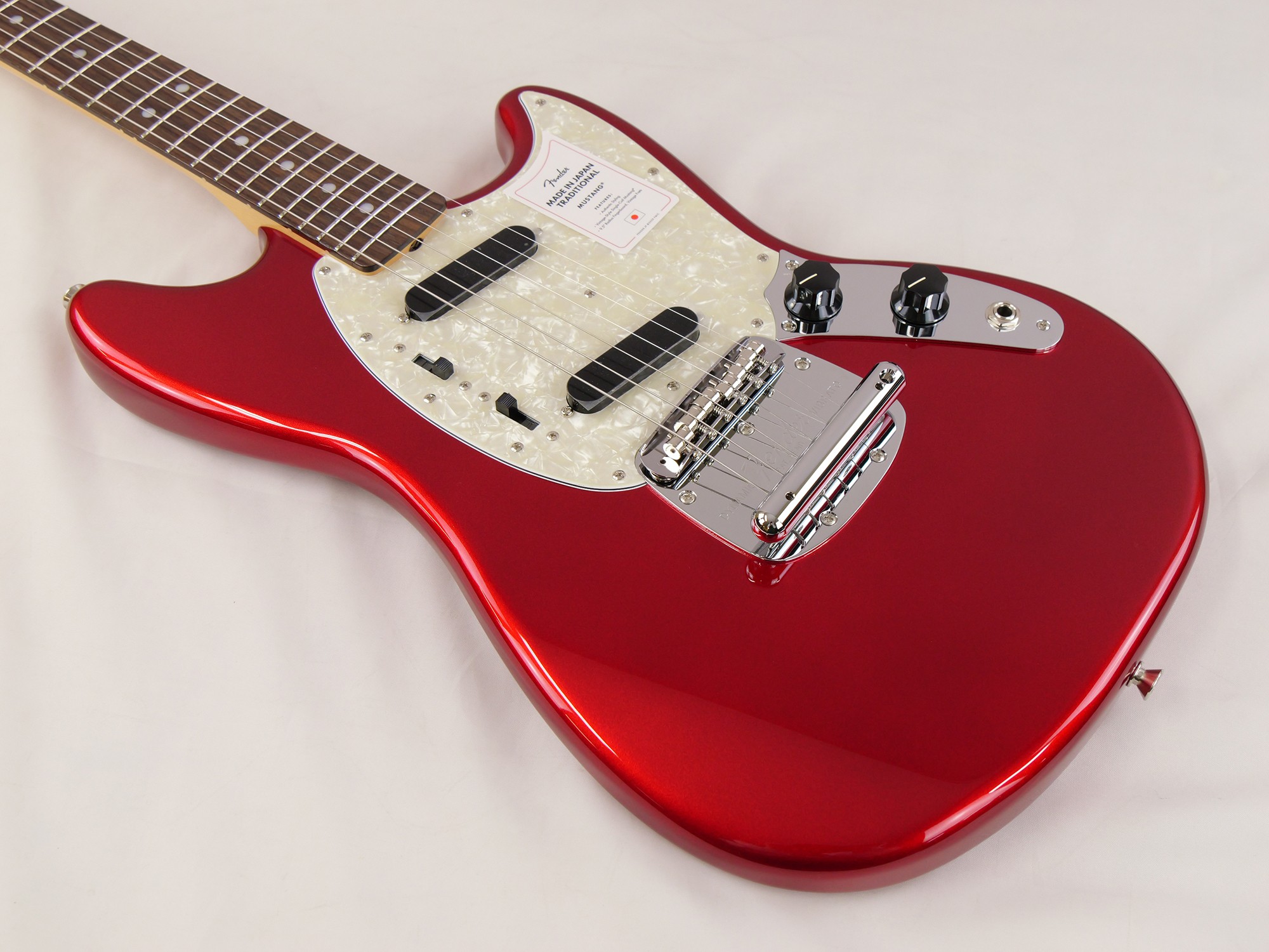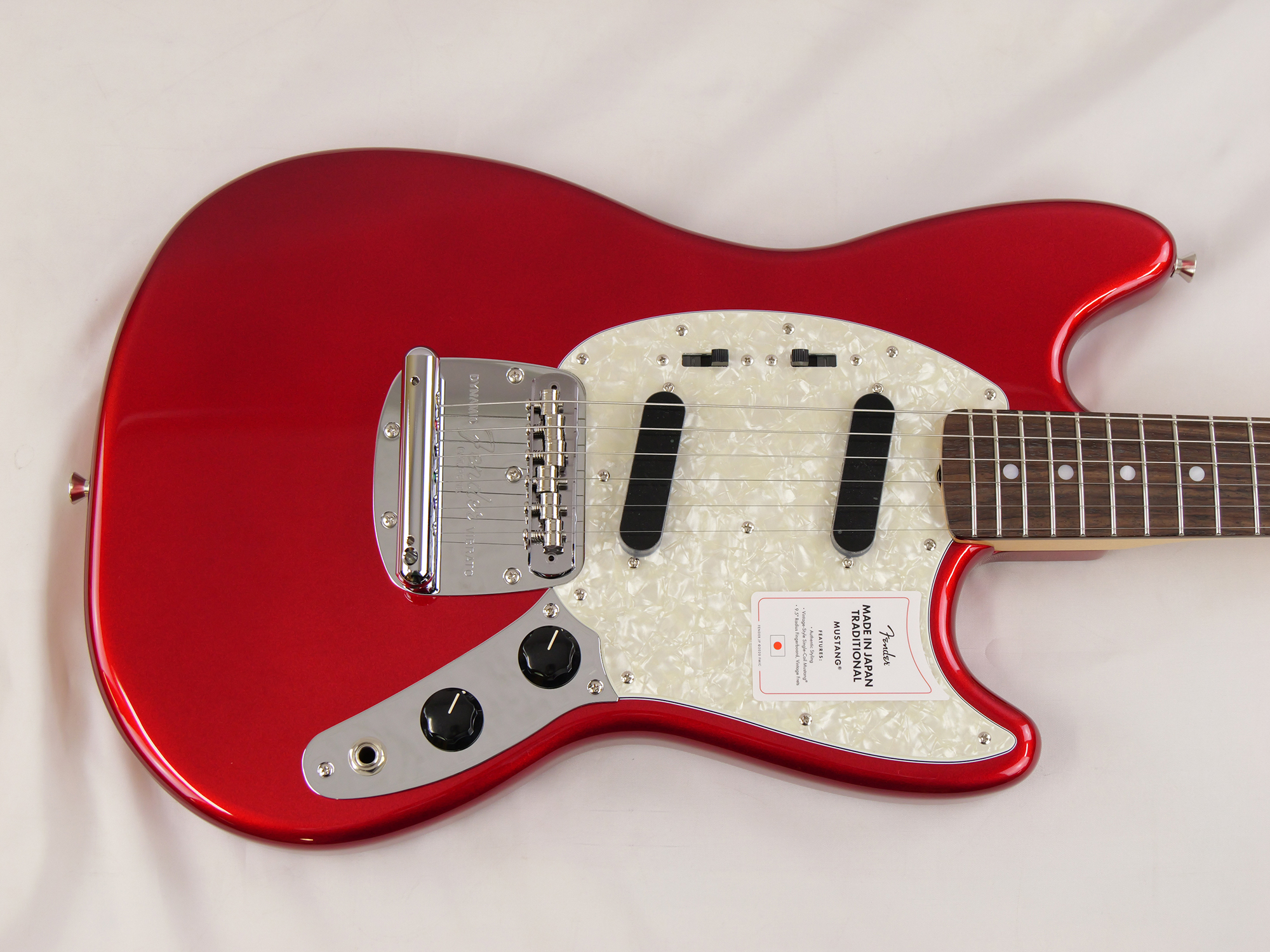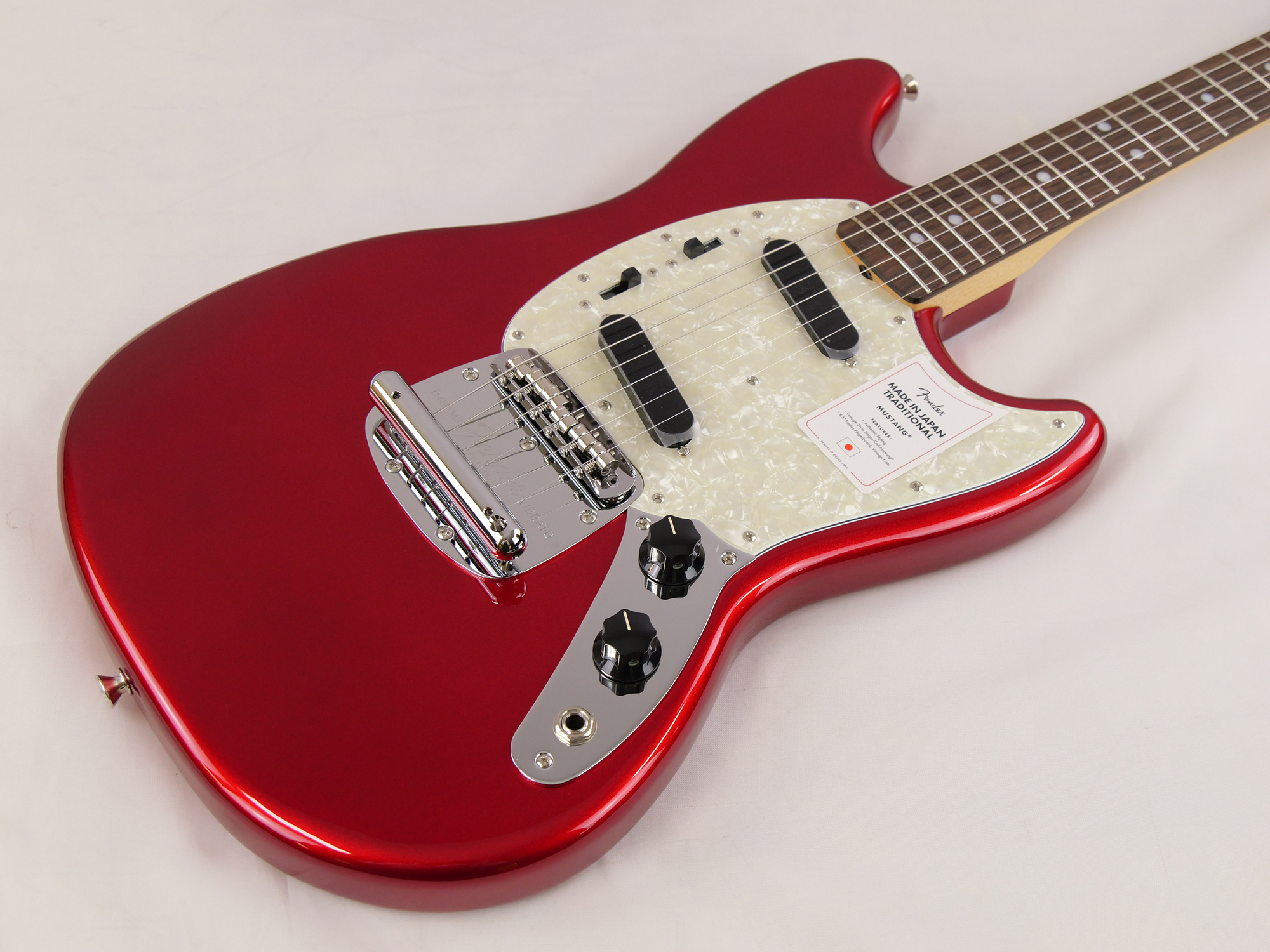 Made in Japan Traditional 70s Mustang®はグロスフィニッシュのバスウッドボディを採用。22本のヴィンテージスタイルフレットを装備した9.5インチラジアスの”U” シェイプメイプルネックがTraditionalシリーズならではのクラシカルな演奏製を提供します。ダイナミックヴィブラートテイルピース付きのフローティングブリッジ、そしてTraditionalシリーズのために選定されたオリジナルピックアップはリアルで音楽的なヴィンテージトーンを奏でます。堅実なギタークラフトマンシップと、プレイヤーのニーズに柔軟に対応する答えが、本シリーズに反映されています。