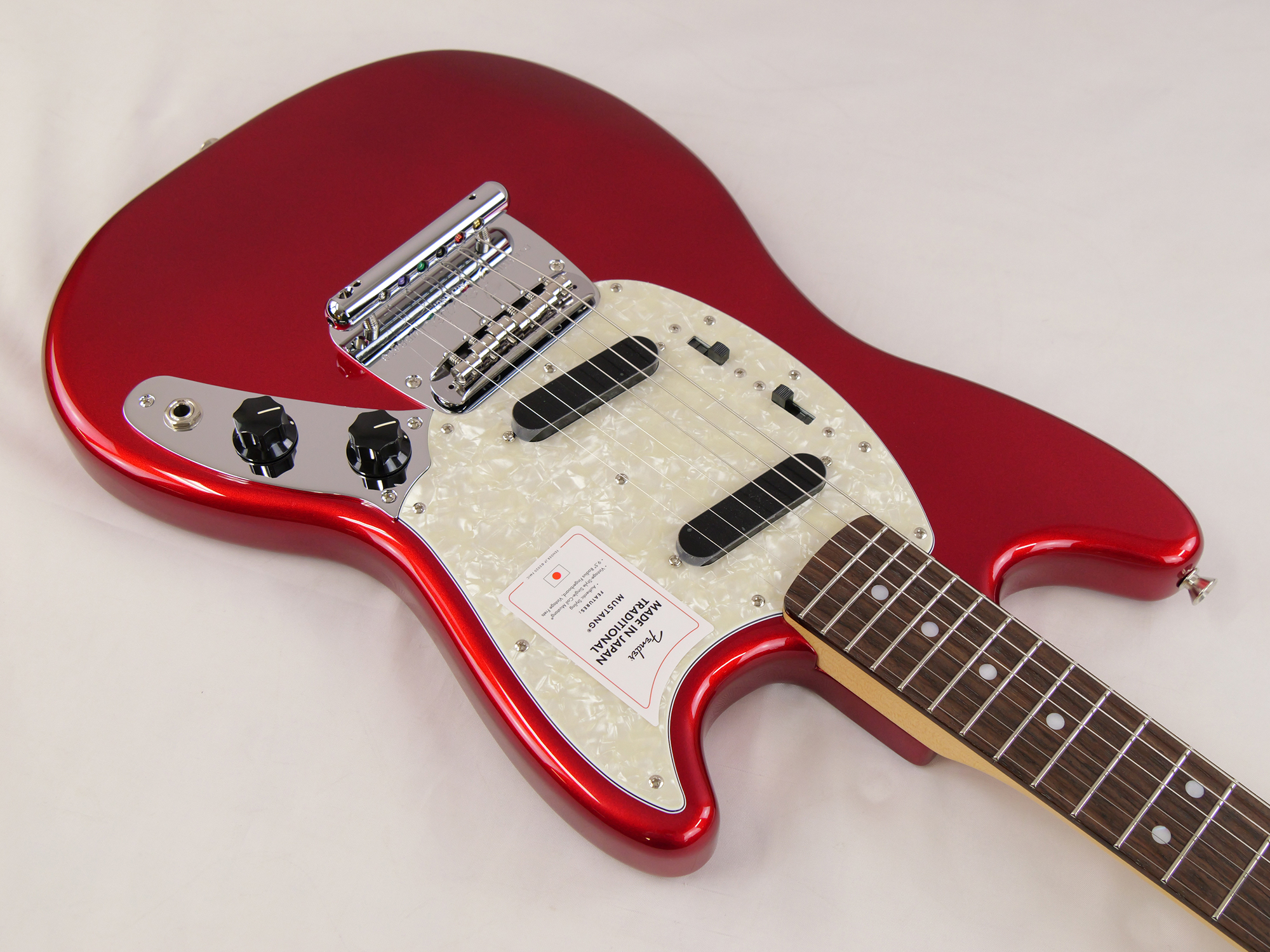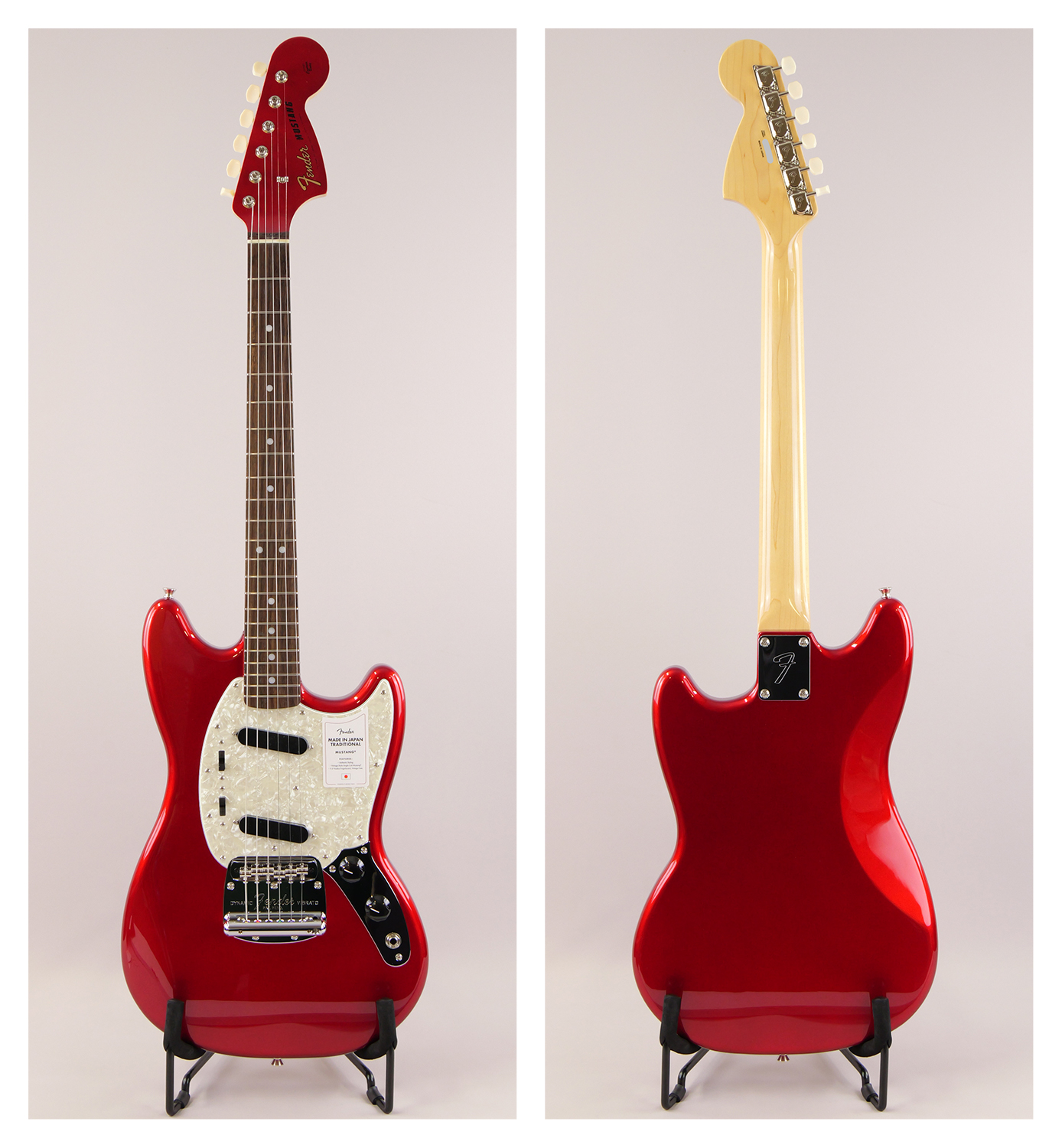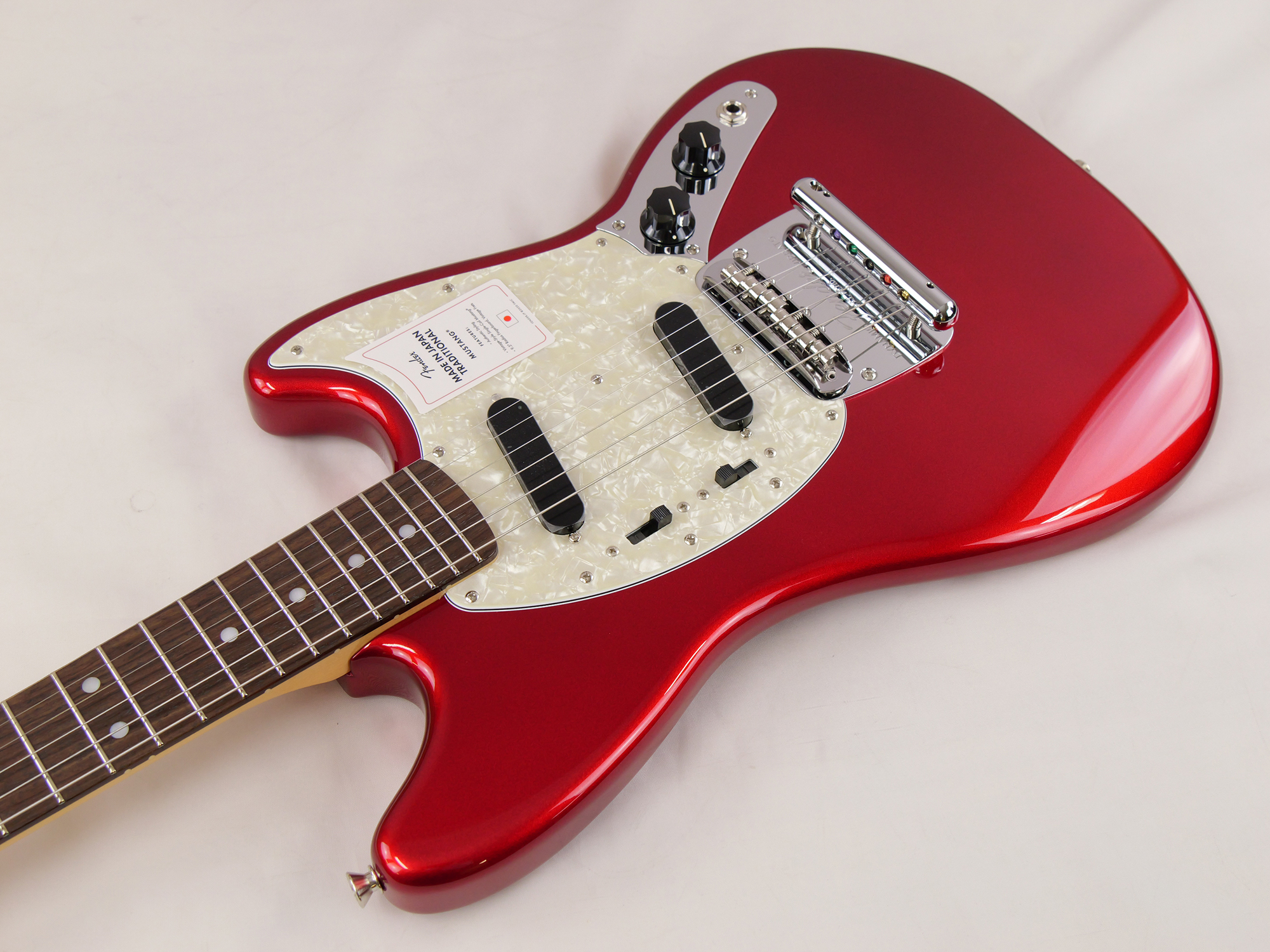 Made in Japan Traditional 70s Mustang®はグロスフィニッシュのバスウッドボディを採用。22本のヴィンテージスタイルフレットを装備した9.5インチラジアスの”U” シェイプメイプルネックがTraditionalシリーズならではのクラシカルな演奏製を提供します。ダイナミックヴィブラートテイルピース付きのフローティングブリッジ、そしてTraditionalシリーズのために選定されたオリジナルピックアップはリアルで音楽的なヴィンテージトーンを奏でます。堅実なギタークラフトマンシップと、プレイヤーのニーズに柔軟に対応する答えが、本シリーズに反映されています。