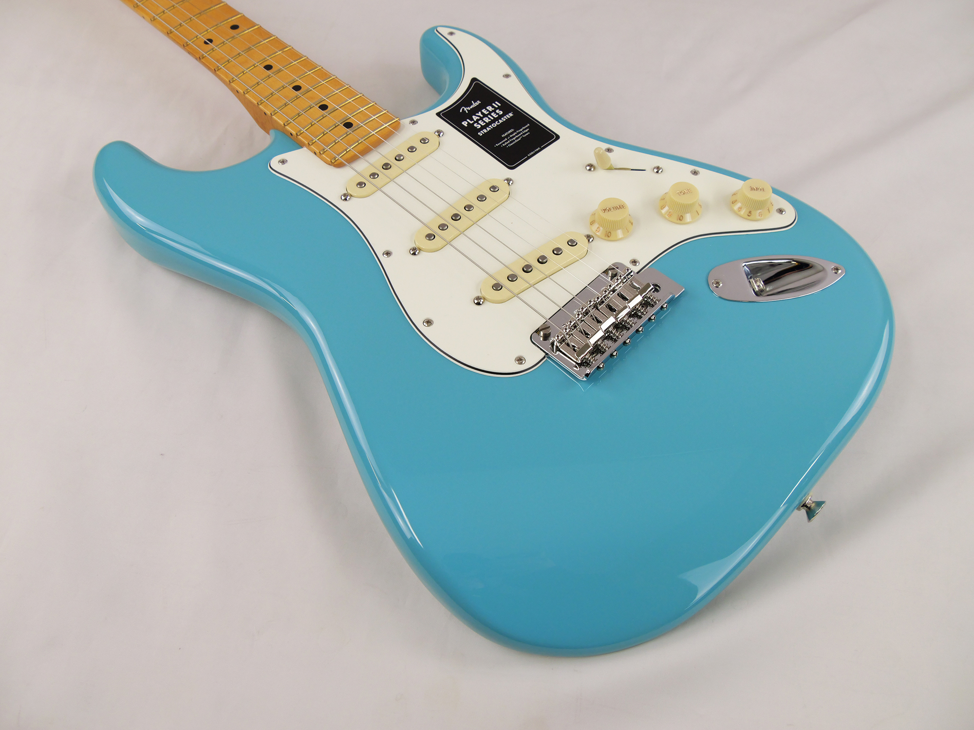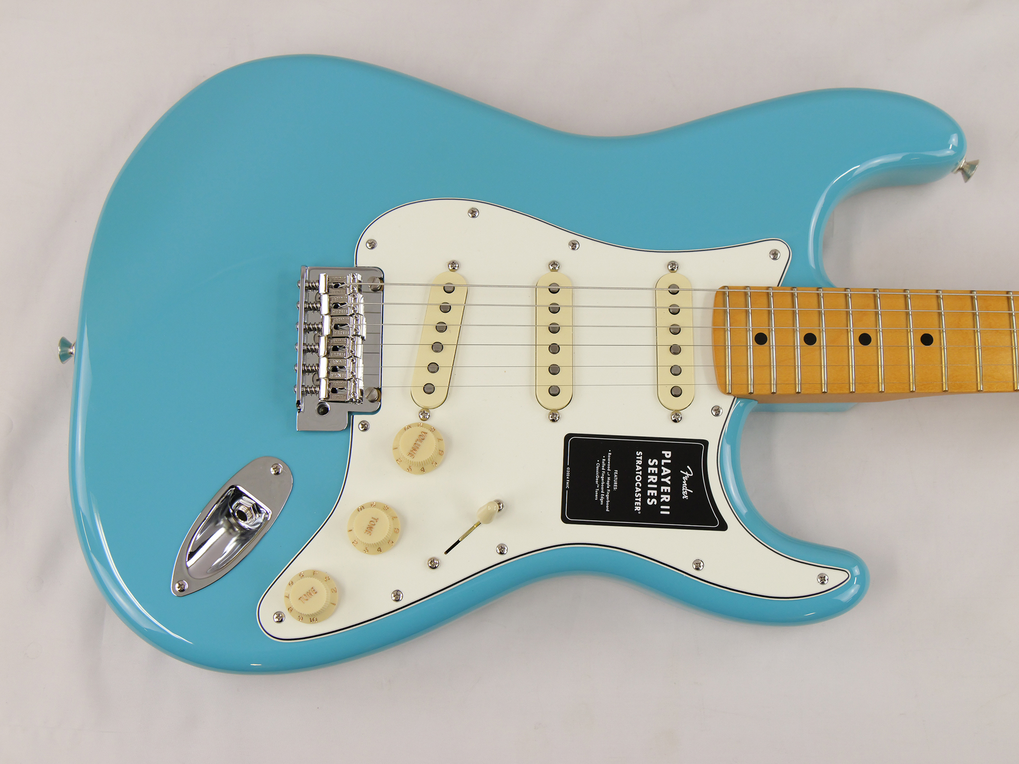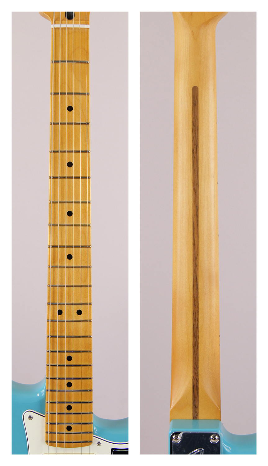 Player II Stratocaster®は、時代を超越したフェンダーの魅力を放ちながらも、その中身は現代プレイヤー向けにデザインされています。Modern "C"シェイプのネックバックにはシルキーなサテンウレタンフィニッシュが施されており、丁寧にロールオフされた指板エッジと22本のミディアムジャンボフレットを採用した9.5インチラジアスのスラブローズウッドまたはメイプル指板が、ネック全長にわたり快適なプレイアビリティを提供します。