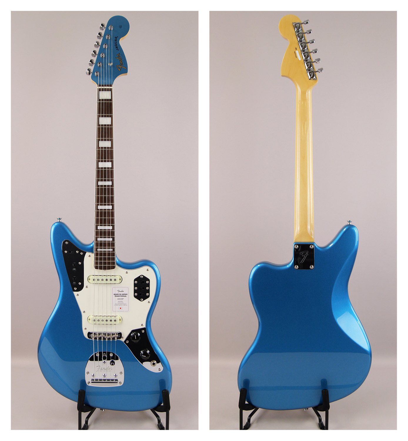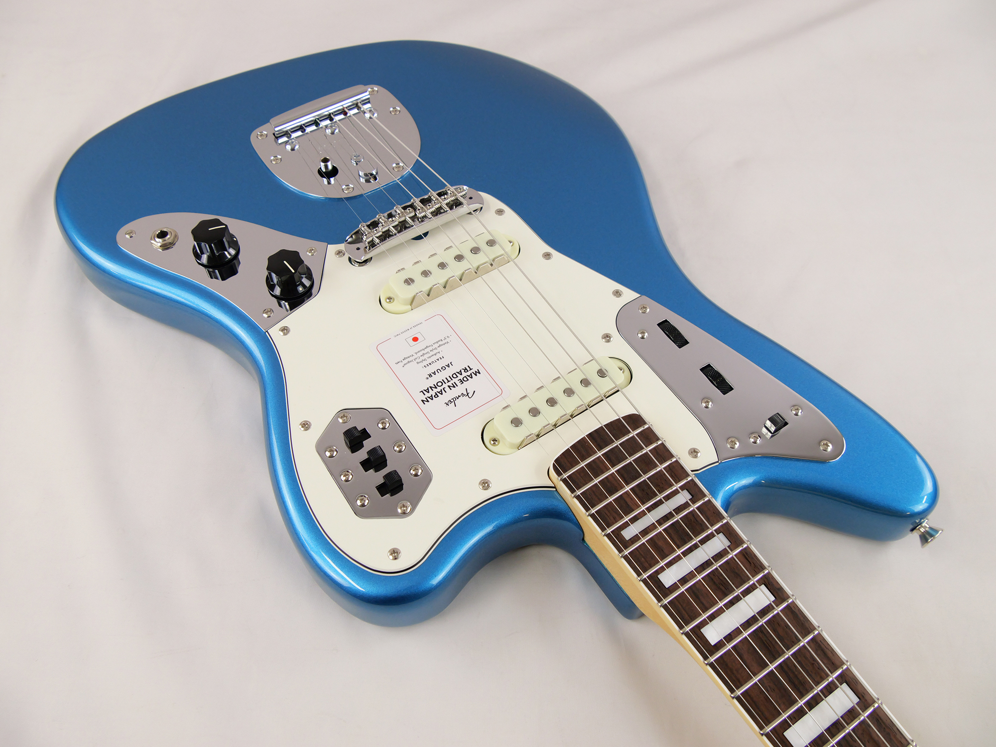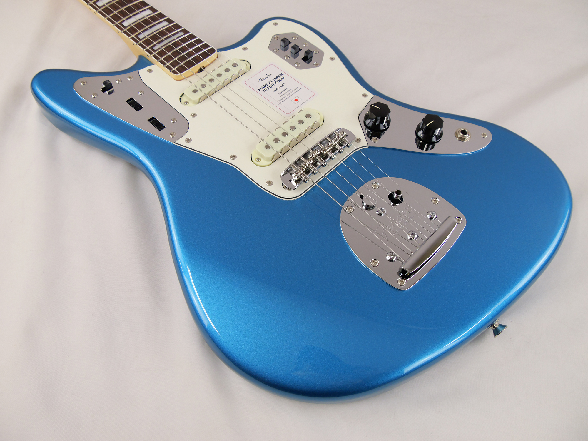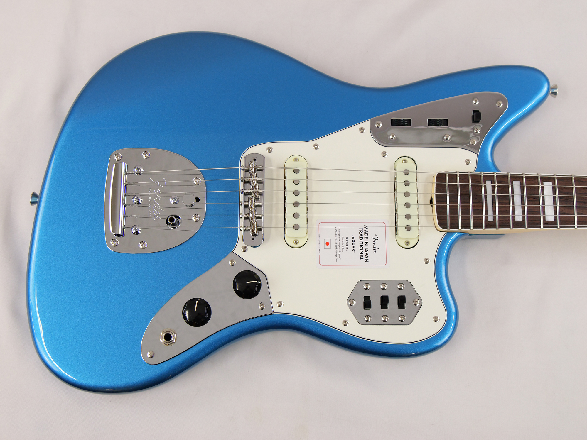 Made in Japan Traditional Late '60s Jaguar®はグロスフィニッシュのバスウッドボディに、ヴィンテージスタイルの22フレットを採用し、9.5インチラジアスの”U” シェイプメイプルネックがTraditionalシリーズならではのクラシカルな演奏製を提供します。フローティングトレモロテイルピース付きの6サドル式ヴィンテージスタイルブリッジ、そしてTraditionalシリーズのために選定されたオリジナルピックアップはリアルで音楽的なヴィンテージトーンを奏でます。 本製品は、60年代の後期から採用されていた、ネックにバインディングが施されブロックのポジションインレイを採用した製品のリイシューです。 堅実なギタークラフトマンシップと、プレイヤーのニーズに柔軟に対応する答えが、本シリーズに反映されています。