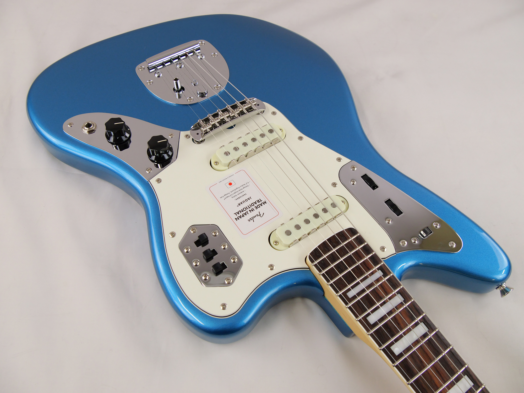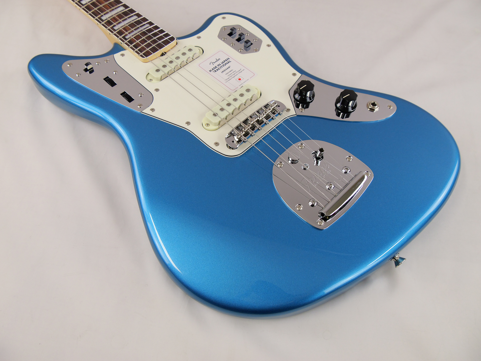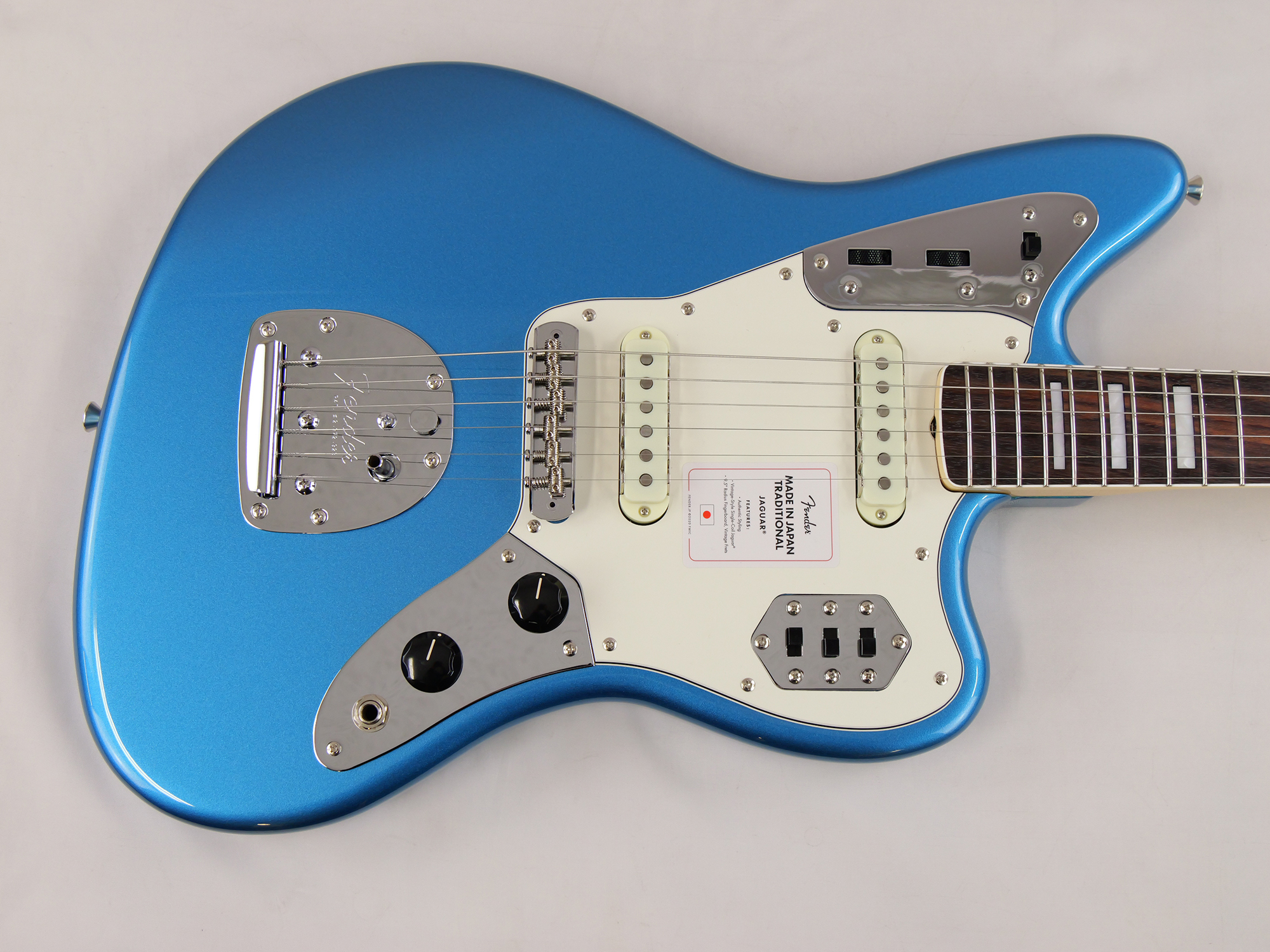 Made in Japan Traditional Late '60s Jaguar®はグロスフィニッシュのバスウッドボディに、ヴィンテージスタイルの22フレットを採用し、9.5インチラジアスの”U” シェイプメイプルネックがTraditionalシリーズならではのクラシカルな演奏製を提供します。フローティングトレモロテイルピース付きの6サドル式ヴィンテージスタイルブリッジ、そしてTraditionalシリーズのために選定されたオリジナルピックアップはリアルで音楽的なヴィンテージトーンを奏でます。 本製品は、60年代の後期から採用されていた、ネックにバインディングが施されブロックのポジションインレイを採用した製品のリイシューです。 堅実なギタークラフトマンシップと、プレイヤーのニーズに柔軟に対応する答えが、本シリーズに反映されています。