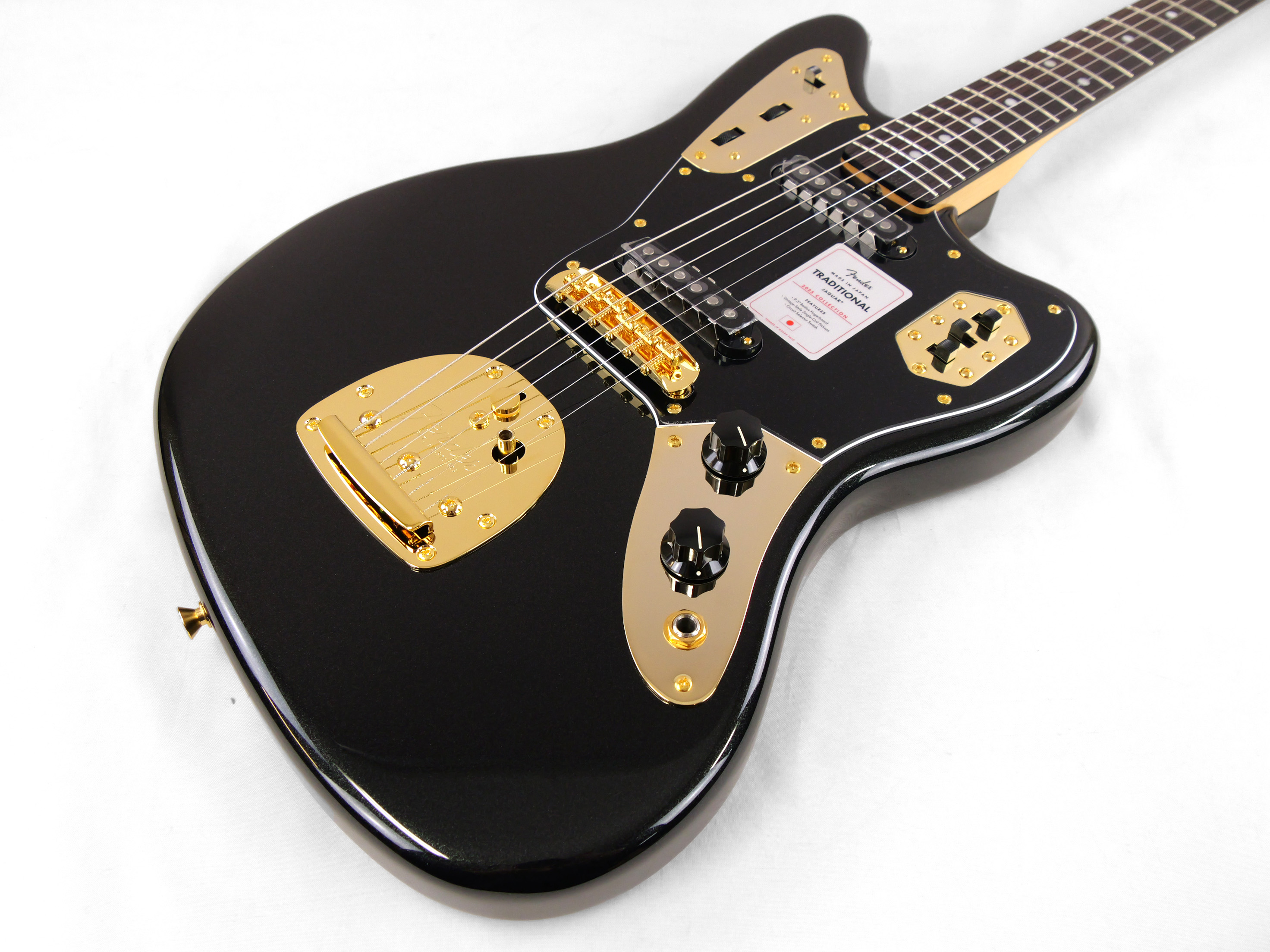 Made in Japan Traditional 2025 Collection, 60s Jaguar®は、Made in Japan Traditional 60s Jaguar®をベースに2025年限定のルックスを纏った特別なモデルです。 "Black Pearl"と"White Pearl"は、ボディとヘッドストックにこれらの製品だけの特殊なパール塗装を施しており、ゴールドに統一されたハードウェアと相まって、より一層、優雅で上品な高級感を得ることができます。 "Competition Black / 3-Color Sunburst"と"Competition 3-Color Sunburst / Aged Natural"は、従来の有彩色なコンペティションラインをあしらった製品ではなく、フェンダーの代表的なカラーである3-Color Sunburstをボディデザインに溶け込ませることで、3本ラインの中から、違った角度のフェンダーらしさを感じることができる製品です。