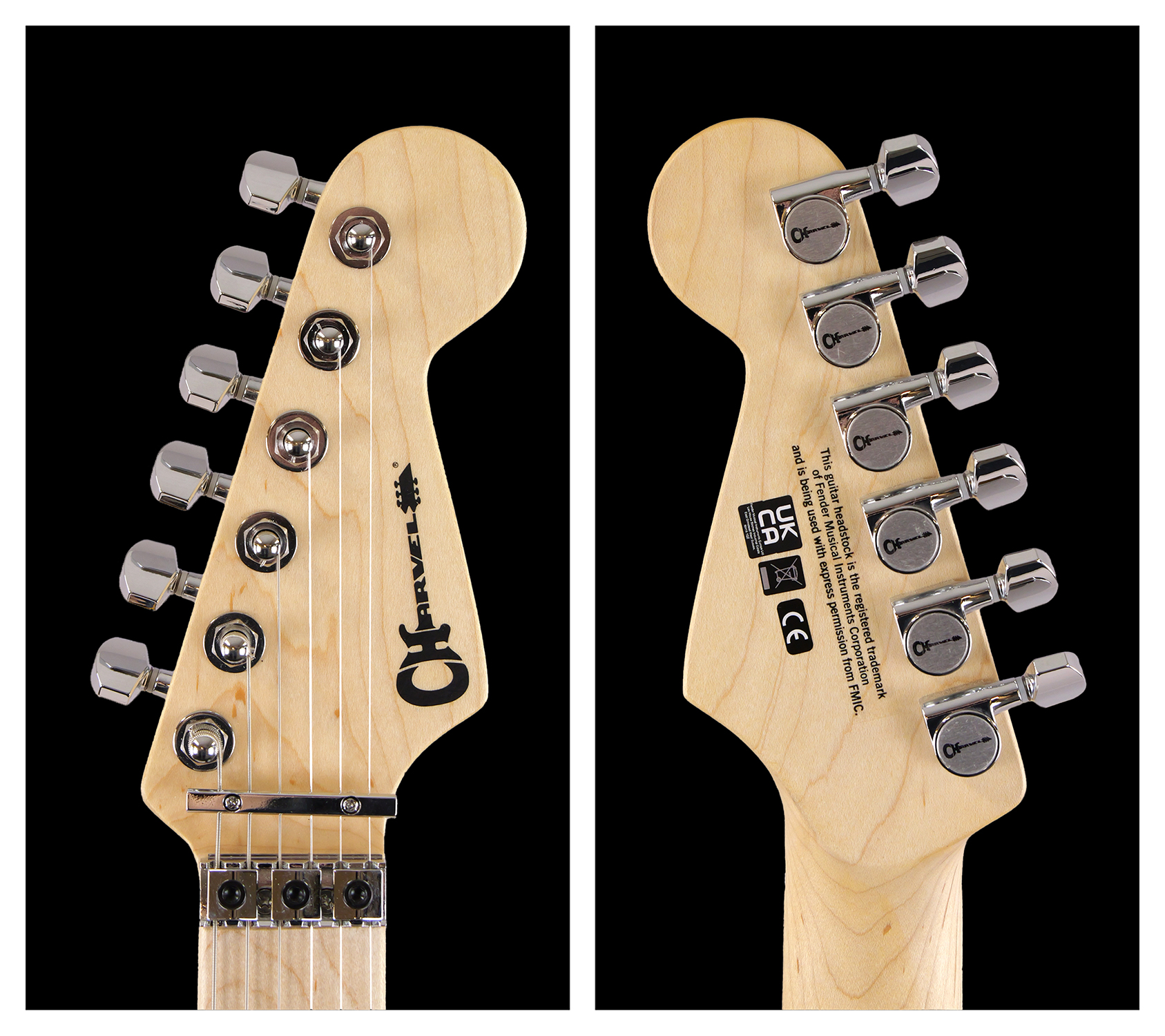コンパウンド・ラジアス(12"-16")を採用したメイプルネックは、ローポジションでのコード弾きからハイポジションでの速弾きまでスムーズなフィンガリングをサポート、リアにはパワフルなSeymour Duncan JB TB-4、センターとフロントには繊細なSSL-6を搭載。エッジの効いたリフから、透明感のあるクリーン、そして太いリードトーンまで、これ一本で完結します。