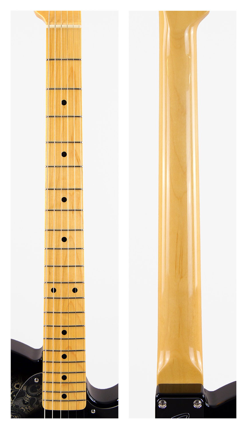 Made in Japan Limited Telecaster® Paisleyは、ペイズリー柄のシートを貼り付けた、グロスフィニッシュのアルダーボディを採用。21本のヴィンテージスタイルフレットを装備した7.25インチラジアスの60s Oval “C”シェイプメイプルネックが、当時を忠実に再現したクラシカルな演奏製を提供します。また外周のピンクバーストの再調色を行い、より深みのあるヴィンテージルックスに仕上げています。