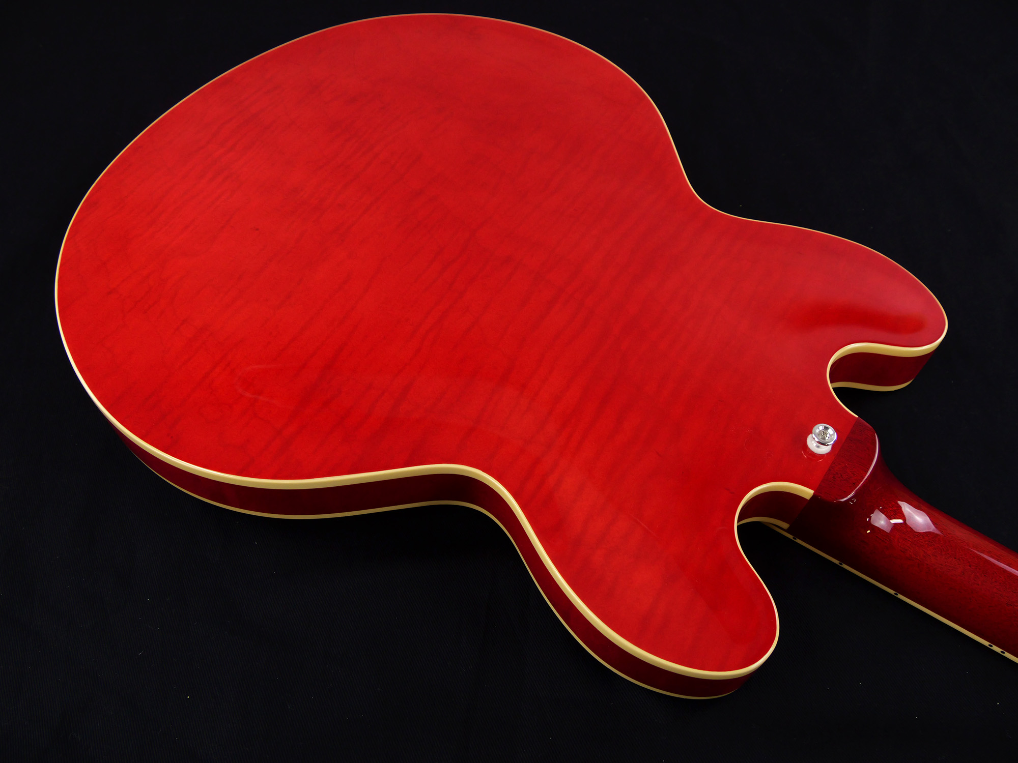 ラッカー塗装、フレイムメイプルトップ、メイプルボディ、1ピースマホガニーネック、採用したES-335 スタイル。