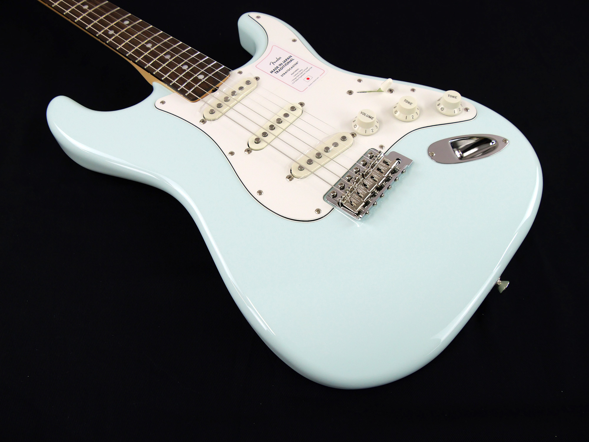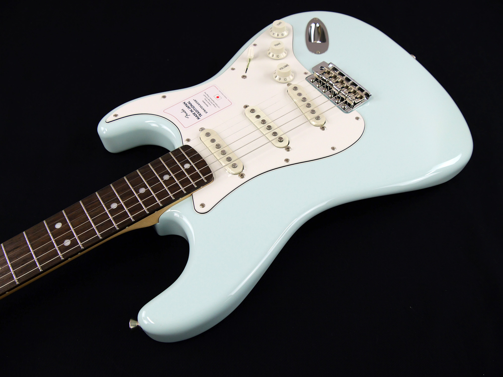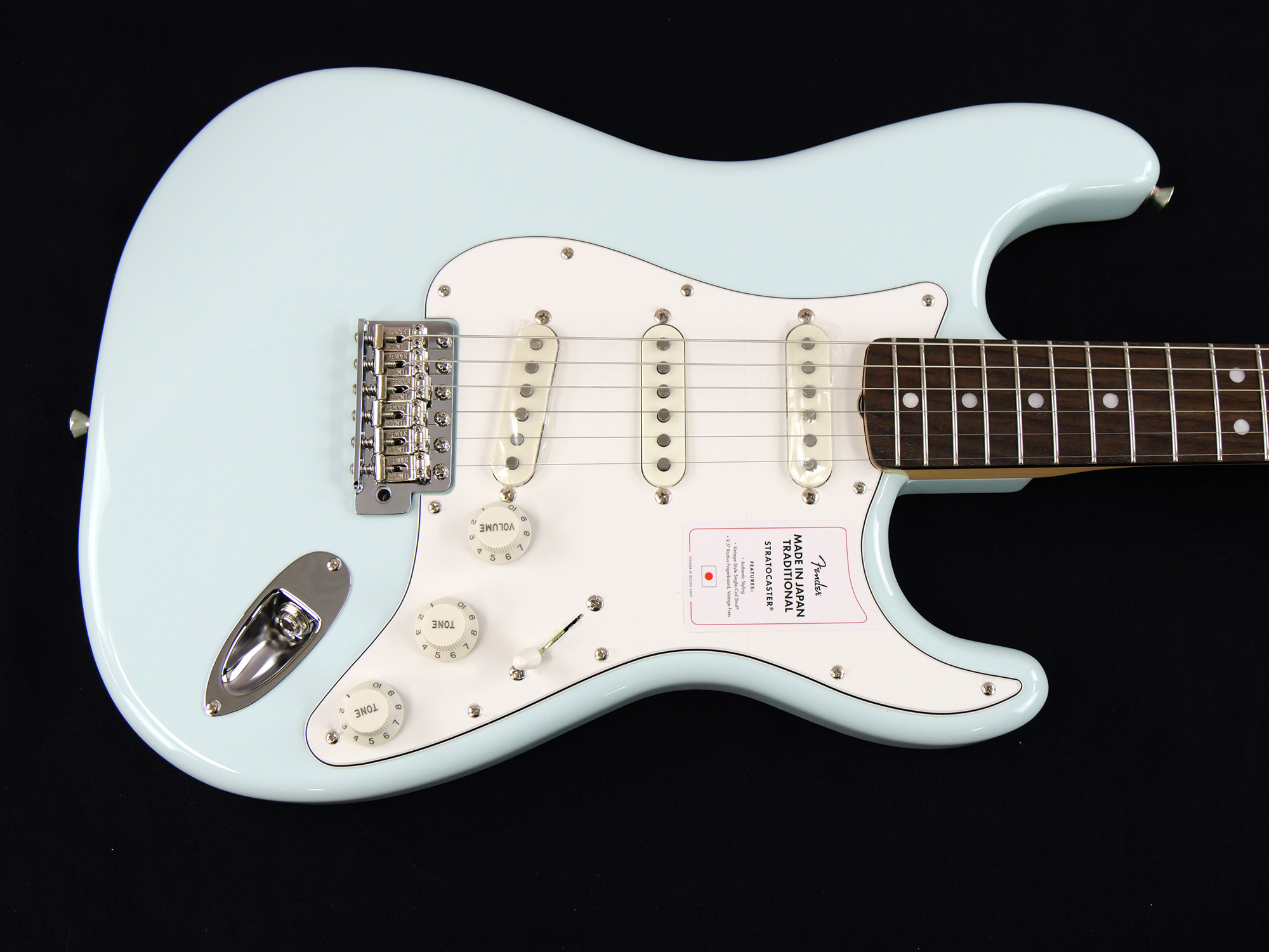 Made in Japan Traditional Late 60s Stratocaster®はグロスフィニッシュのバスウッドボディを採用。21本のヴィンテージスタイルフレットを装備した9.5インチラジアスの”U”シェイプメイプルネックがTraditionalシリーズならではのクラシカルな演奏製を提供します。6サドル式ヴィンテージスタイルSynchronized Tremoloブリッジ、そしてTraditionalシリーズのために選定されたオリジナルピ ックアップはリアルで音楽的なヴィンテージトーンを奏でます。細めに設計されたナット幅は日本のプレイヤーにも弾きやすい仕様となっています。堅実なギタークラフトマンシップと、プレイヤーのニーズに柔軟に対応する答えが、本シリーズに反映されています。