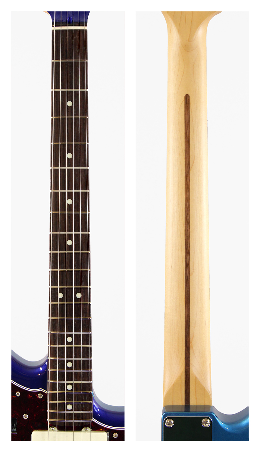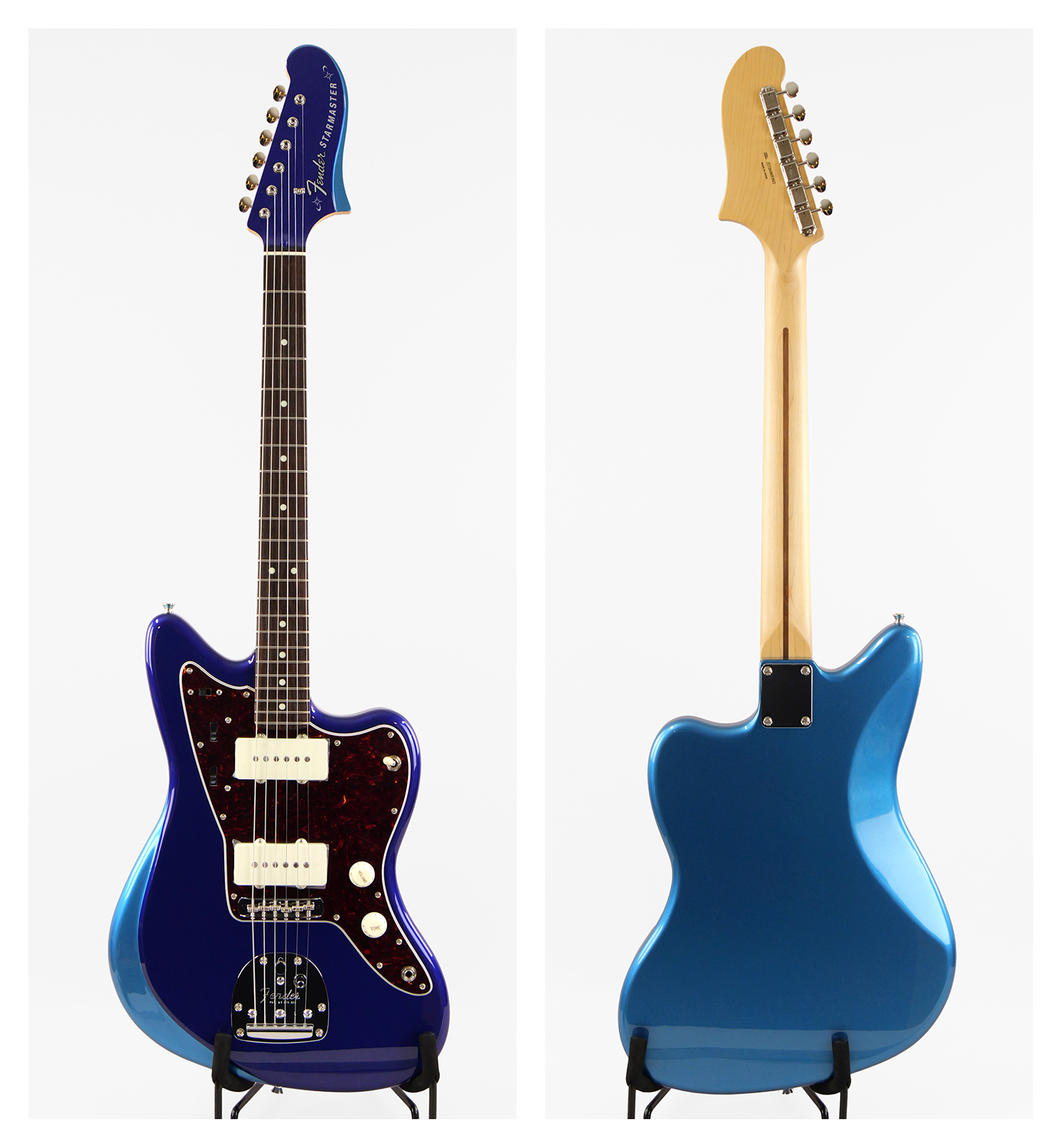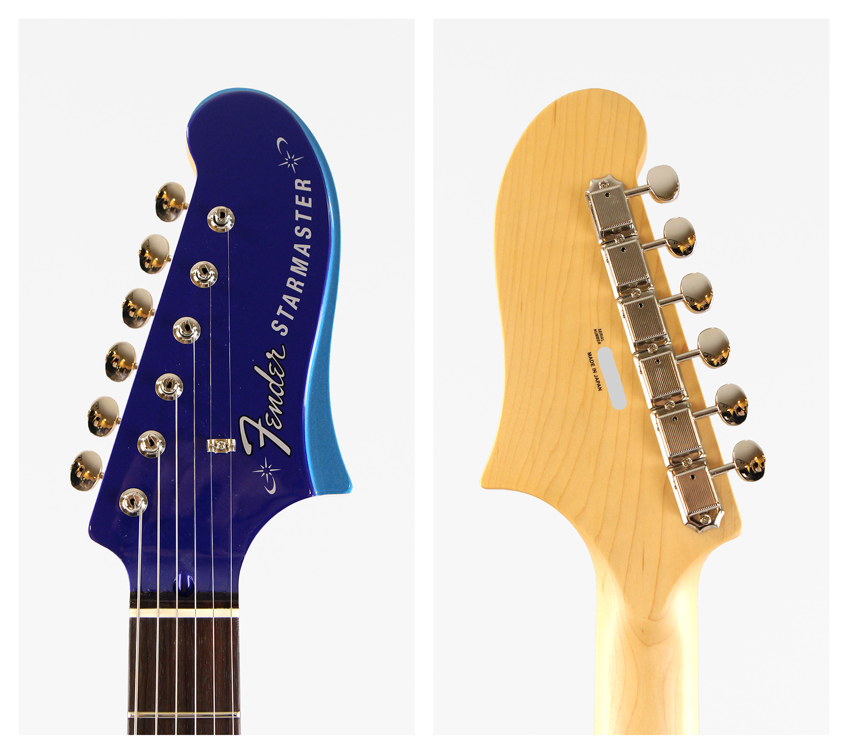 Made in Japan Limited Starmasterは、フェンダーが今まで築いてきた数々のネックシェイプとボディシェイプの中から、70年代に登場した、オフセットシェイプでセミホロウ仕様のボディが特徴なStarcaster®がもつ独特なヘッドシェイプと、昨今さらに人気が高まっているJazzmaster®のボディを融合させた、新しいデザインのモデルです。