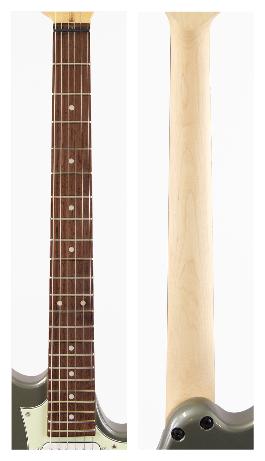 ◇“AZES”のために開発されたシングルコイルピックアップ” Essentials”とハムバッカーピックアップ”Accord”のS-S-H配列。フラットな音響特性で、どの音域もバランスよく聴こえるように設計。