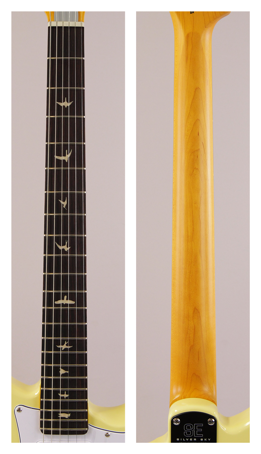 ・ネックは1963/1964年製ヴィンテージギターの形状を意識した【635JM(両年の間という意味で63.5年の635を使用)】仕様。ローズウッド指板、ボルトオンネック、22フレット、25.5インチスケール、そして PRSの特徴であるバード・インレイをサイズダウンしたSmall Birdsを採用。