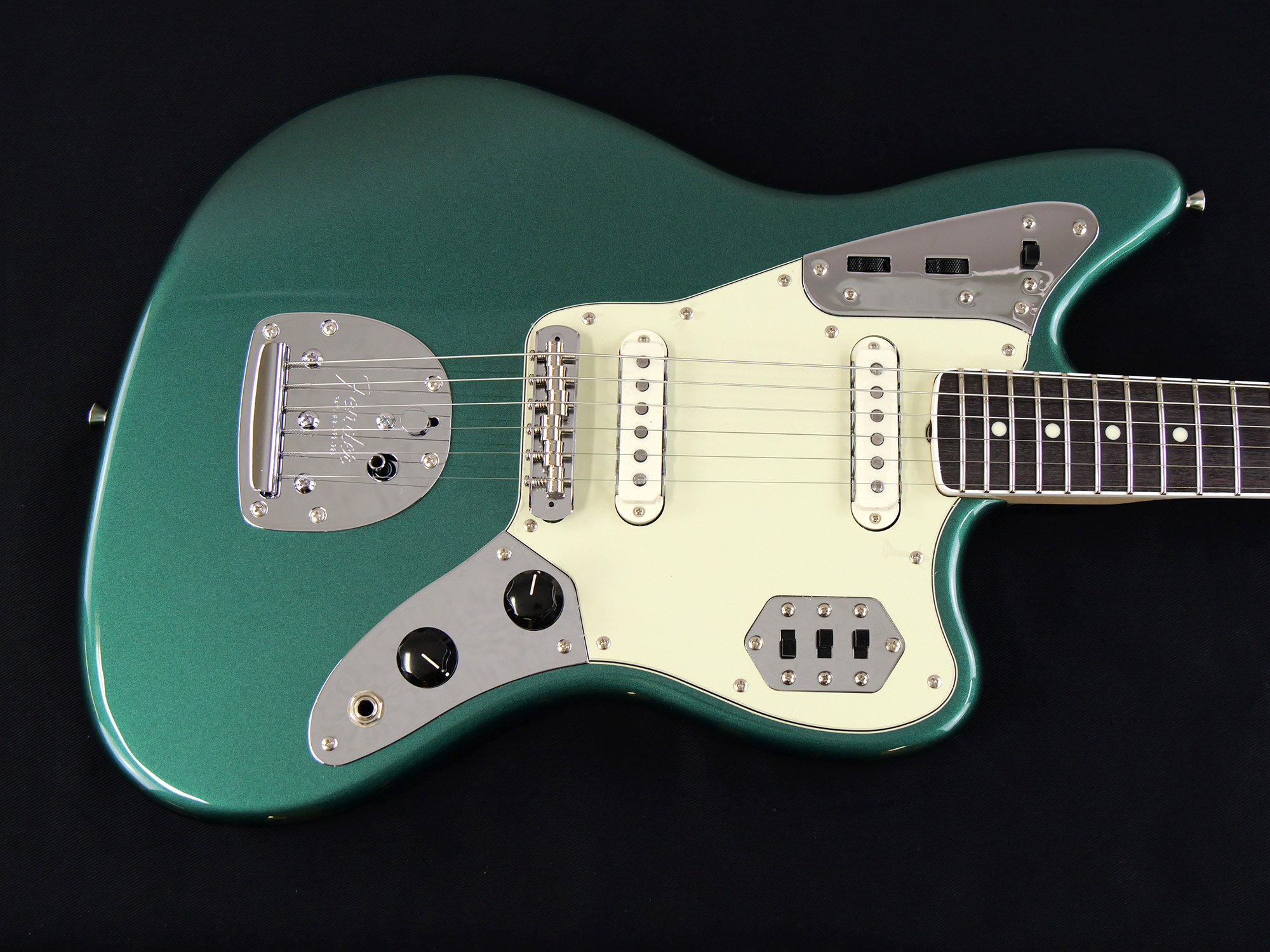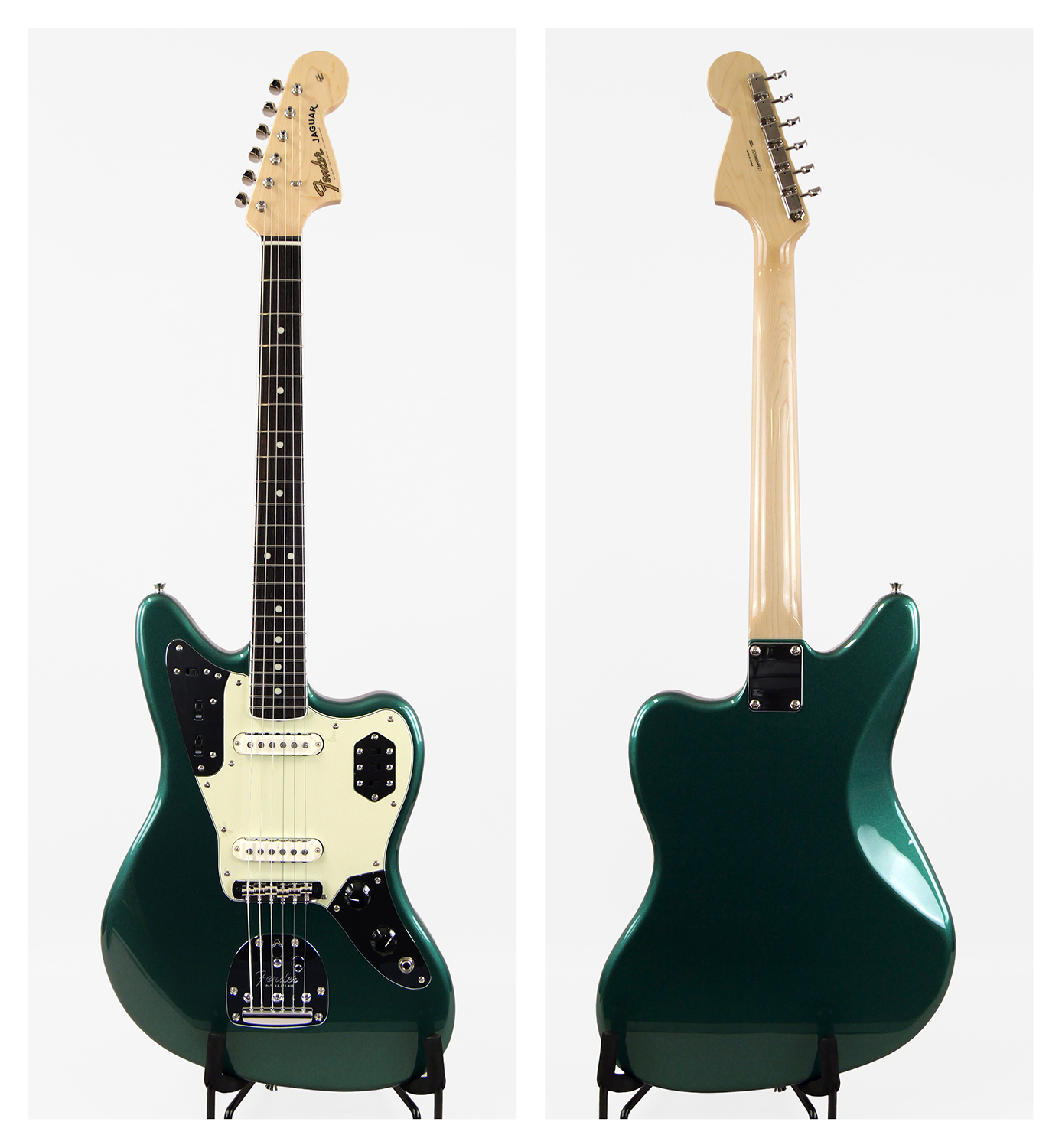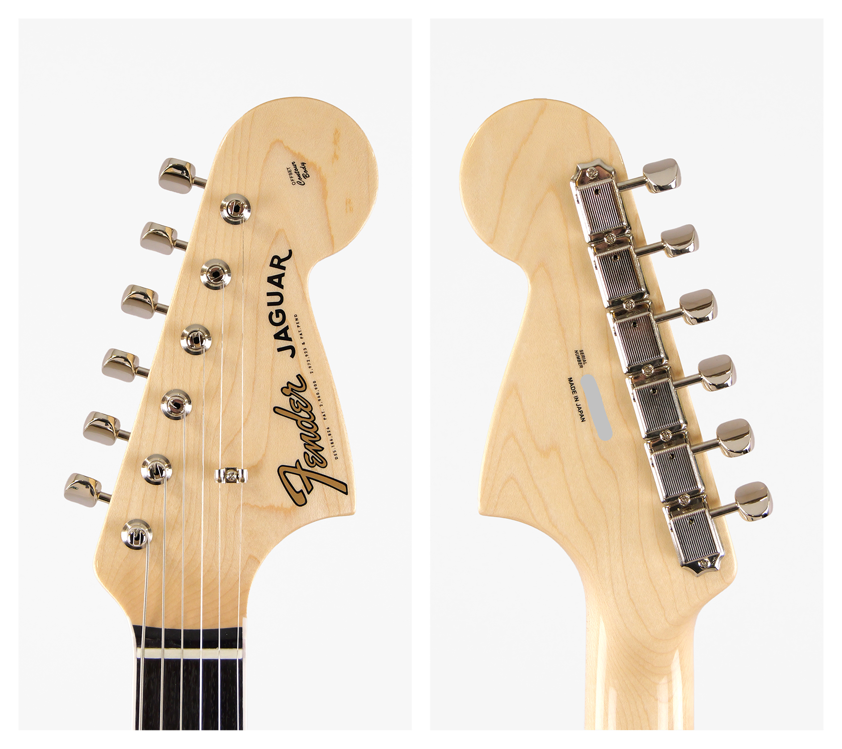 Made in Japan Traditional 60s Jaguar を基に、ボディ材をアルダーに、ピックアップをPure Vintage '65 Single-Coil Jaguarにアップグレード、ネックシェイプをMid '60s "C"、指板Rをヴィンテージ同様に7.25Radius、フレットをミディアム・ジャンボ・サイズ変更、ブリッジ・サドルを弦ズレの少ないムスタング・タイプに変更。
