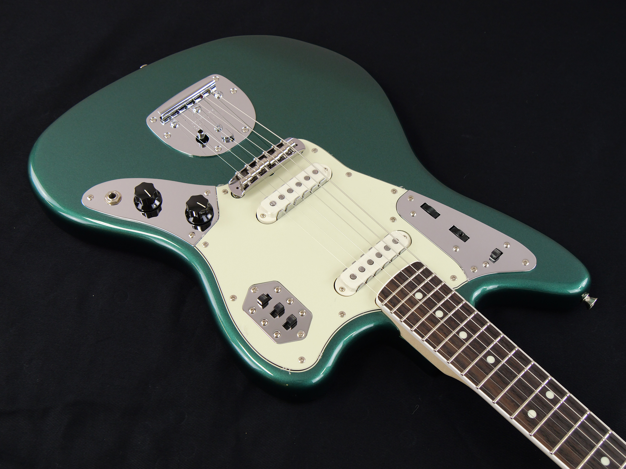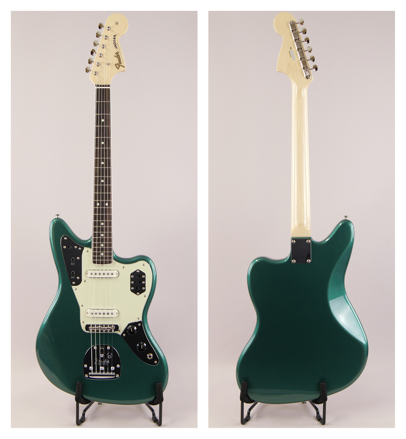 Made in Japan Traditional 60s Jaguar を基に、ボディ材をアルダーに、ピックアップをPure Vintage '65 Single-Coil Jaguarにアップグレード、ネックシェイプをMid '60s "C"、指板Rをヴィンテージ同様に7.25Radius、フレットをミディアム・ジャンボ・サイズ変更、ブリッジ・サドルを弦ズレの少ないムスタング・タイプに変更。