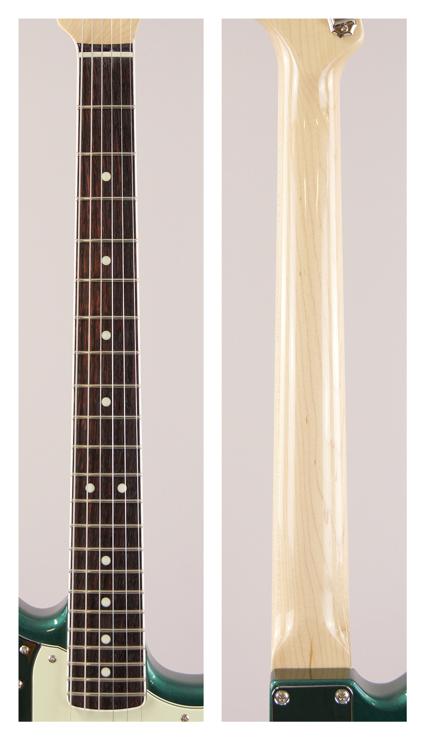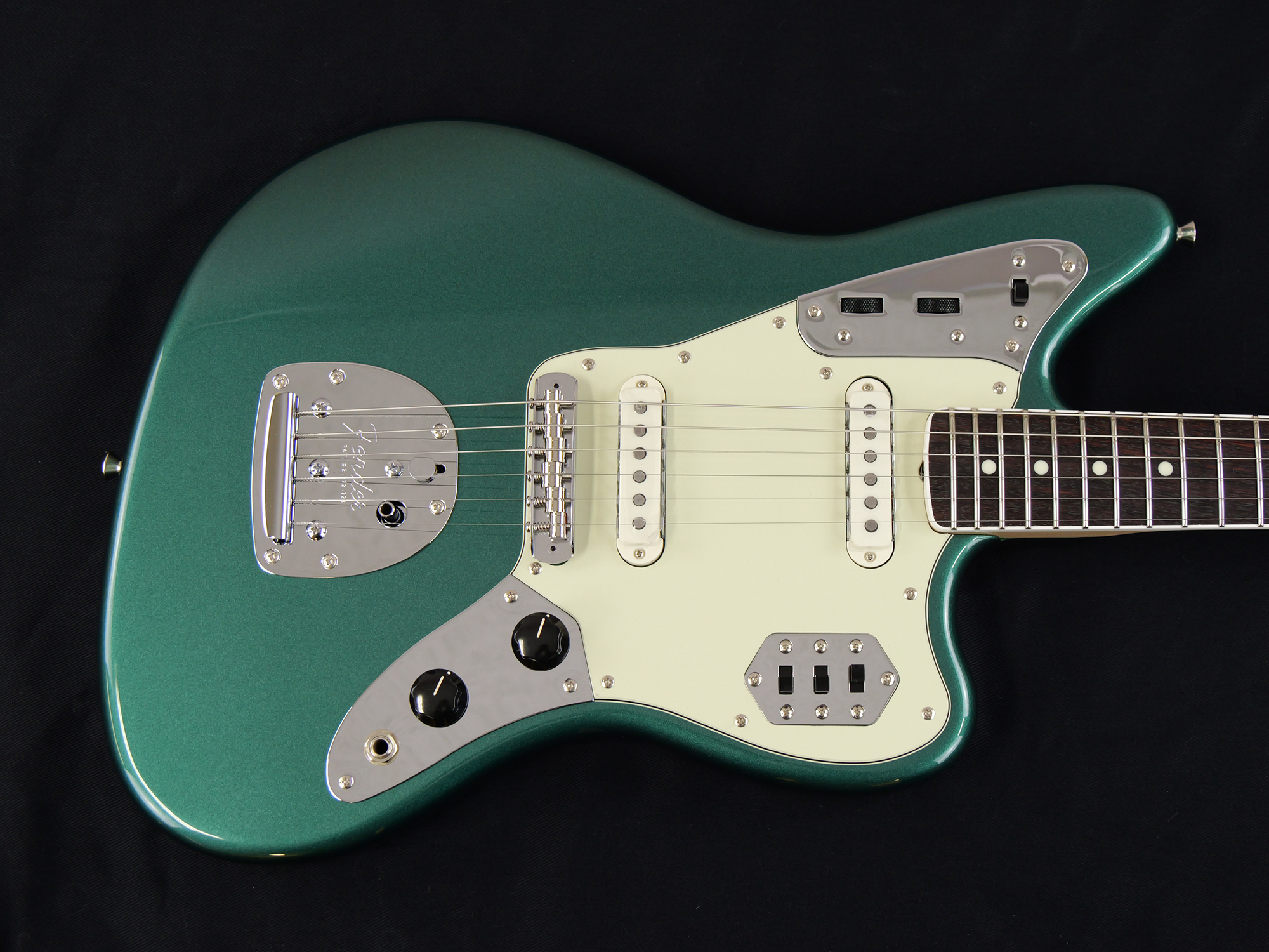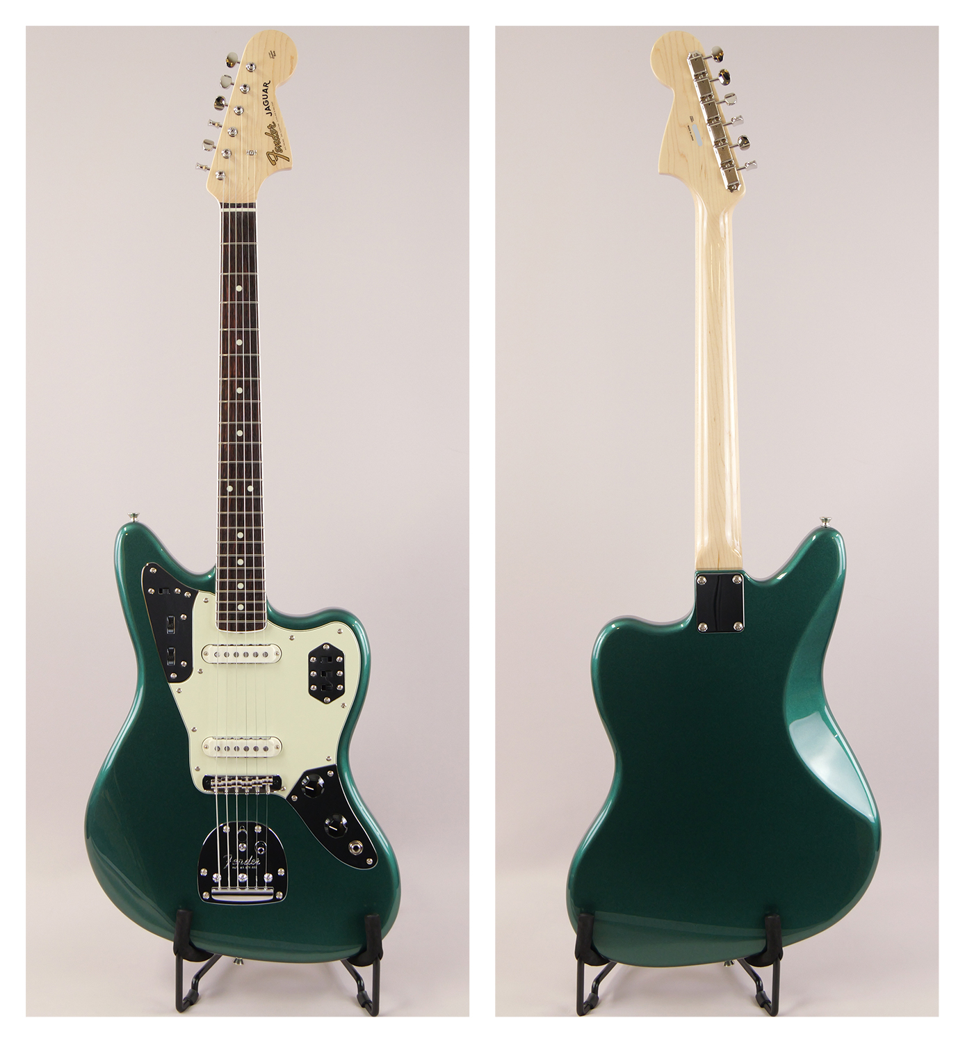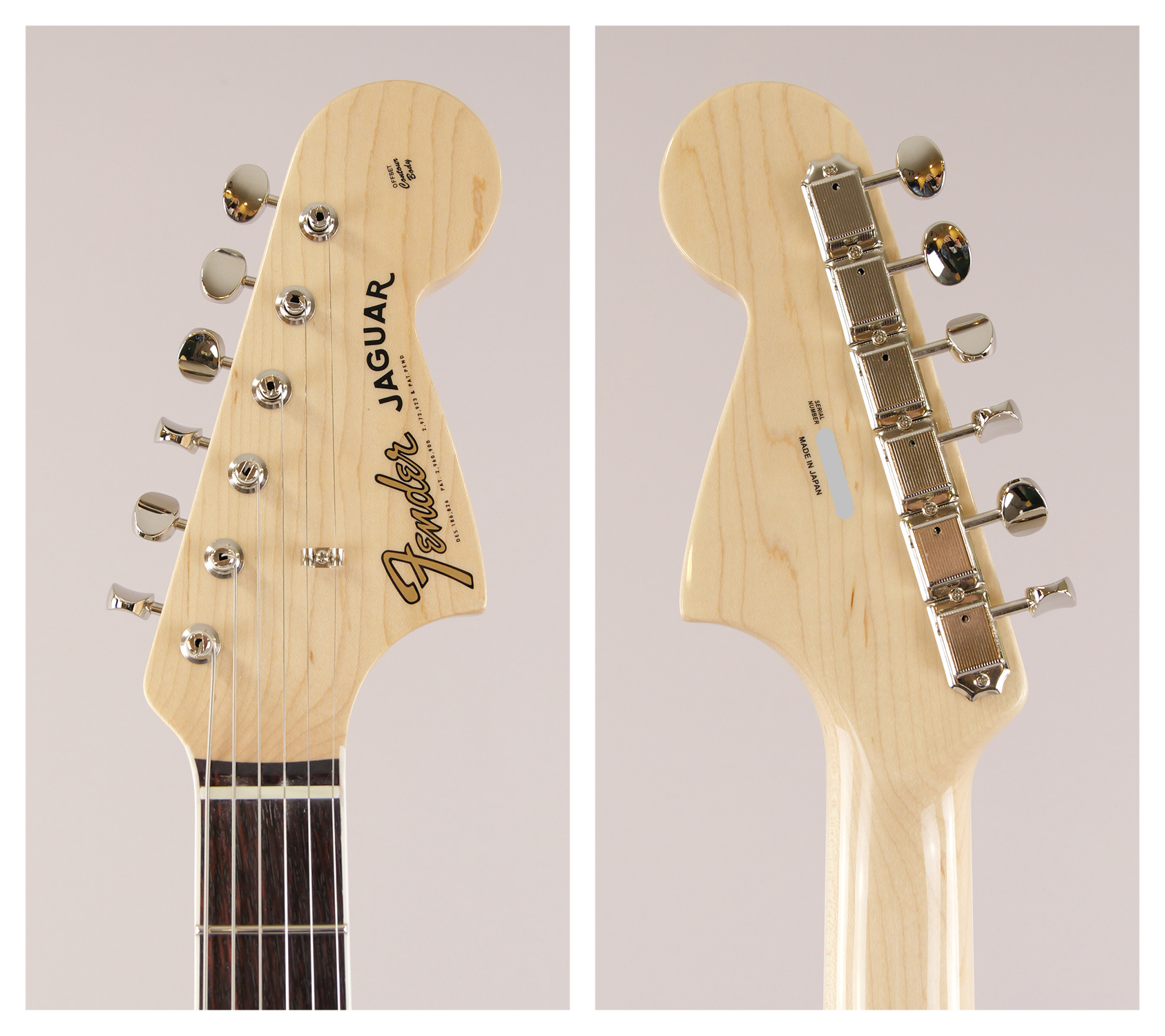 Made in Japan Traditional 60s Jaguar を基に、ボディ材をアルダーに、ピックアップをPure Vintage '65 Single-Coil Jaguarにアップグレード、ネックシェイプをMid '60s "C"、指板Rをヴィンテージ同様に7.25Radius、フレットをミディアム・ジャンボ・サイズ変更、ブリッジ・サドルを弦ズレの少ないムスタング・タイプに変更。