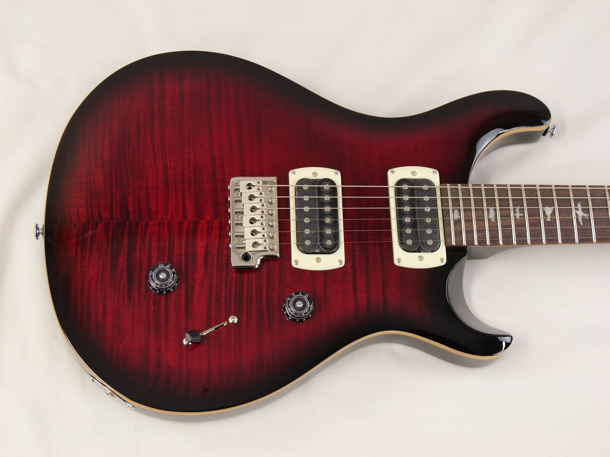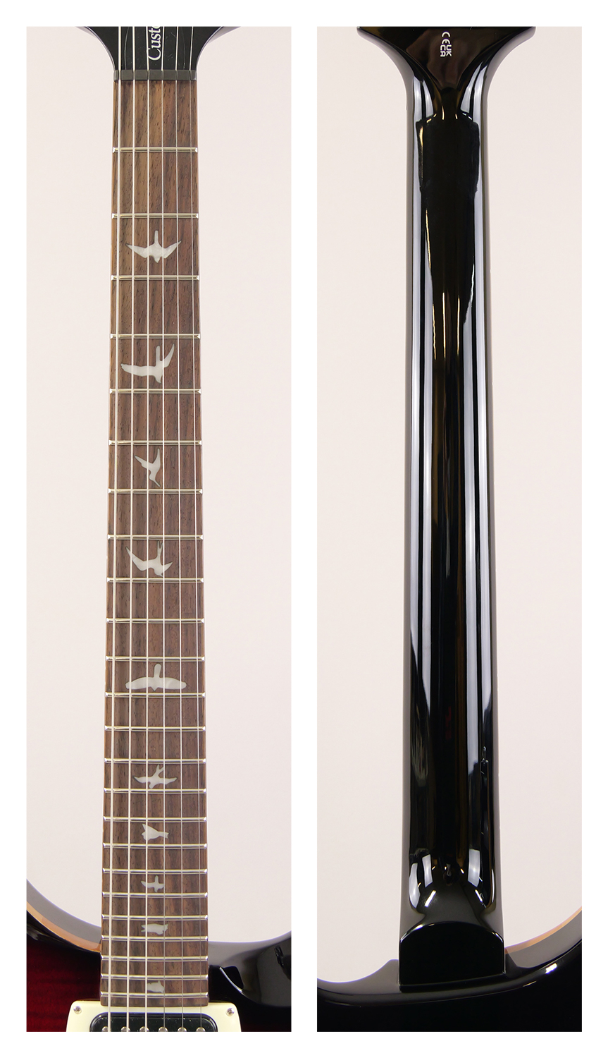 数多くのミュージシャンから愛用されているSE Custom 24は、マホガニー・バック、メイプル・トップのボディ、Wide Thinカーブのメイプル・ネック、ローズウッド指板、バード・インレイを合わせ、PRSデザインのトレモロ・ブリッジを装備。