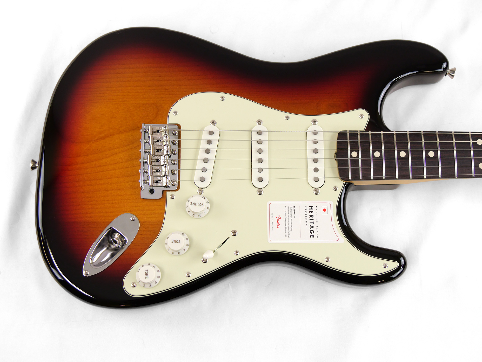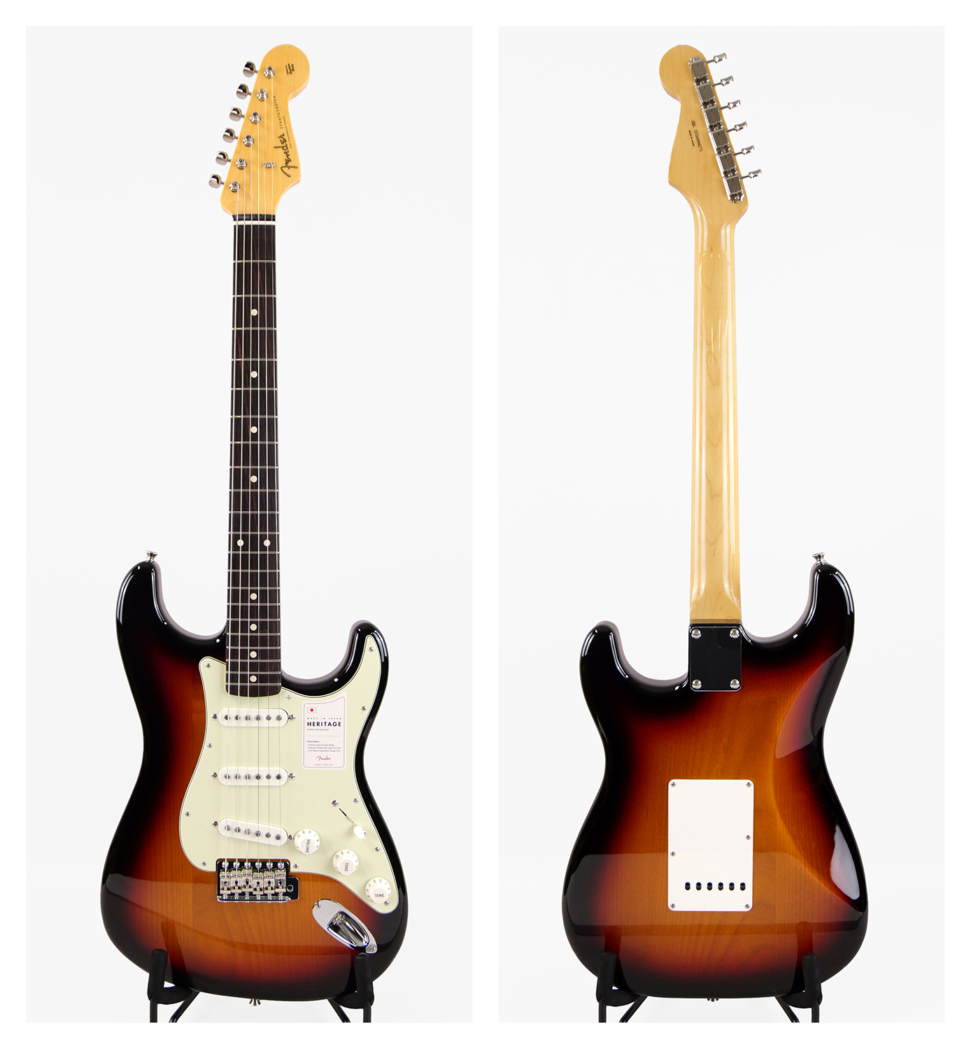 21本のヴィンテージスタイルフレットを装備した7.25インチラジアスのThick “C”シェイプメイプルネック、6サドル式ヴィンテージスタイルSynchronized Tremoloブリッジ、そしてHeritageシリーズのために特別に選定されたピックアップなど、本製品を構成するすべての仕様はクラシックなプレイアビリティと甘いヴィンテージトーンを実現するためにこだわり抜かれています。