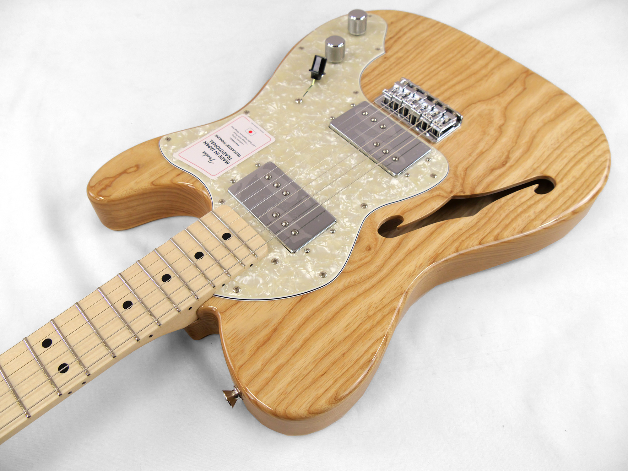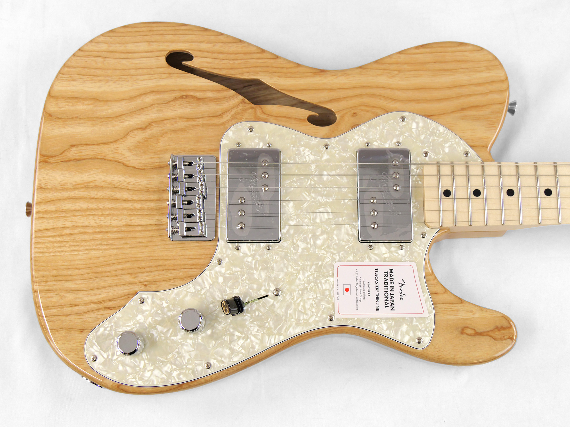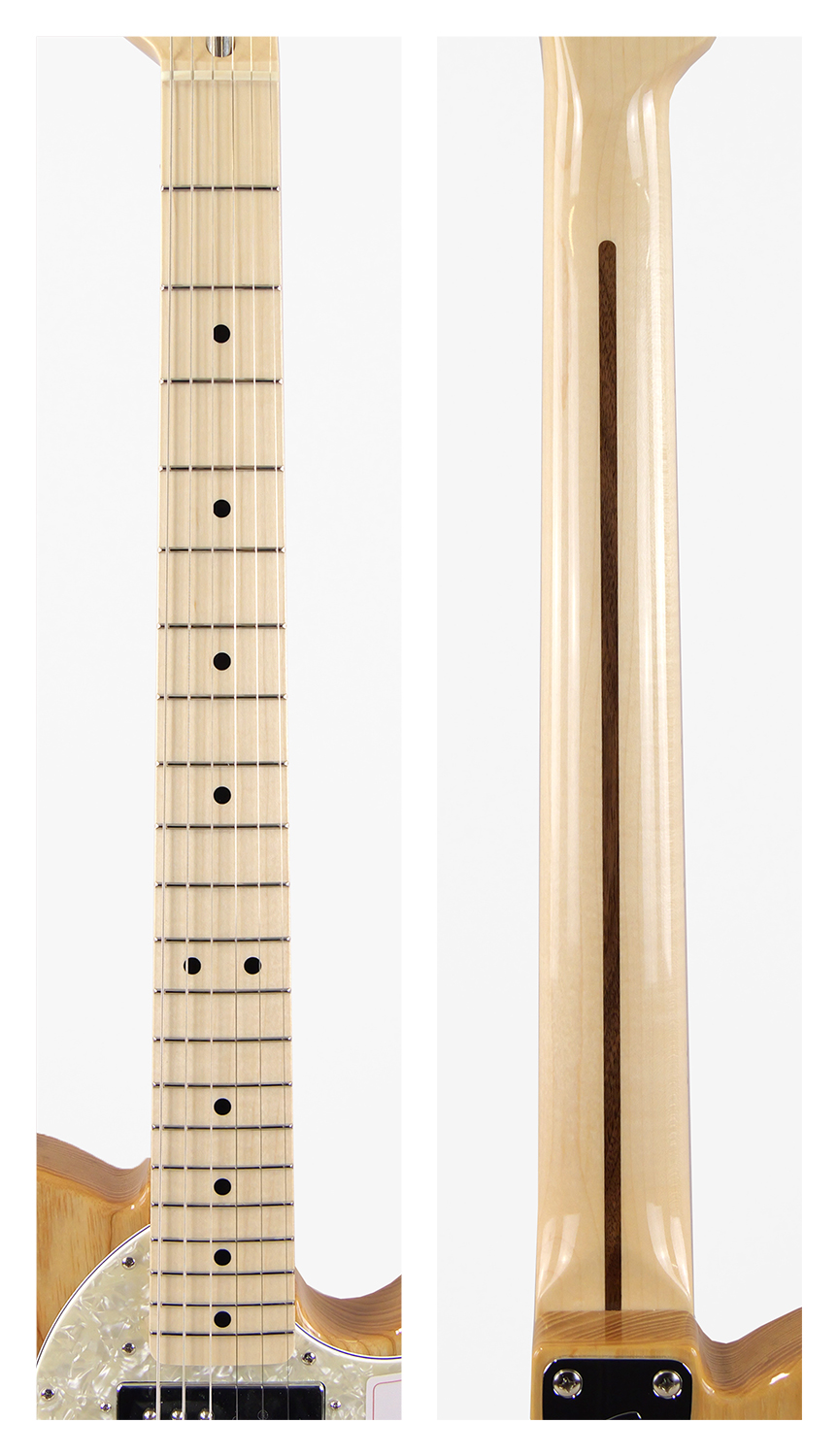 Made in Japan Traditional 70s Telecaster® Thinlineはグロスフィニッシュのアッシュボディを採用。21本のヴィンテージスタイルフレットを装備した9.5インチラジアスの”U”シェイプメイプルネックがTraditionalシリ ーズならではのクラシカルな演奏製を提供します。6サドル式String-Through-Bodyハードテイルブリッジ、そしてTraditionalシリーズのために選定されたオリジナルピックアップはリアルで音楽的なヴィンテージトーンを奏でます。細めに設計されたナット幅は日本のプレイヤーにも弾きやすい仕様となっています。堅実なギタークラフトマンシップと、プレイヤーのニーズに柔軟に対応する答えが、本シリーズに反映されています。